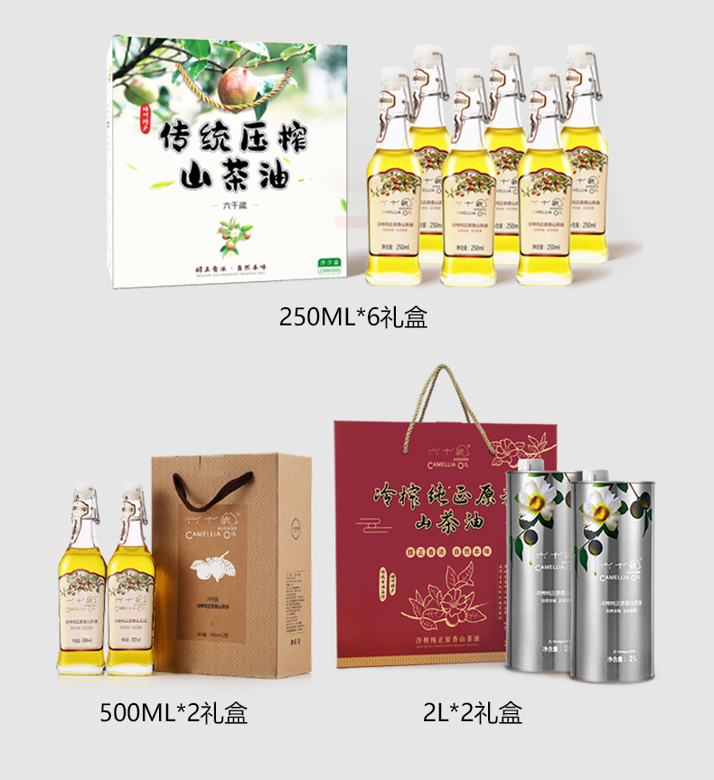 香港最受欢迎品牌 送礼佳品-健康营养油 六千嵗传统压榨山茶油 礼盒装250ml*6