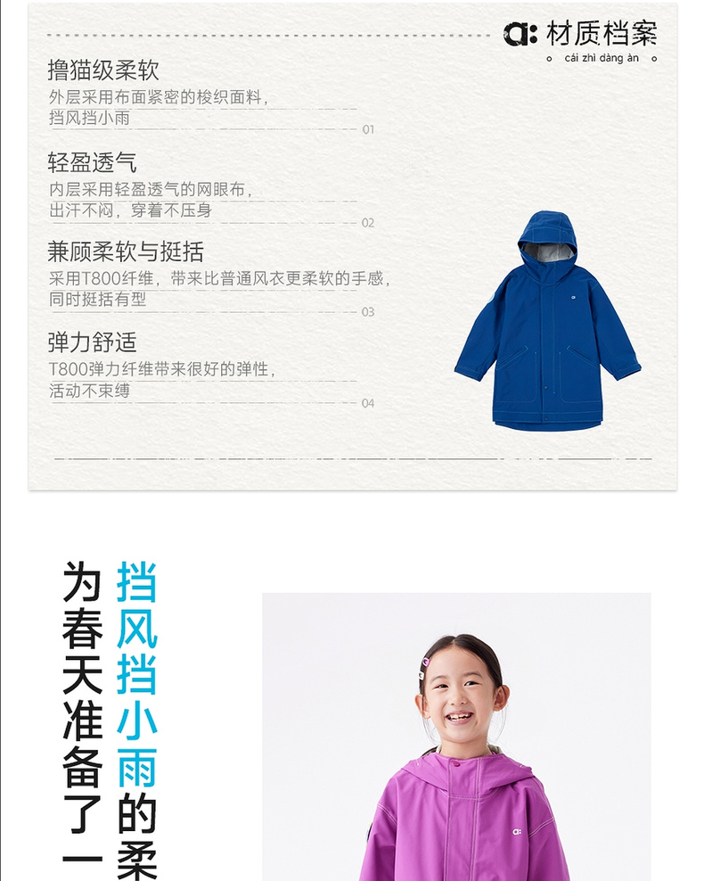 【春Vol.1】allblu幼岚儿童风衣外套户外男童女童25春季新款连帽防风大衣ZY