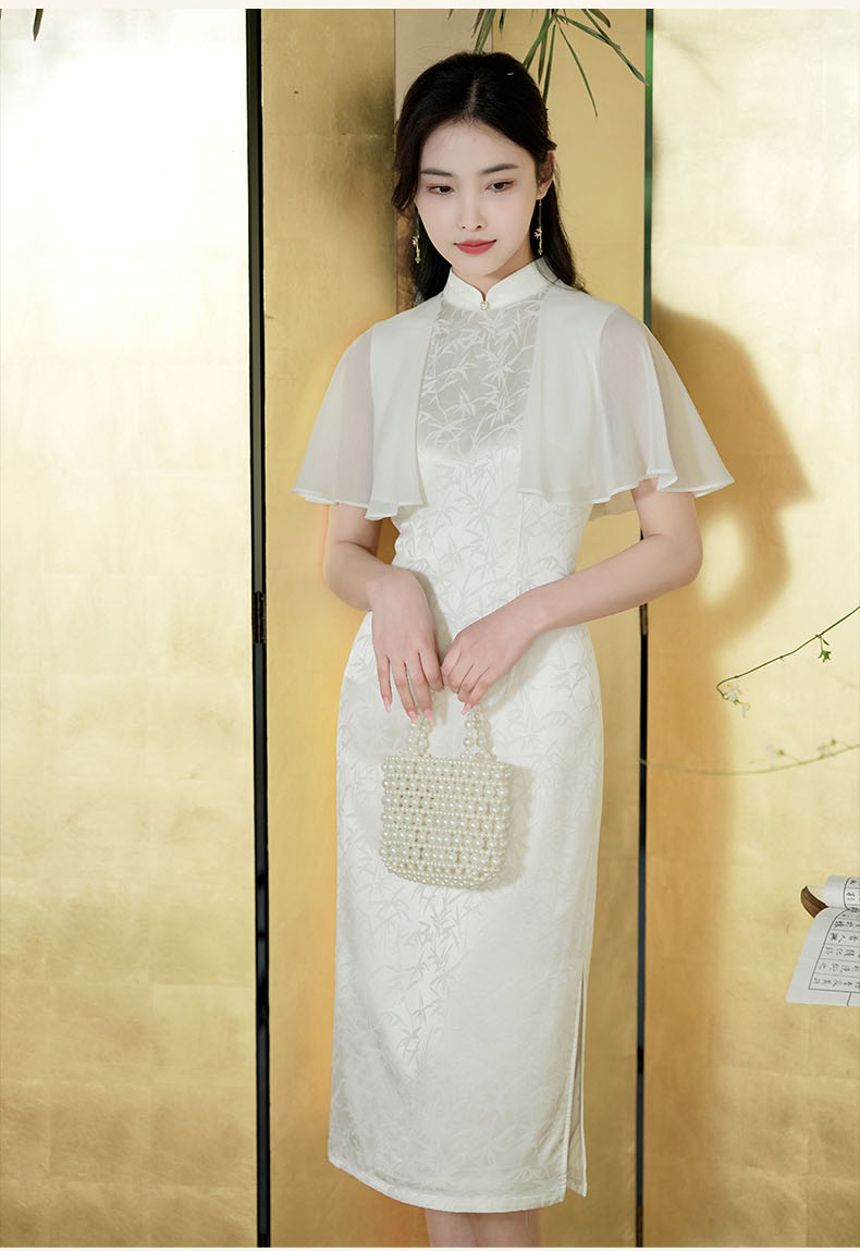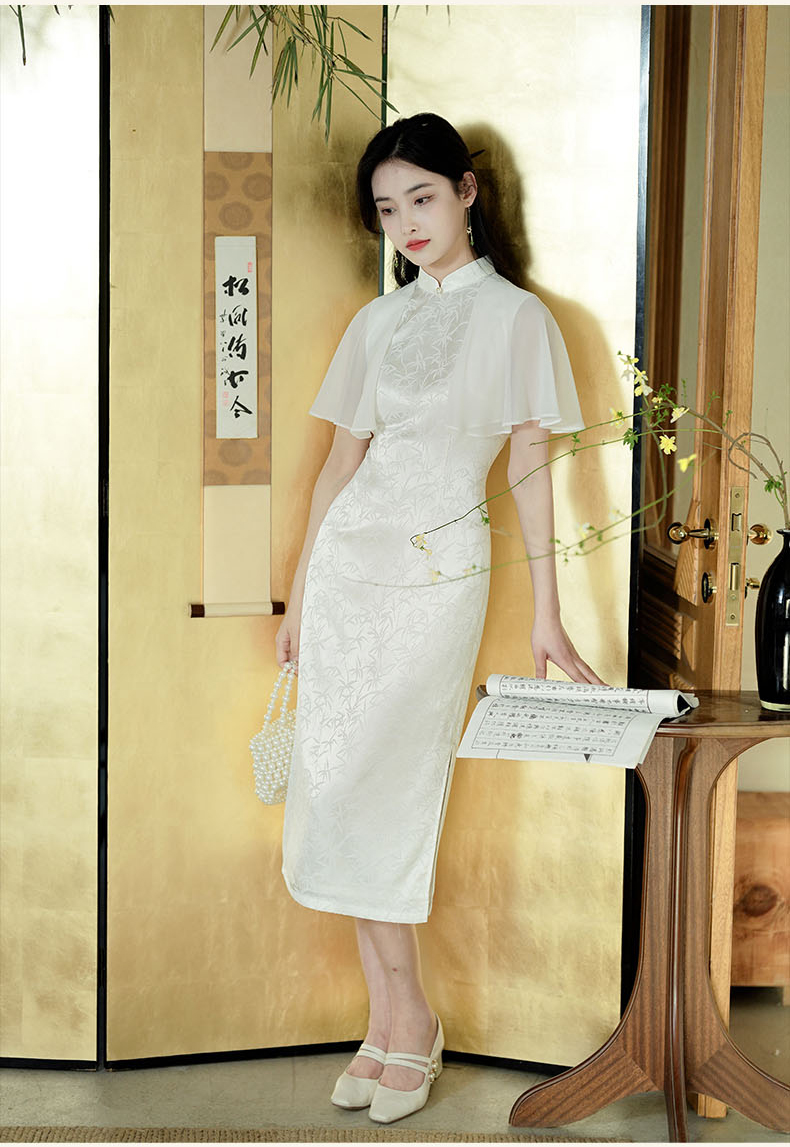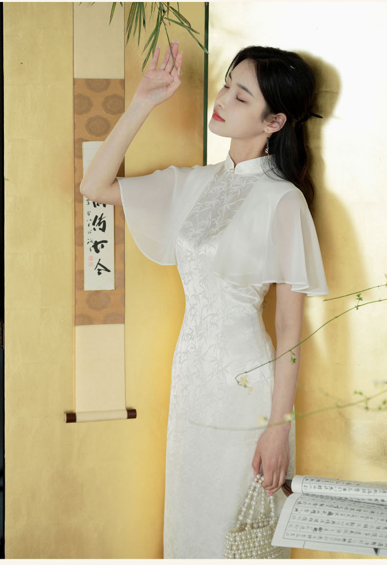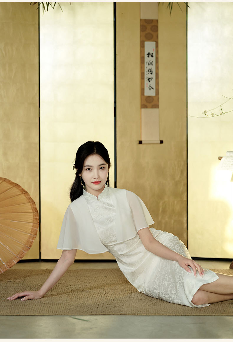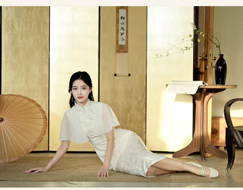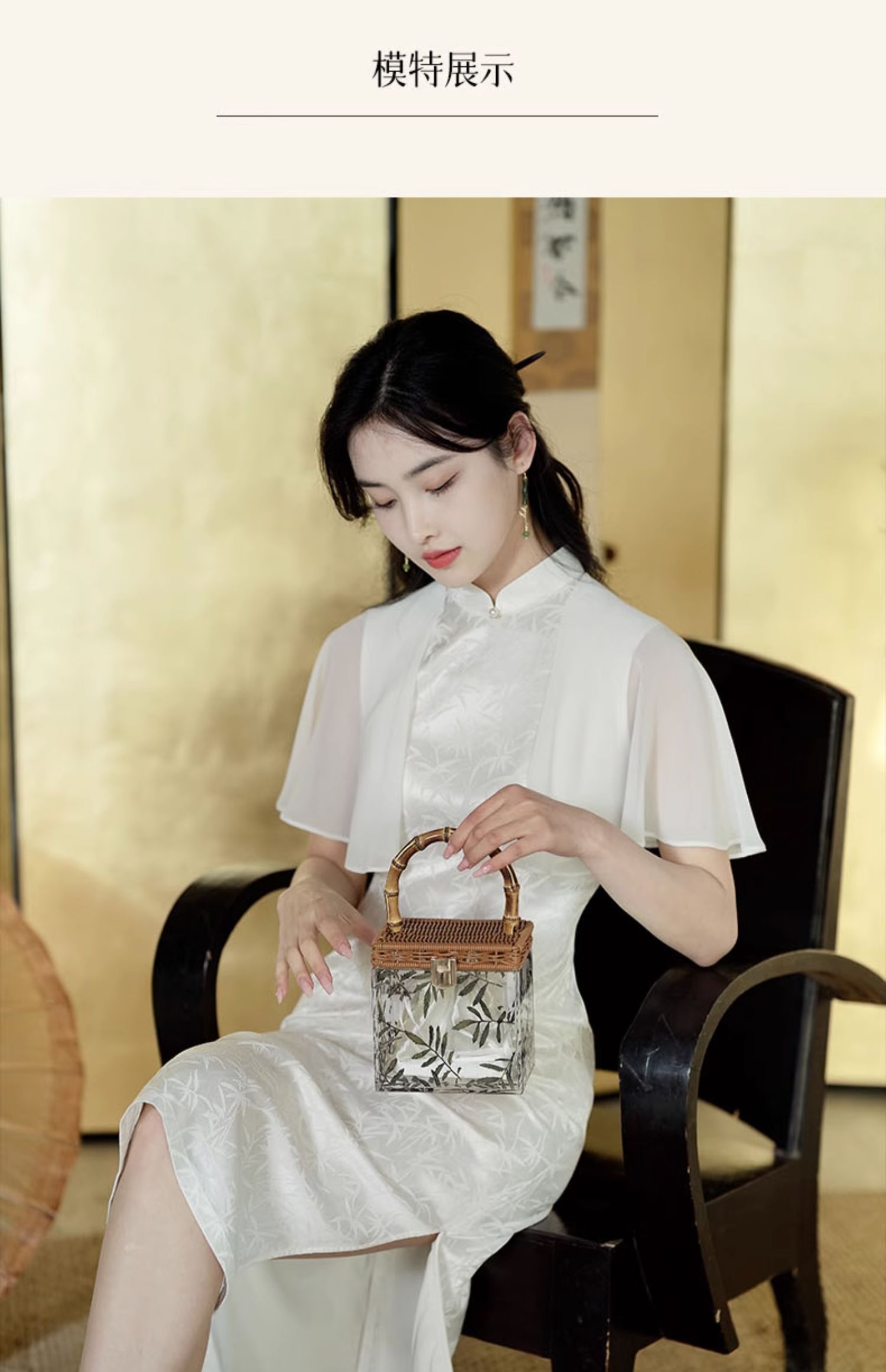 逸红颜钰雪2025年夏季新款醋酸旗袍改良版连衣裙女优雅包肩袖
