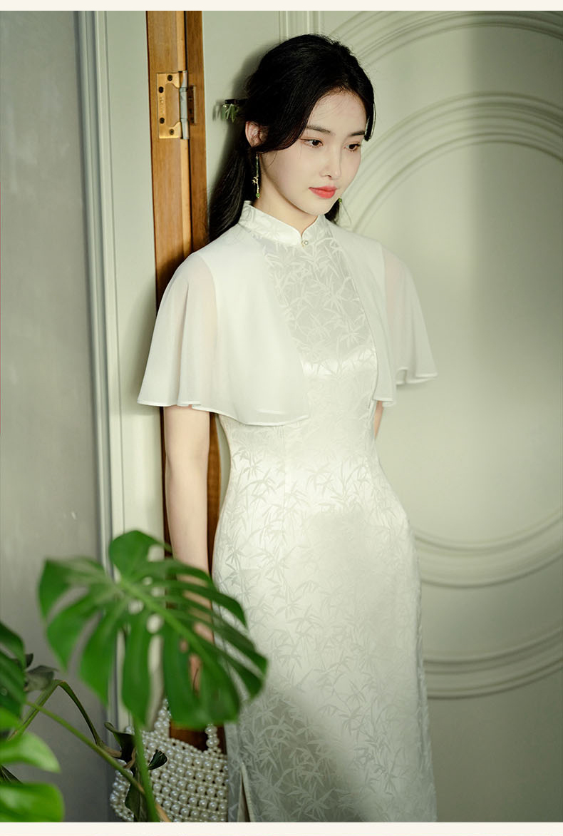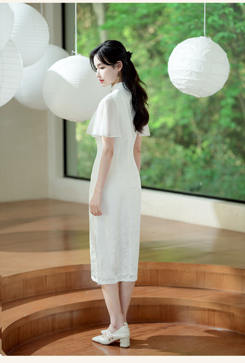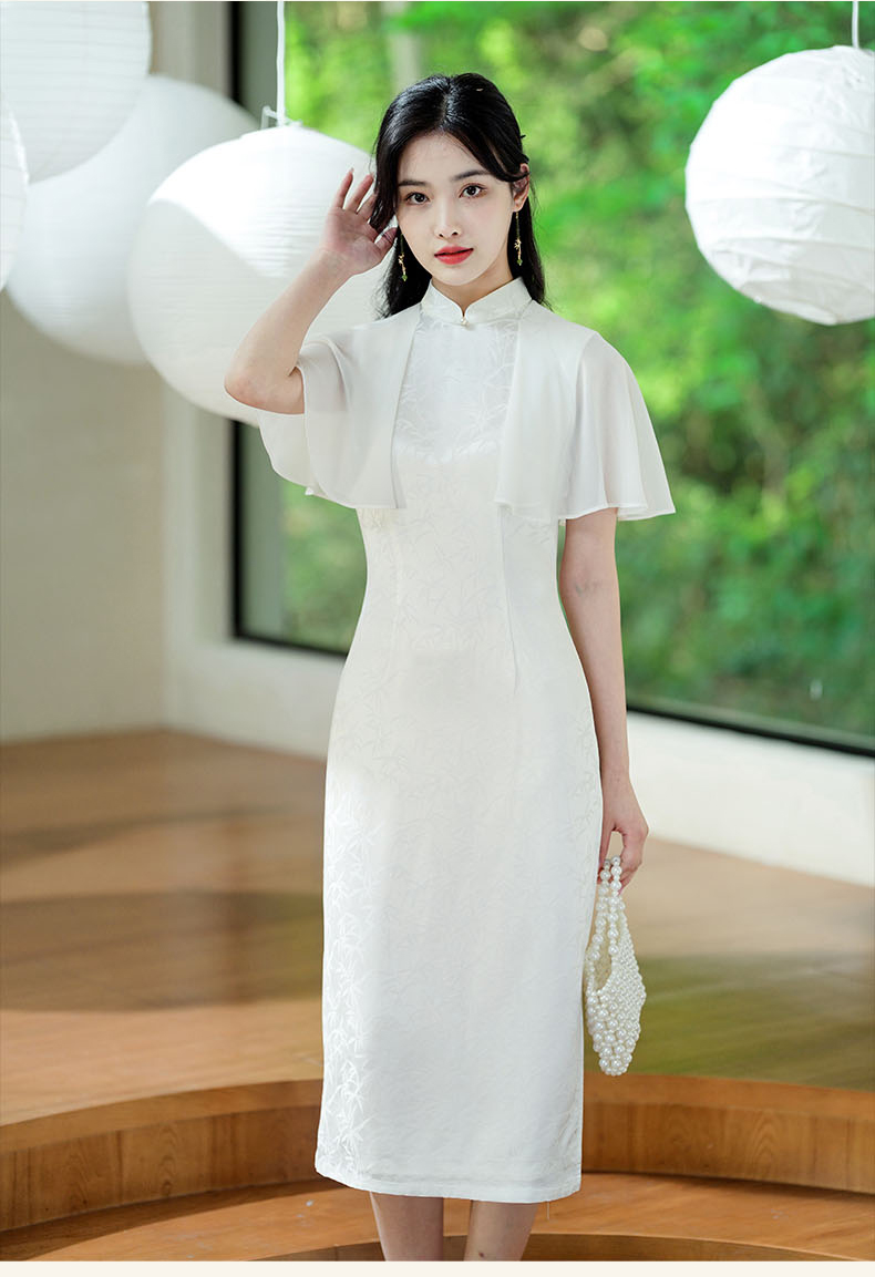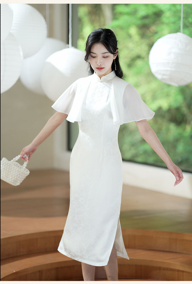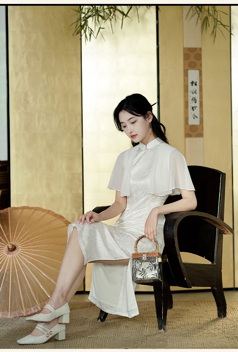 逸红颜钰雪2025年夏季新款醋酸旗袍改良版连衣裙女优雅包肩袖