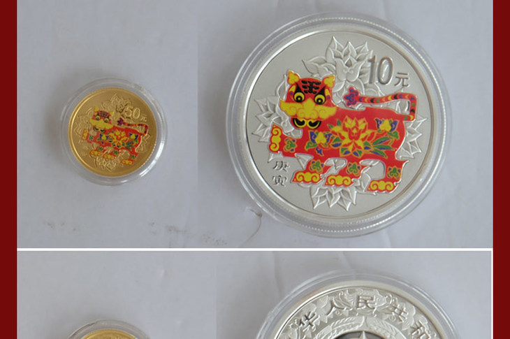 河南中钱 中国金币 2010年虎年金银币 彩金银虎 彩银虎