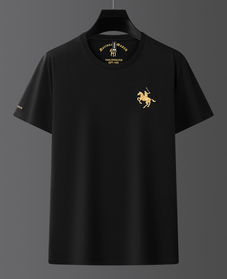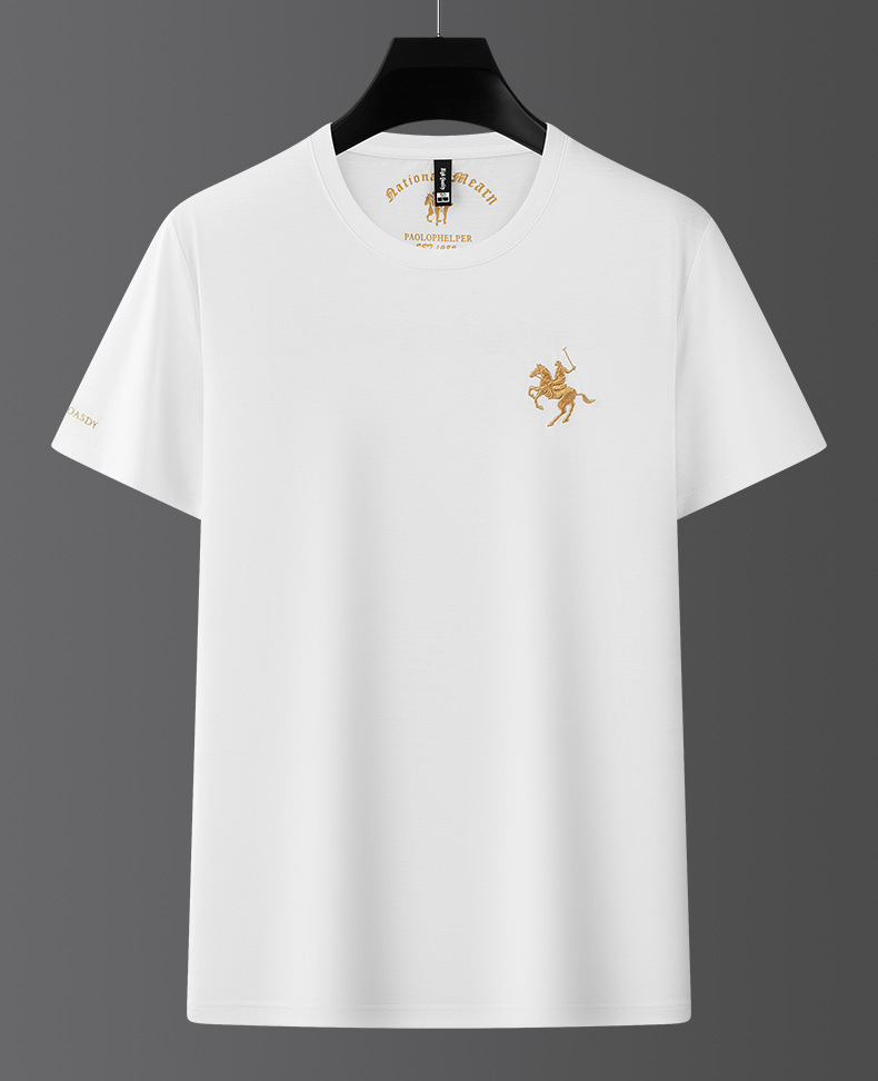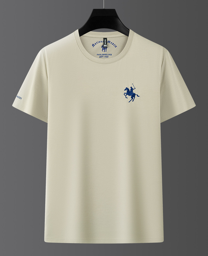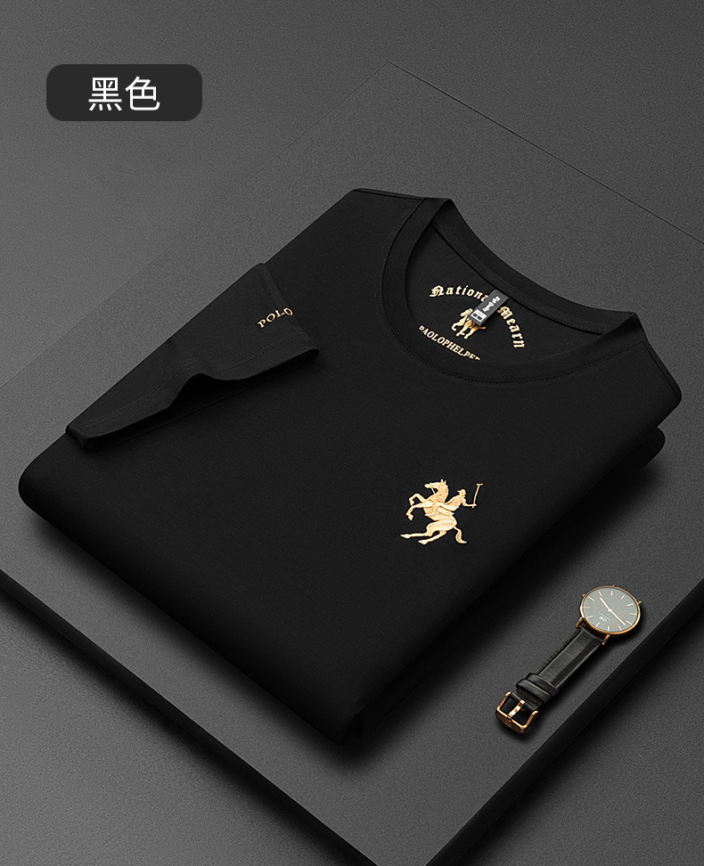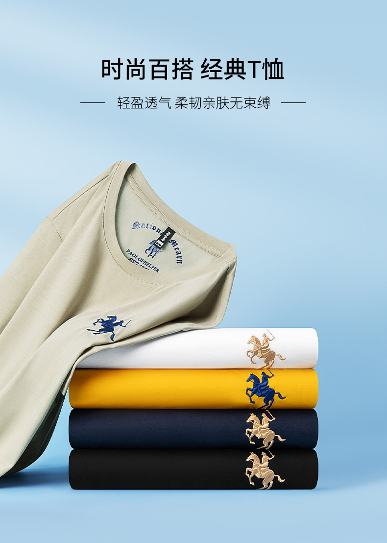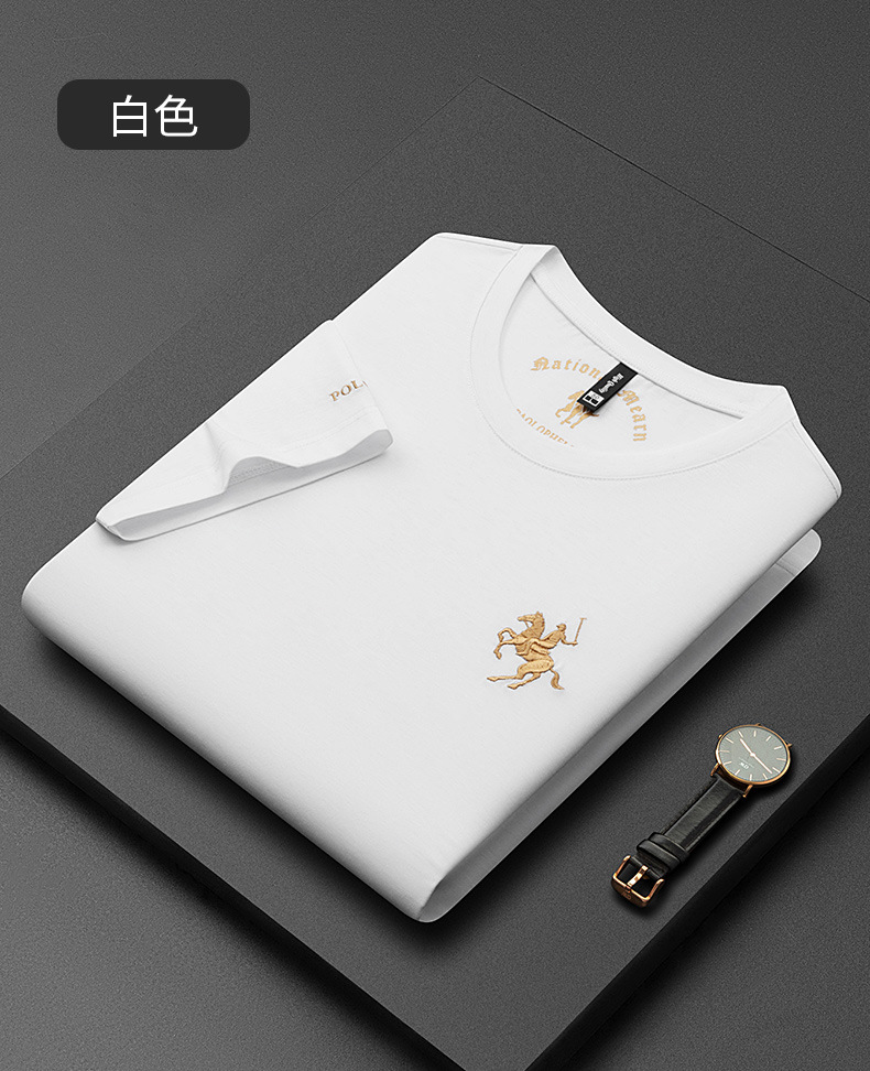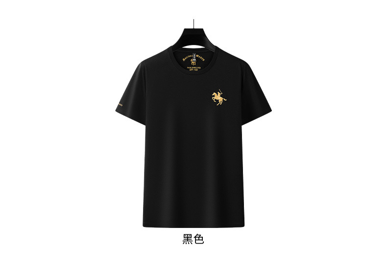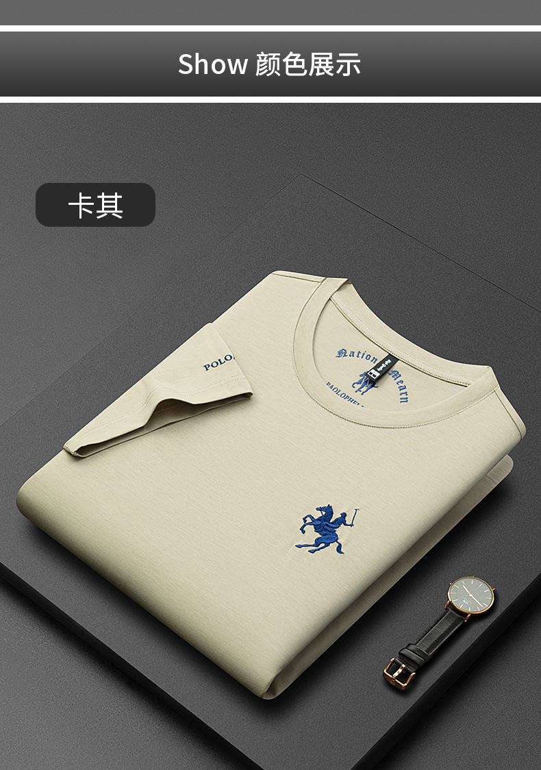 派森龙夏季丝光棉短袖t恤衫男士中性潮牌男装中年爸爸圆领衣服男