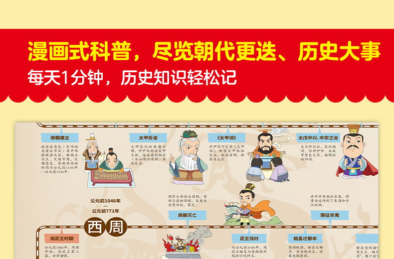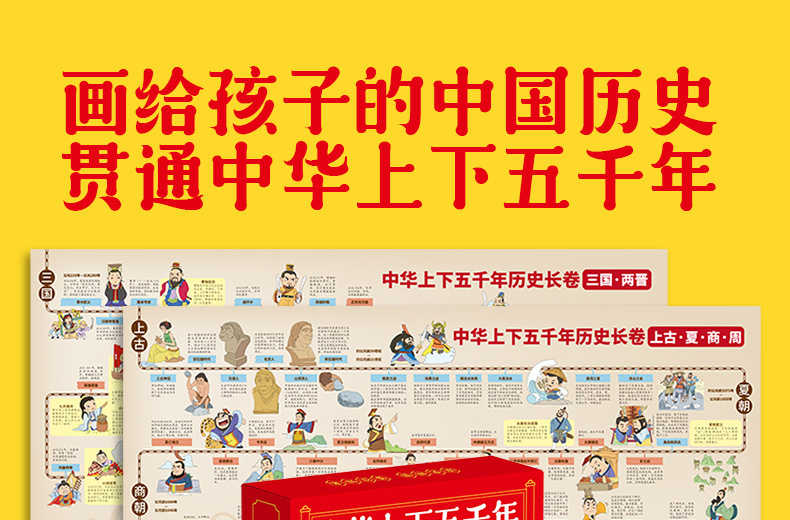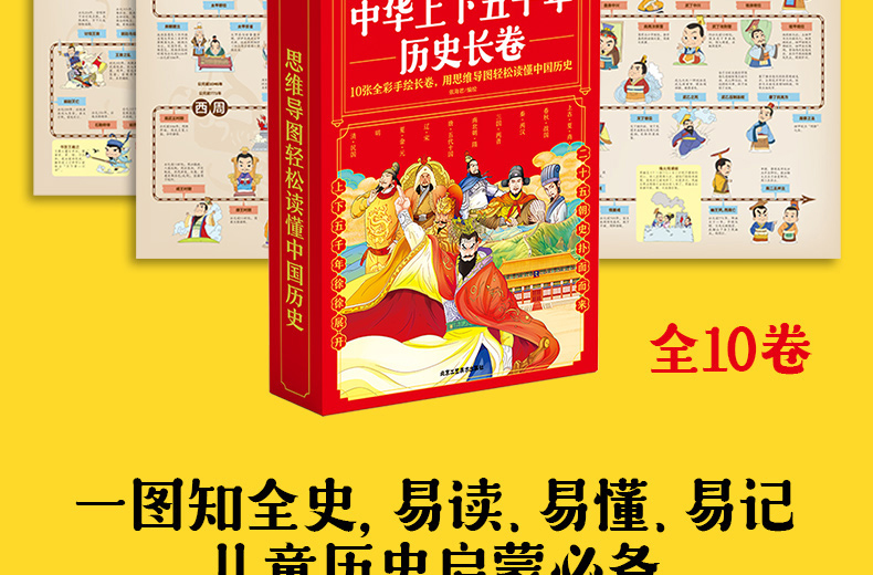 中华上下五千年历史长卷(全10卷)6岁+ 10张全彩手绘长卷 用思维导图轻松读懂中国历史