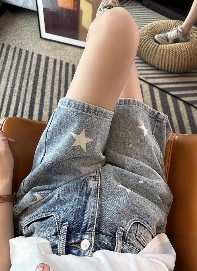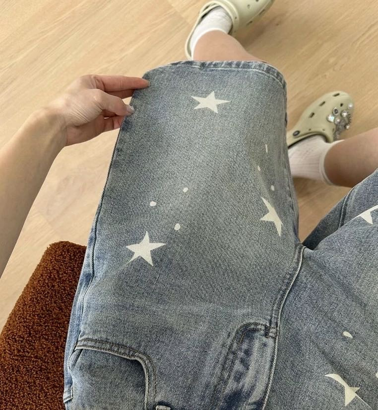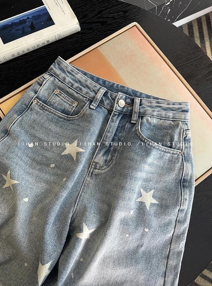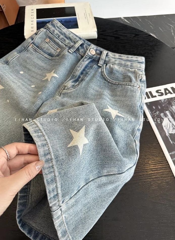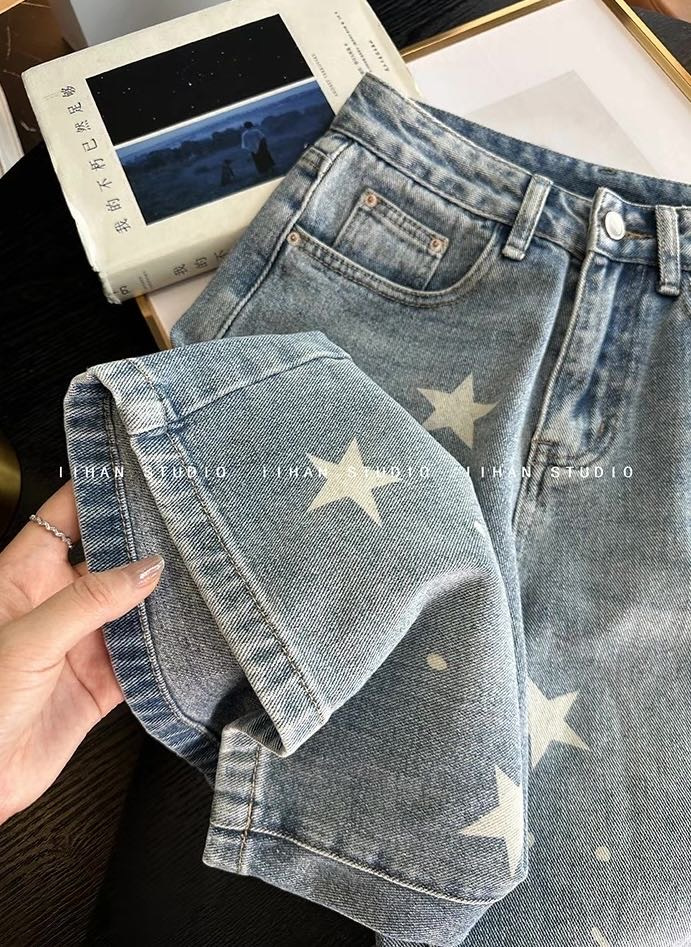✅ “浅蓝牛仔布+立体星星印花” 时髦精必入!