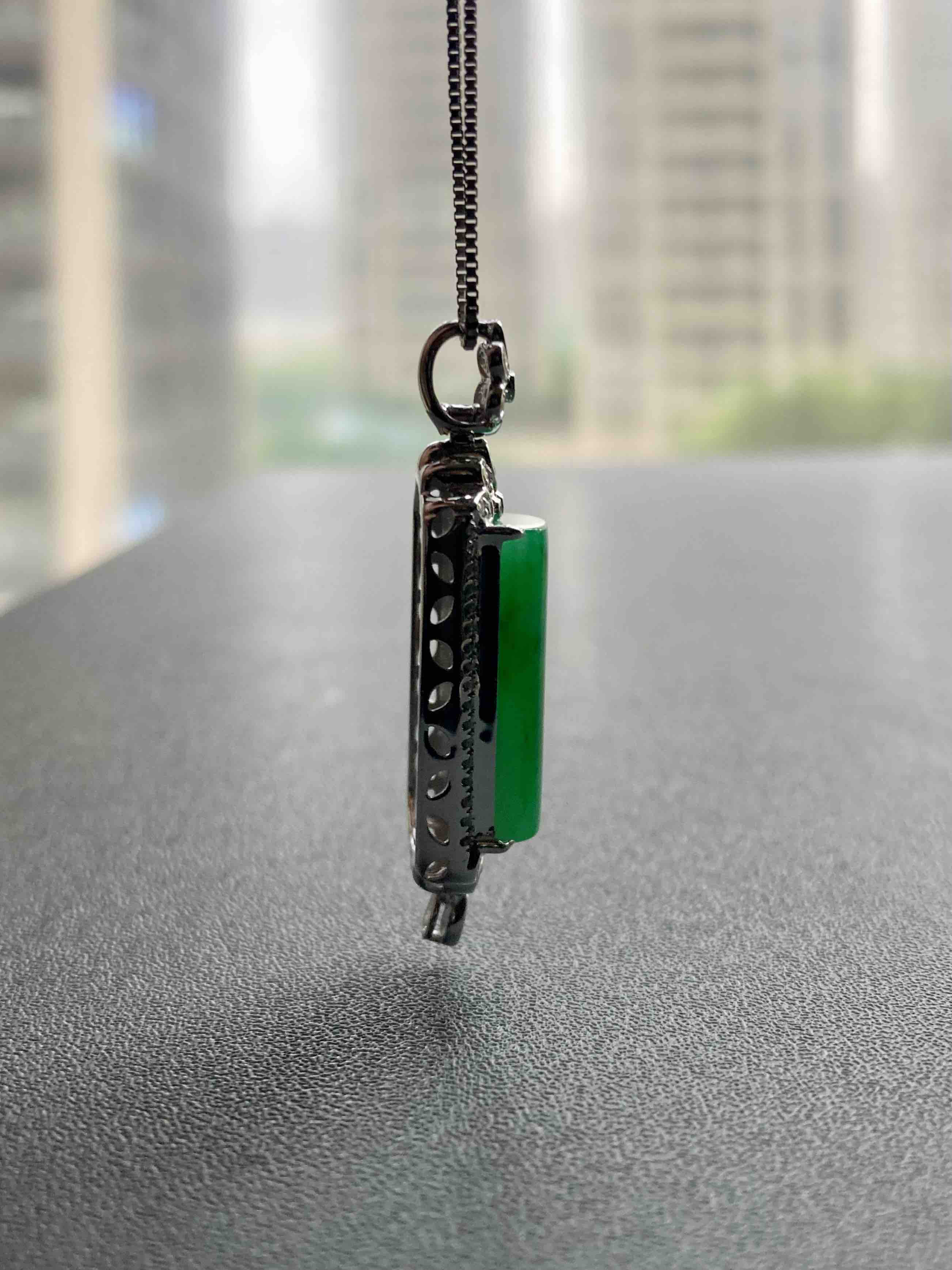好东西啊,糯冰种阳绿厚庄翡翠素面平安无事牌,阳绿艳丽无比,18k白金钻石镶嵌时尚大气,背面磨砂质感和18k黄金的雕花特漂亮,少有阳绿素面能有如此规格和厚度,推荐一波,尺寸详见视频