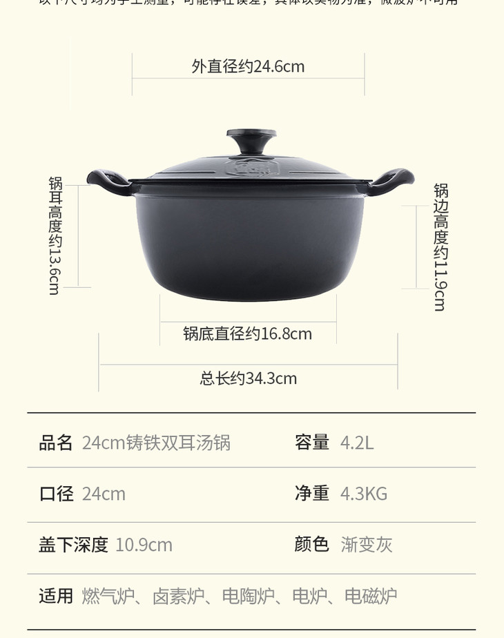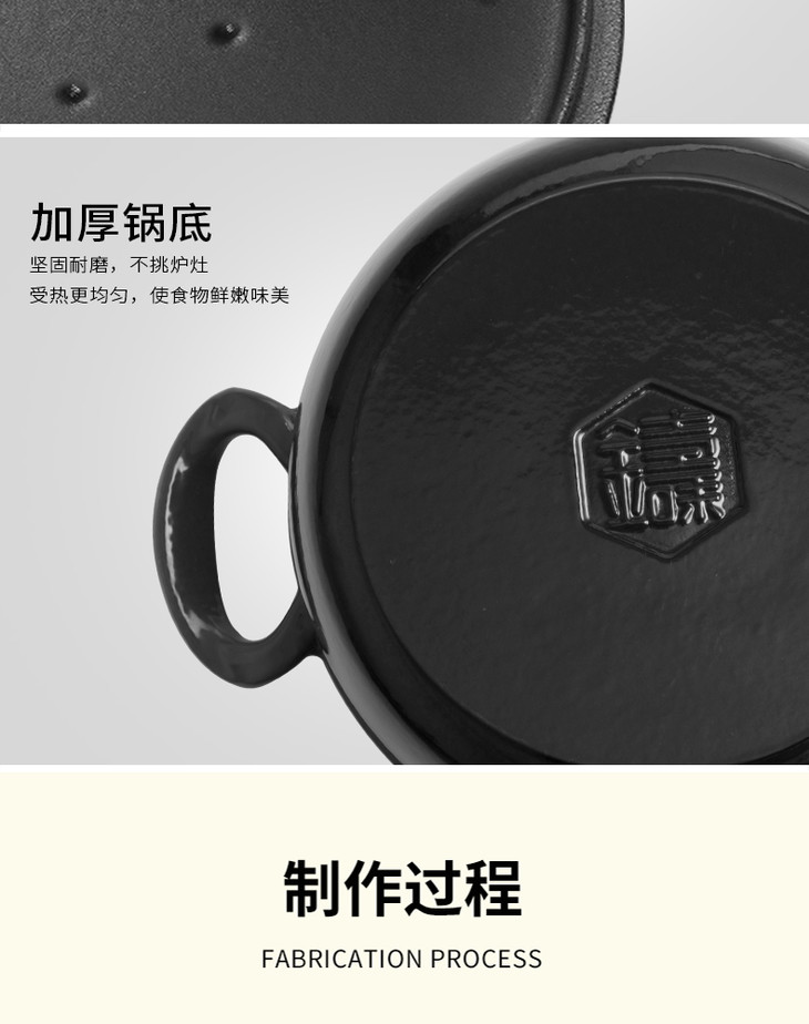 铸味 | 24cm-25cm铸铁锅珐琅双耳长柄汤锅 大耳朵珐琅汤锅家用加厚生铁锅双耳焖烧炖锅磁炉