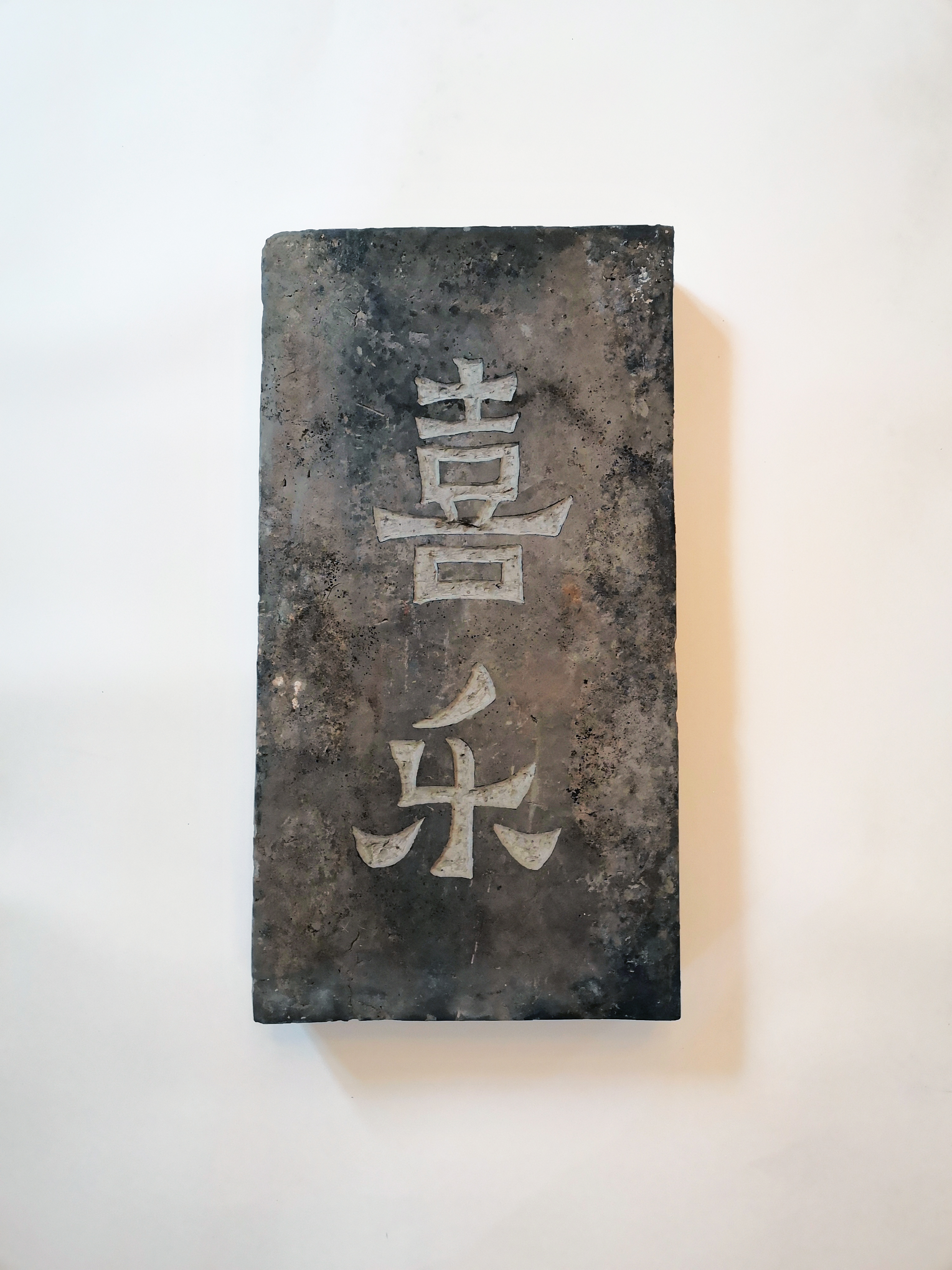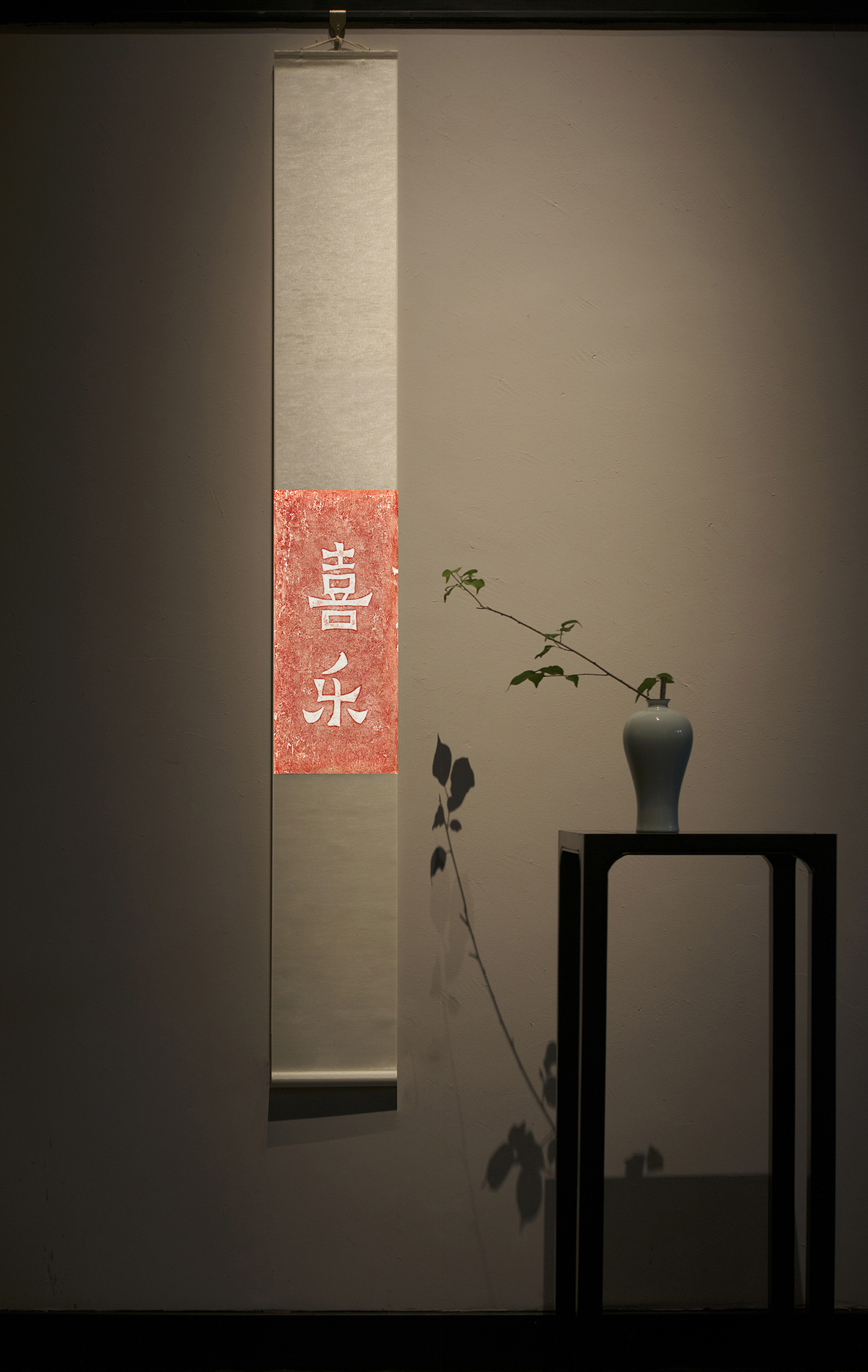 本幅作品,书体选自魏碑,遒劲,苍古。《诗·小雅·菁菁者莪序》:“君子能长育人材,则天下喜乐之矣。”此二字也是人生态度,对待任何顺心或者不顺心的是不是能以豁达的心态待之!由行知亲自镌刻,刀法准确细腻,使原书法的神韵跃然石上。