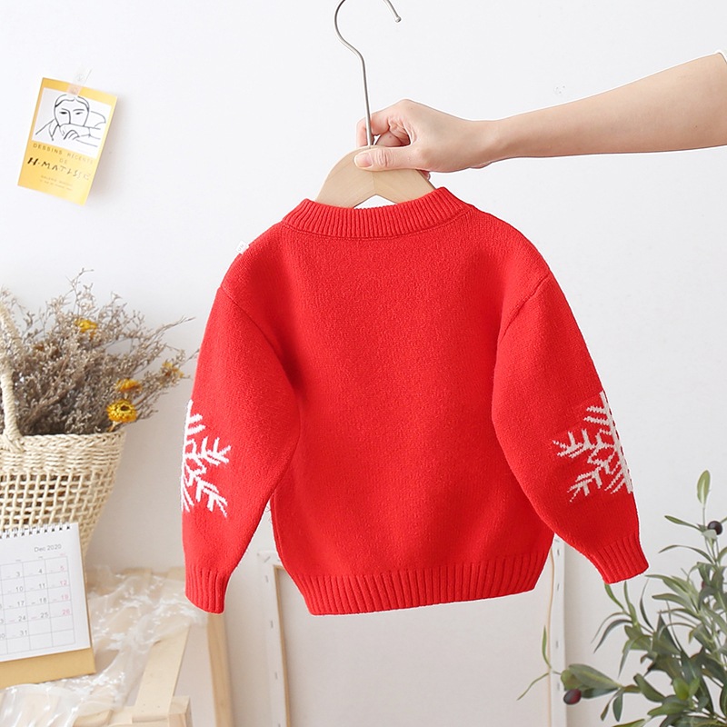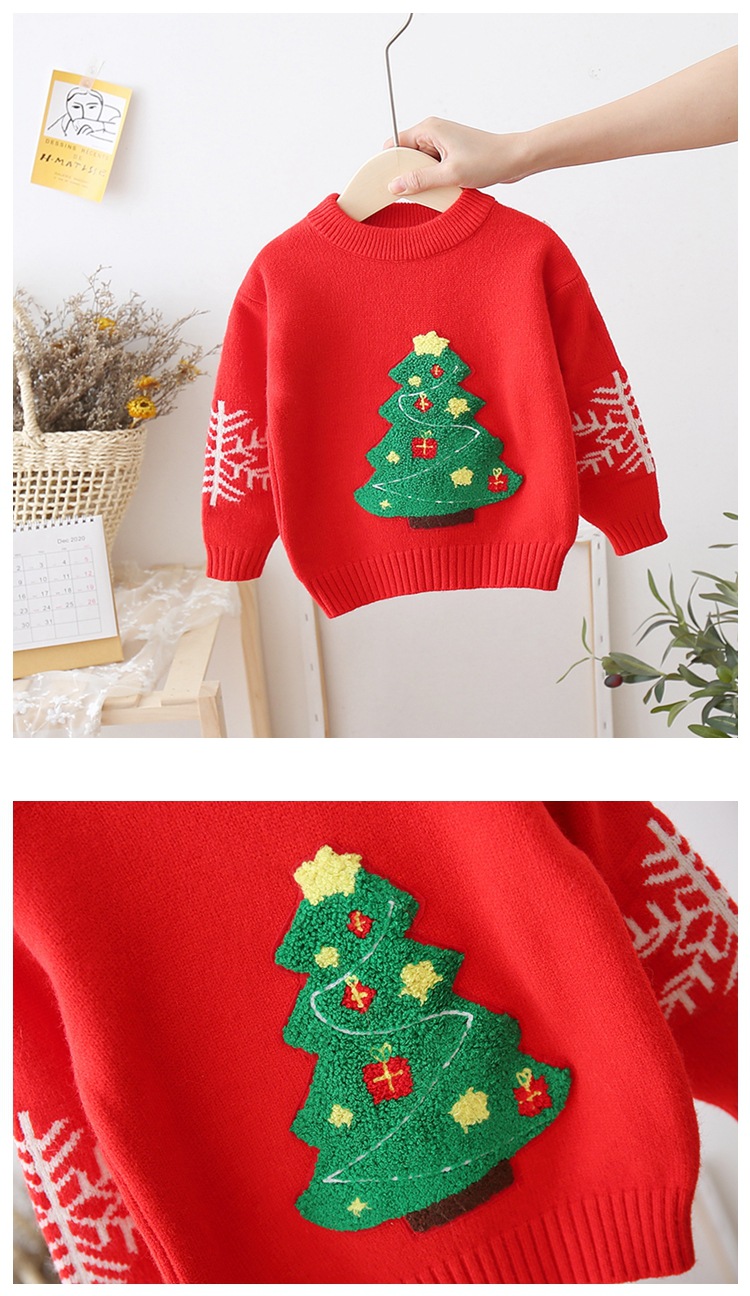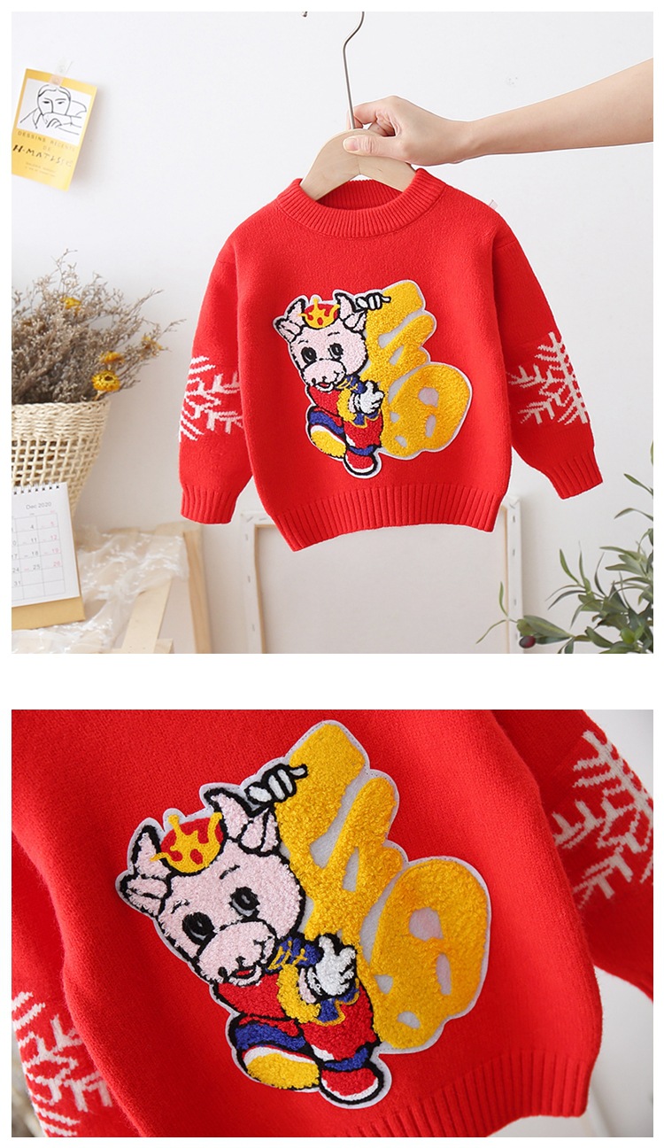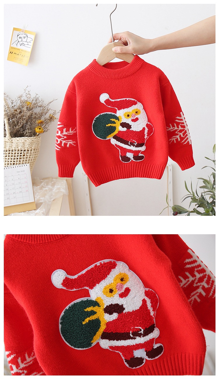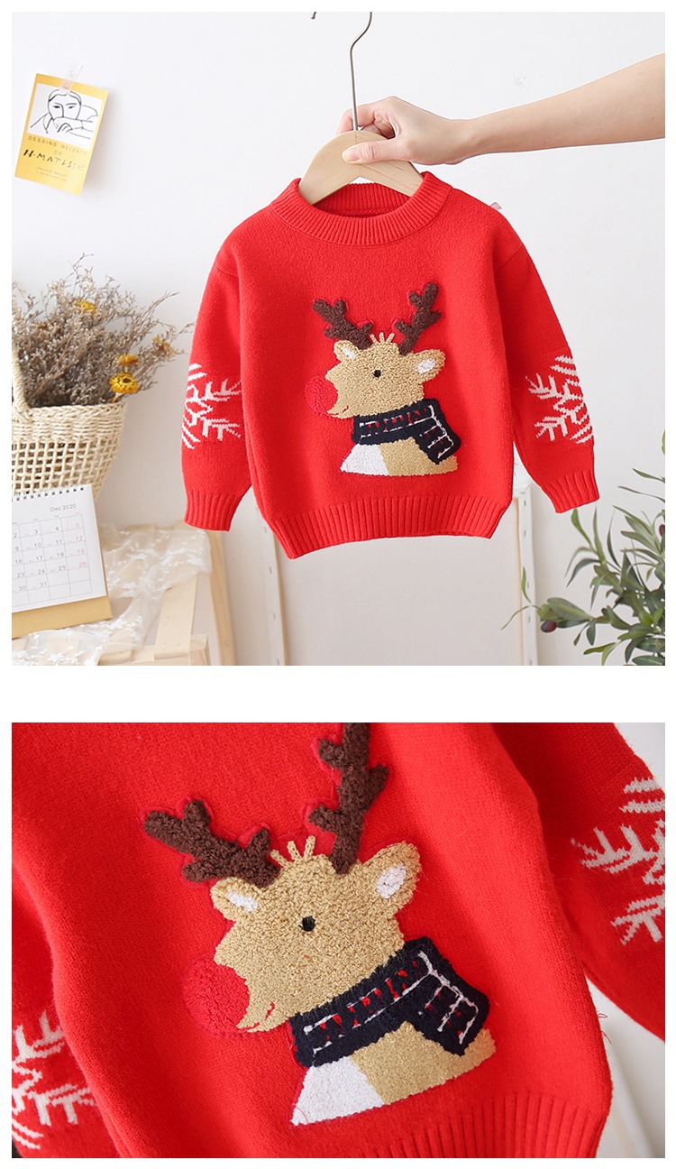 拜年服儿童红色针织套头衫男童卡通打底女童卡通圣诞毛衣加厚洋气