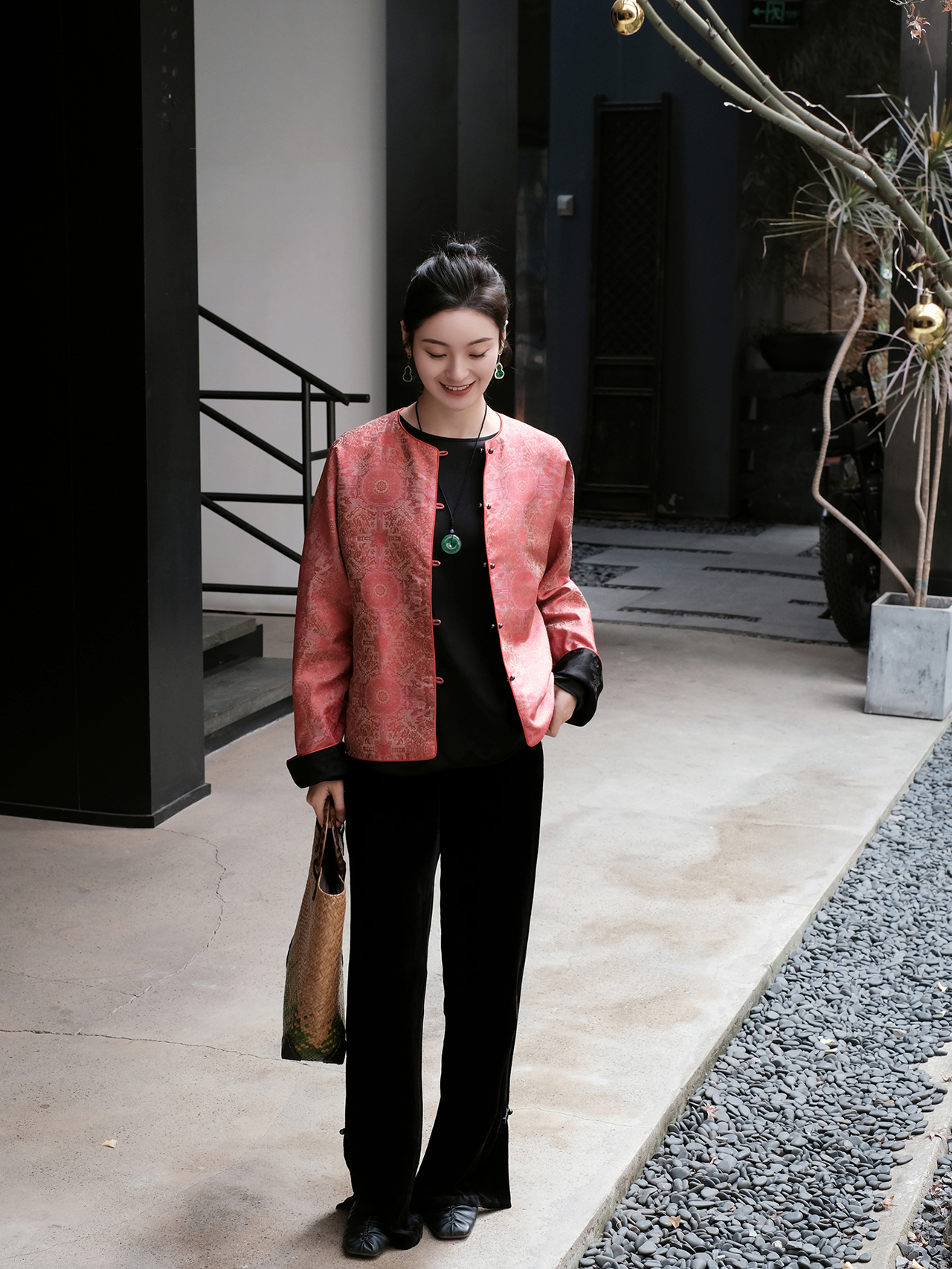 盛唐婧 |金鱼提花一字扣外套-淡绿