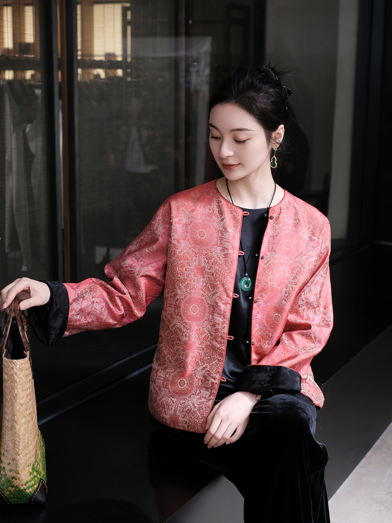 盛唐牡丹| 宋锦八达晕纹对襟外套