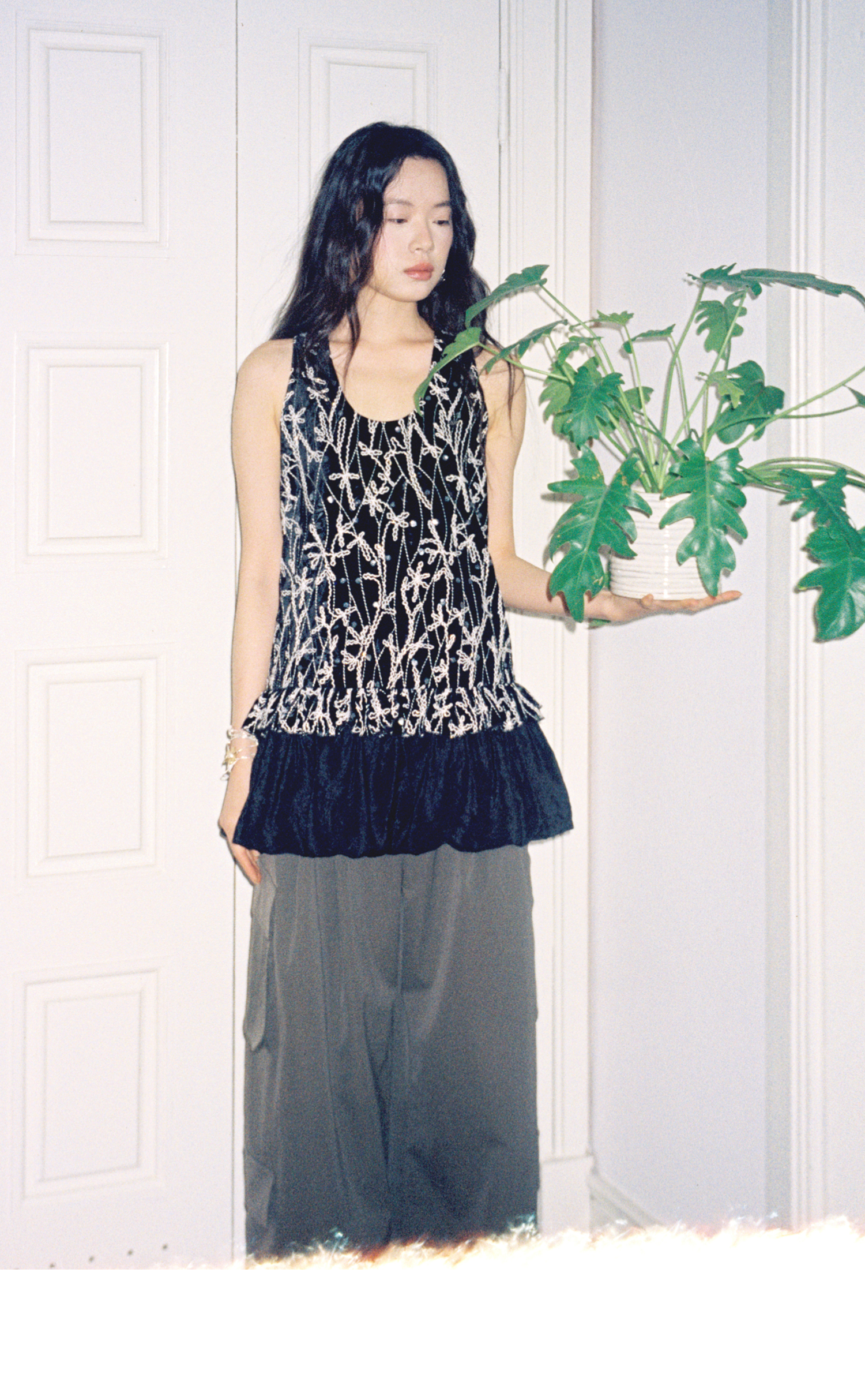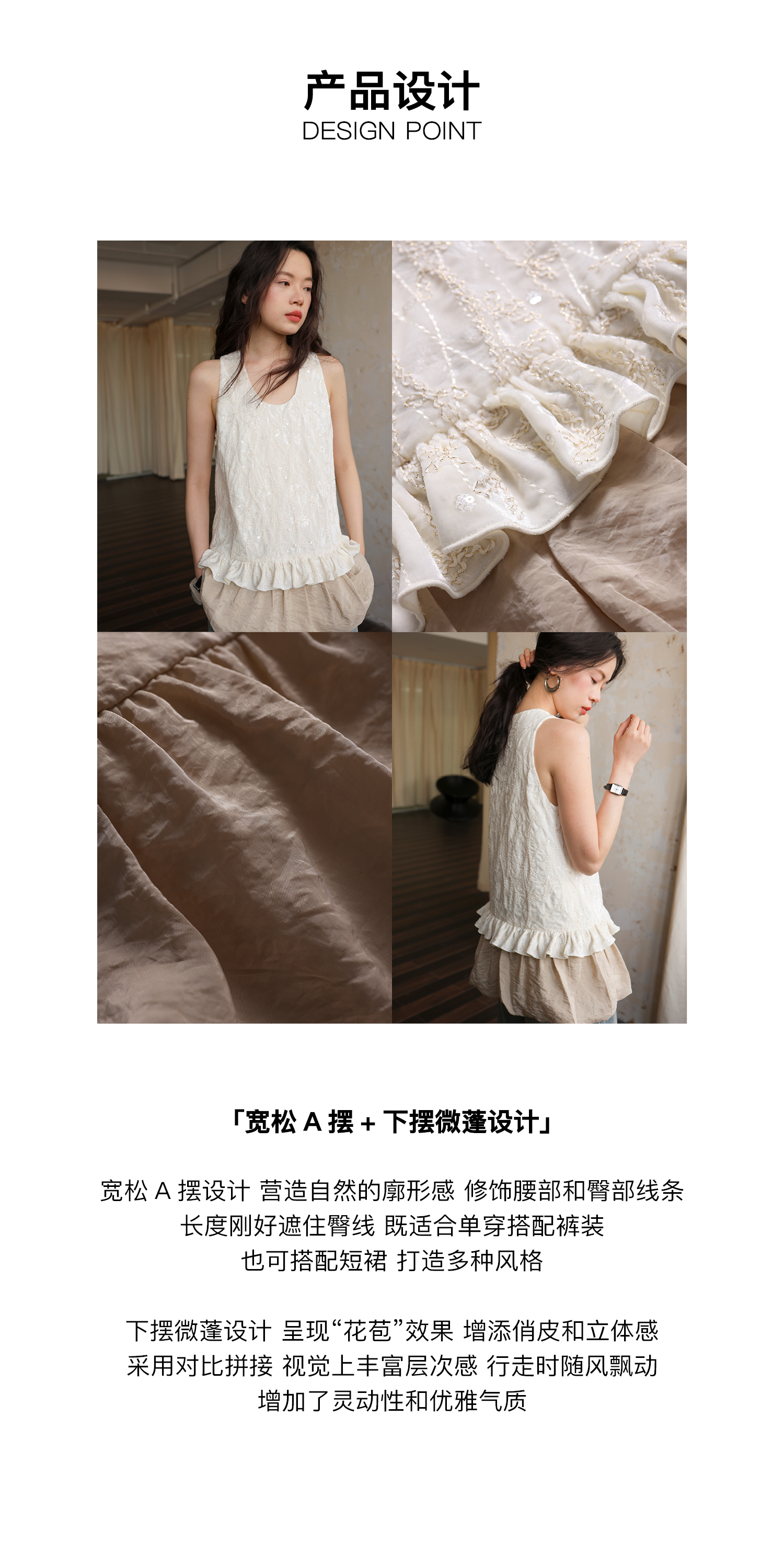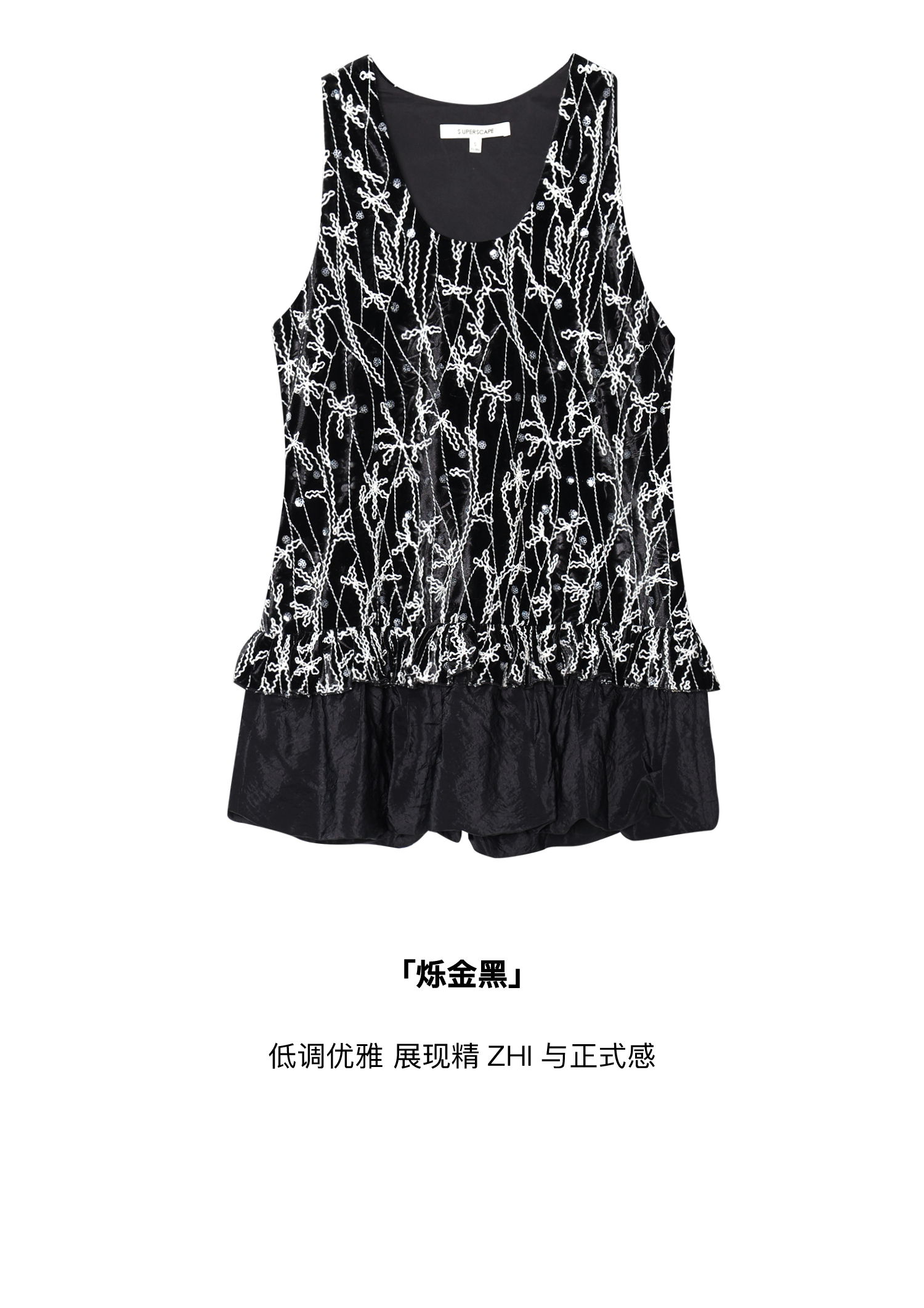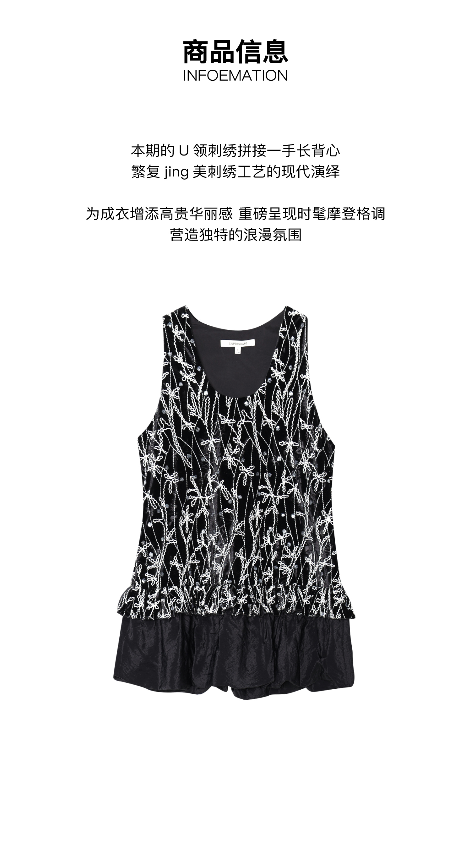 素舶 重工刺绣面料立体花纹U领花苞A摆背心SUPERSCAPE