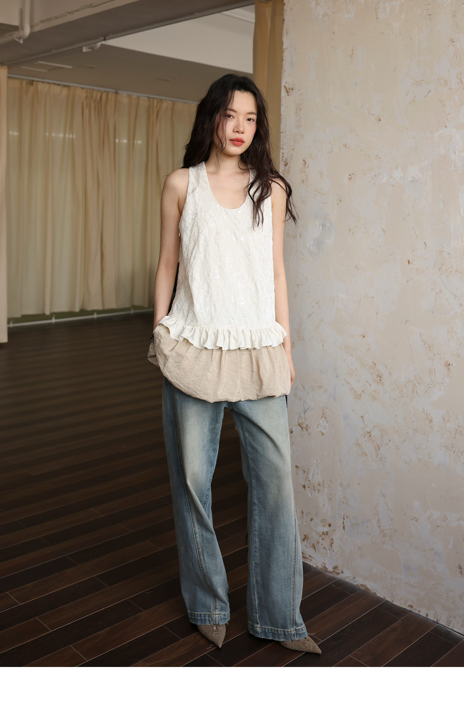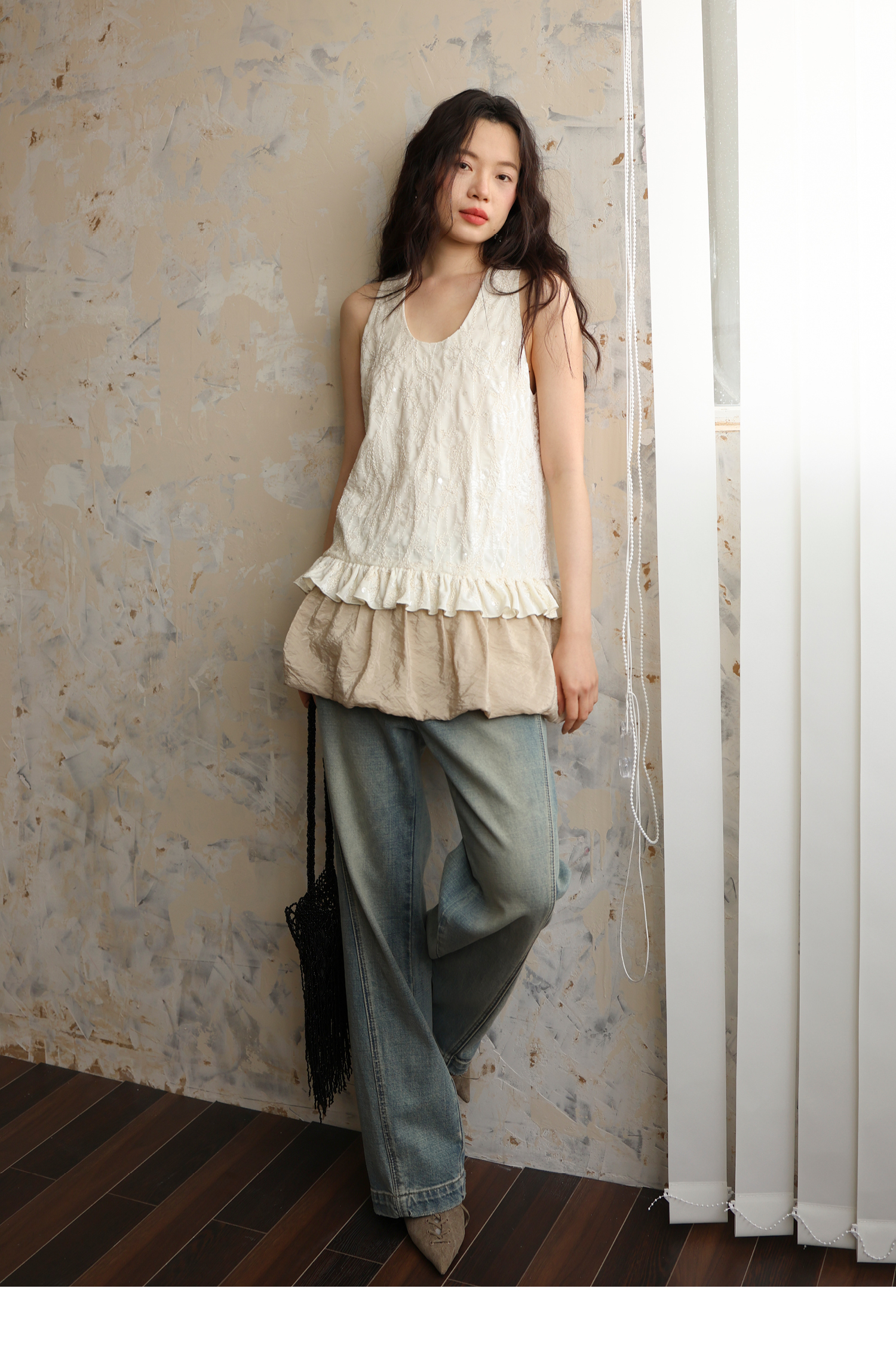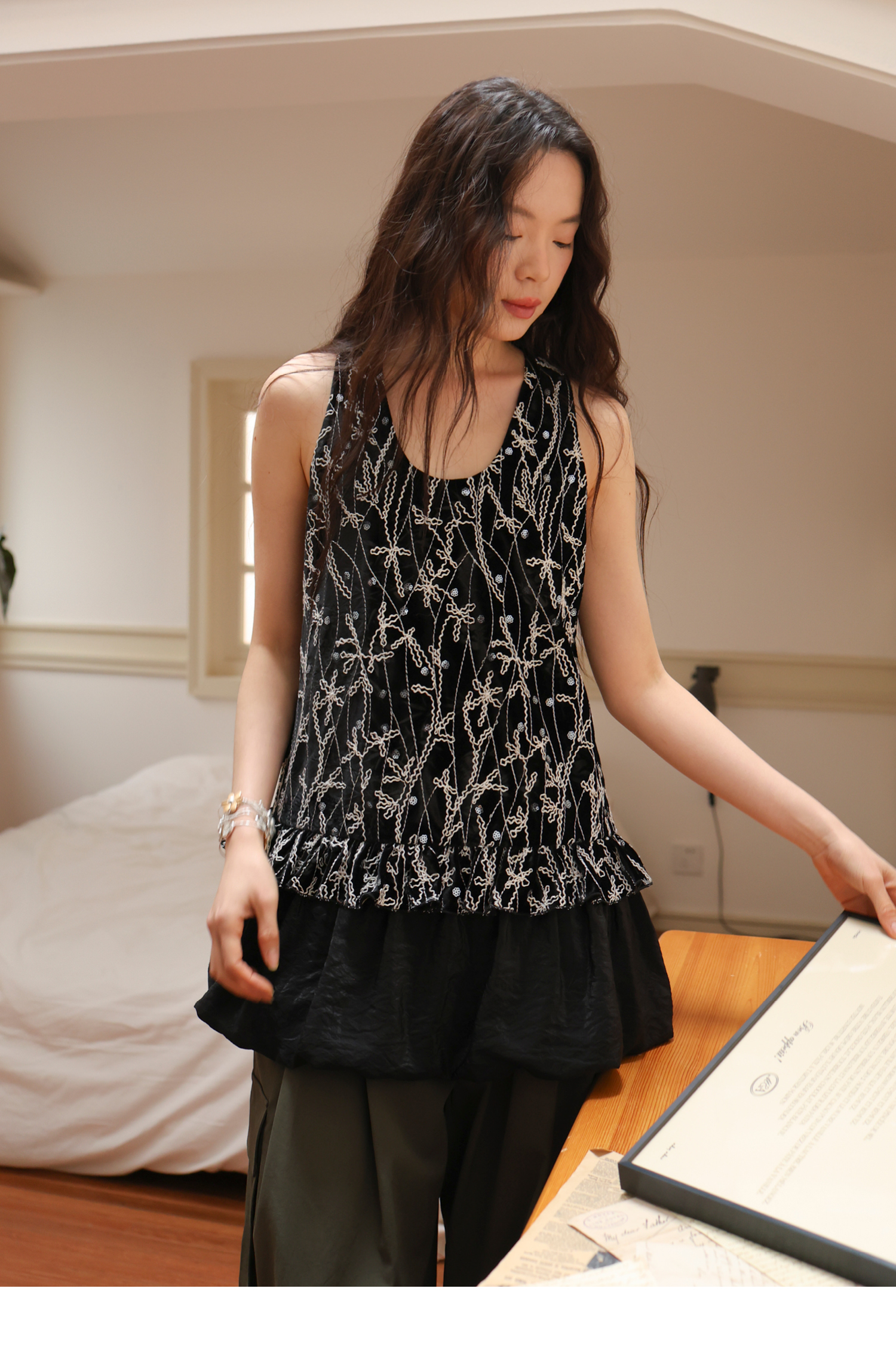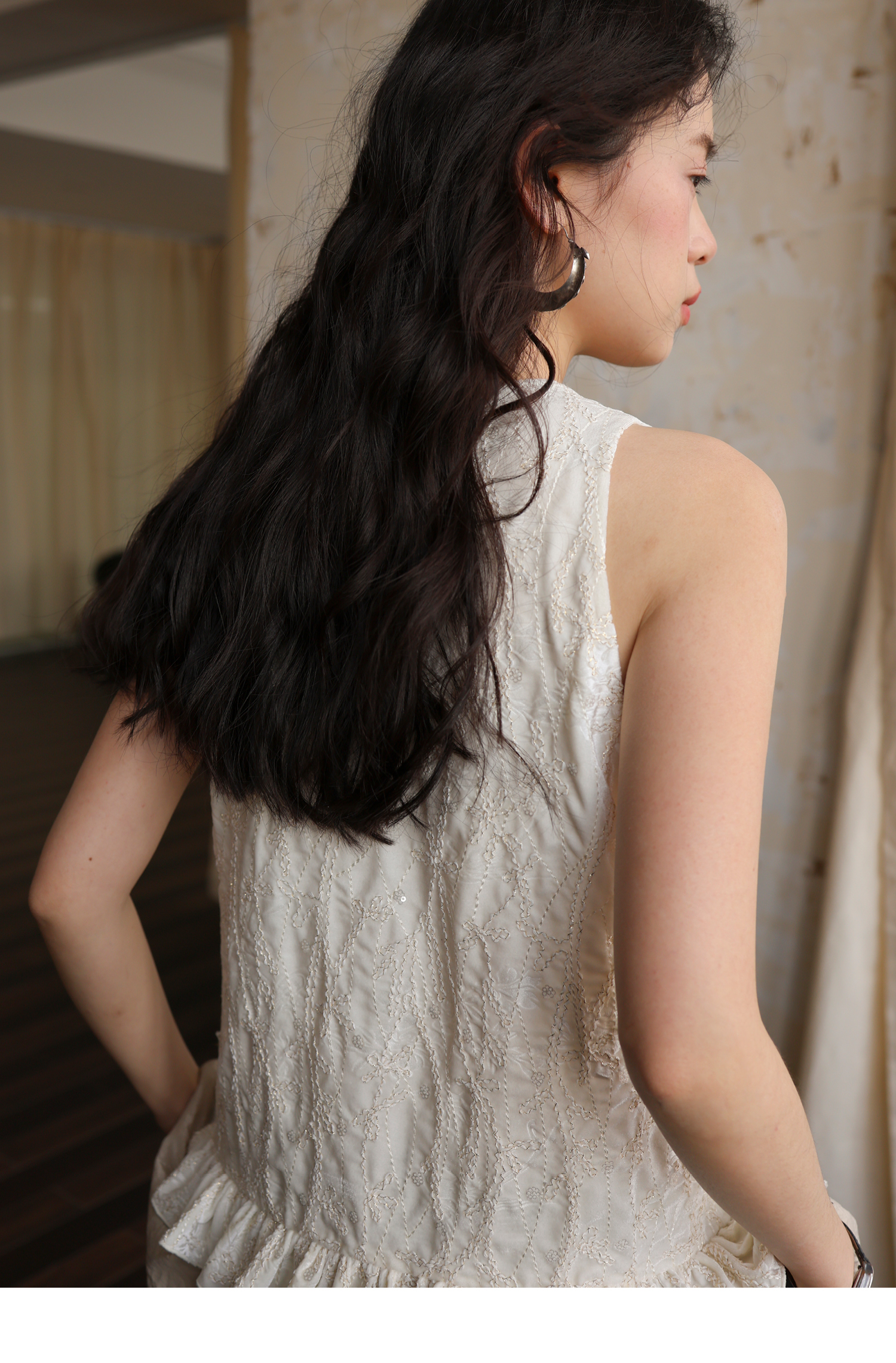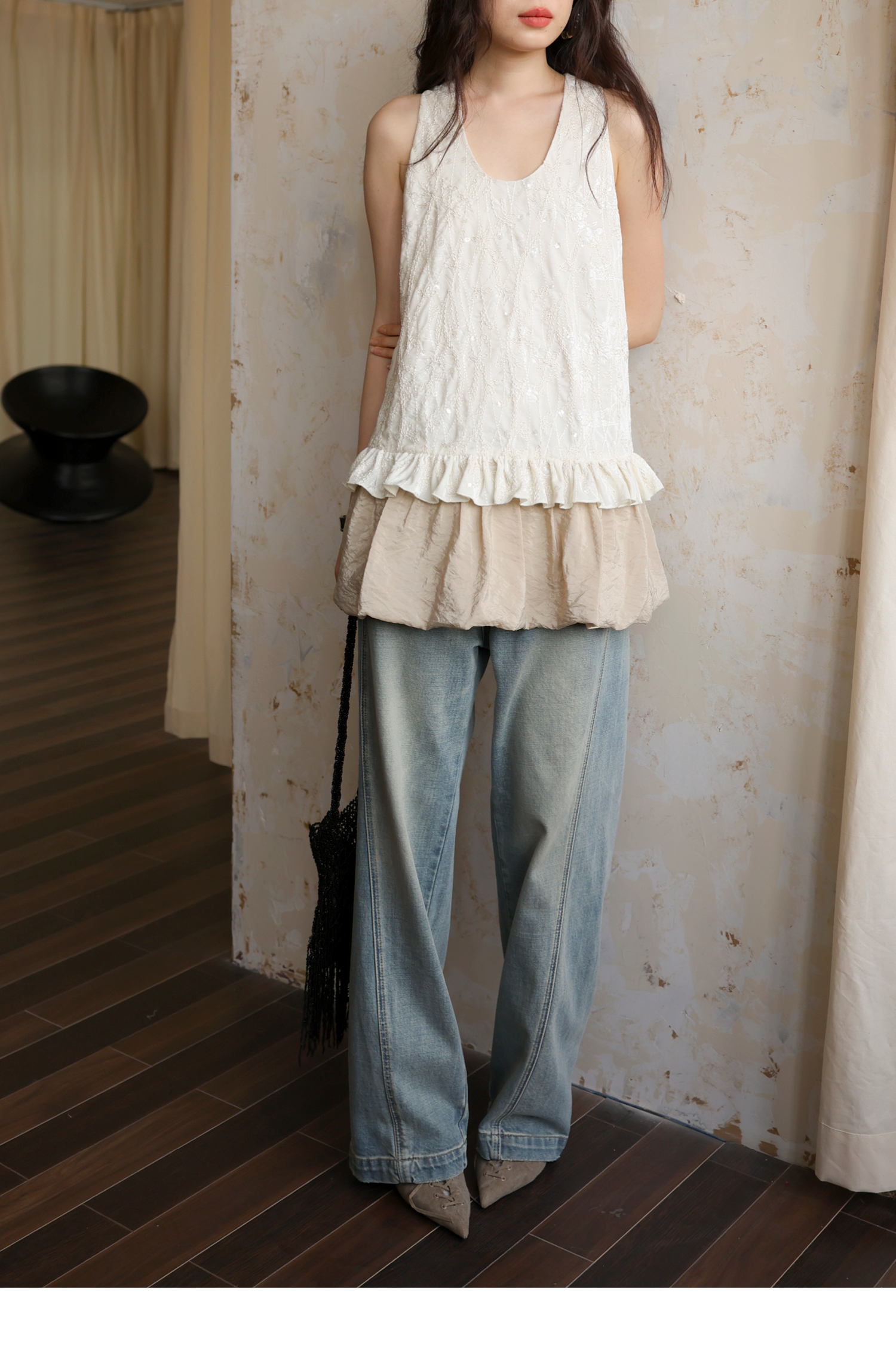 素舶 重工刺绣面料立体花纹U领花苞A摆背心SUPERSCAPE