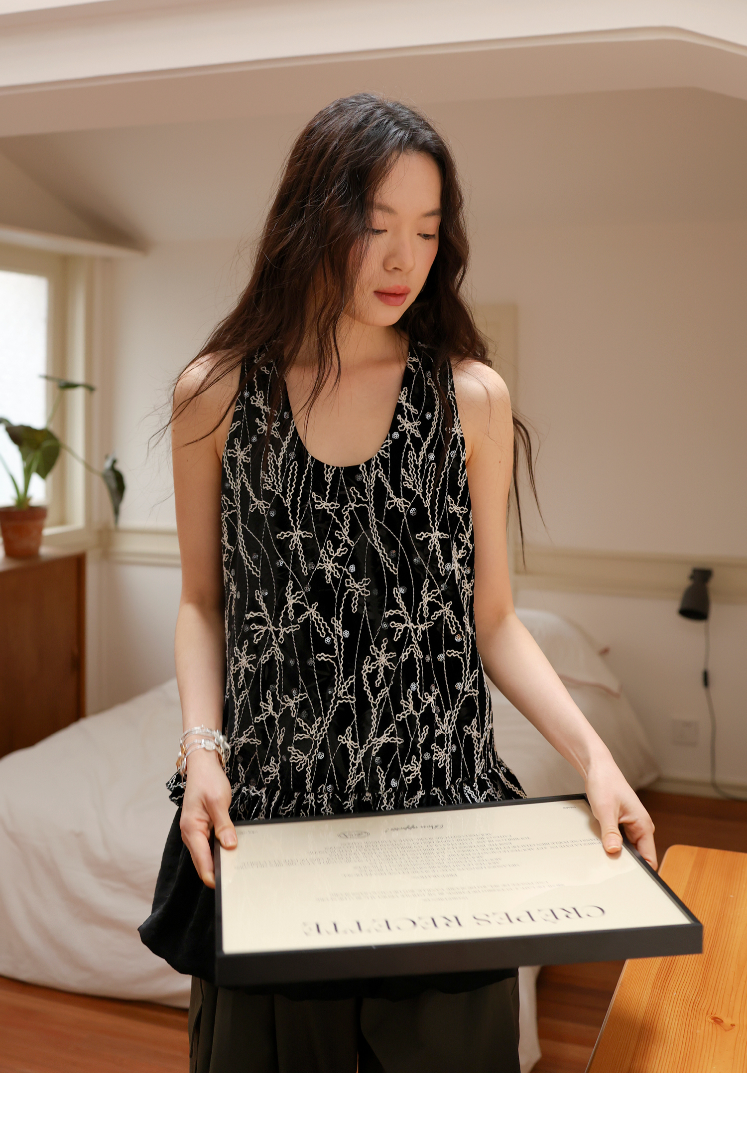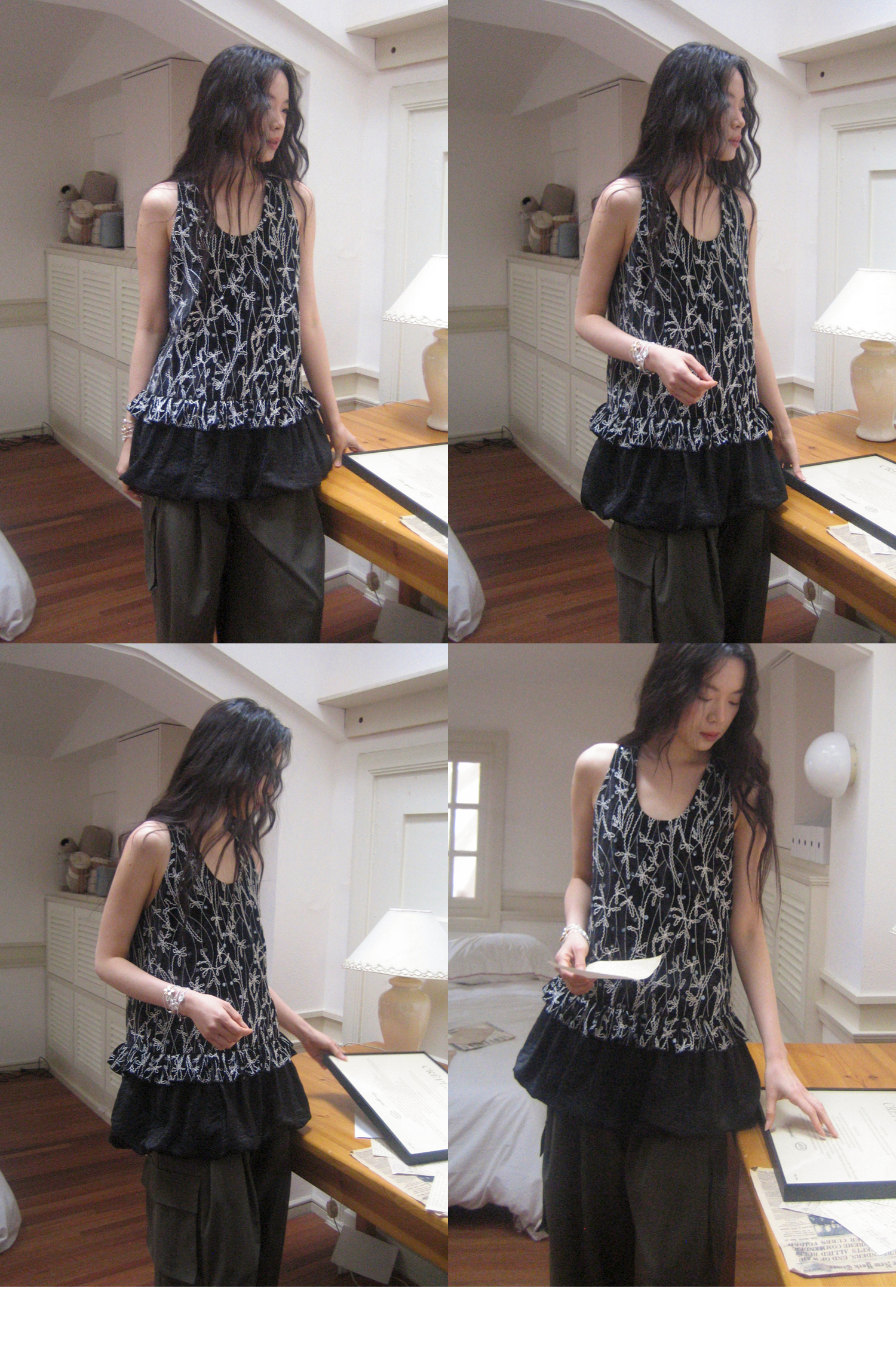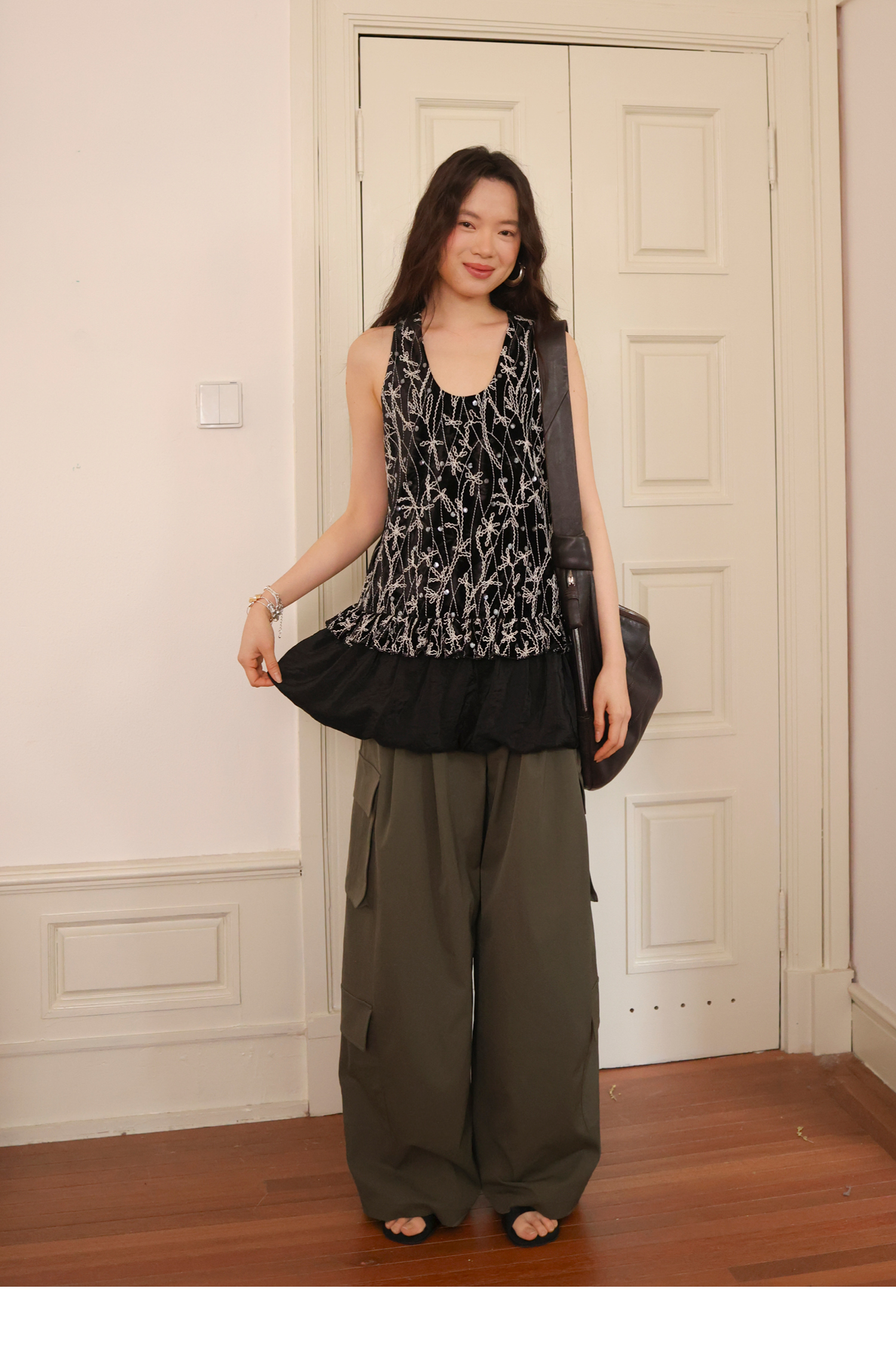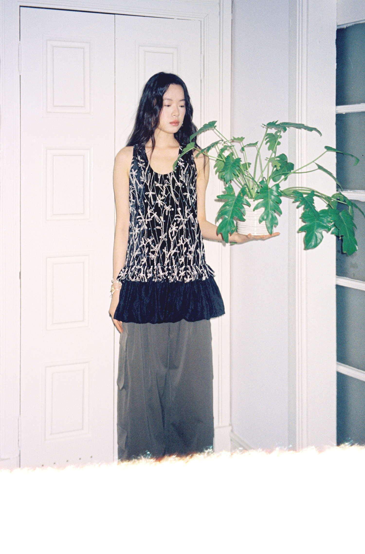 素舶 重工刺绣面料立体花纹U领花苞A摆背心SUPERSCAPE