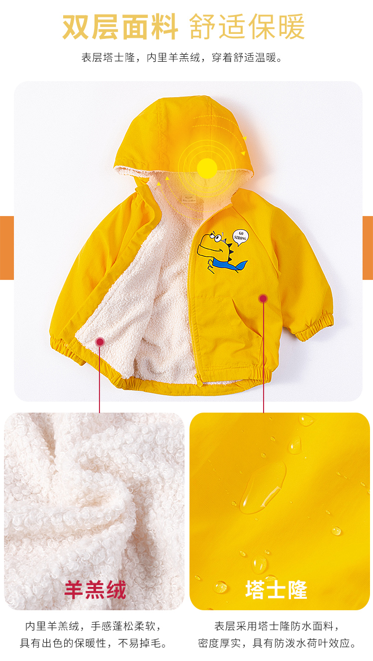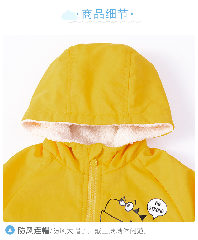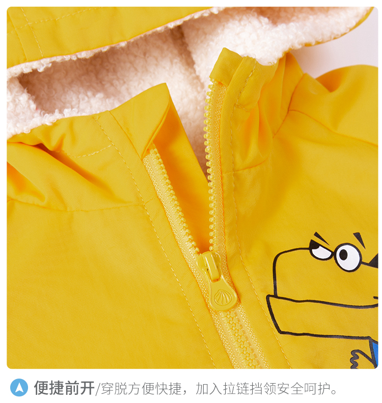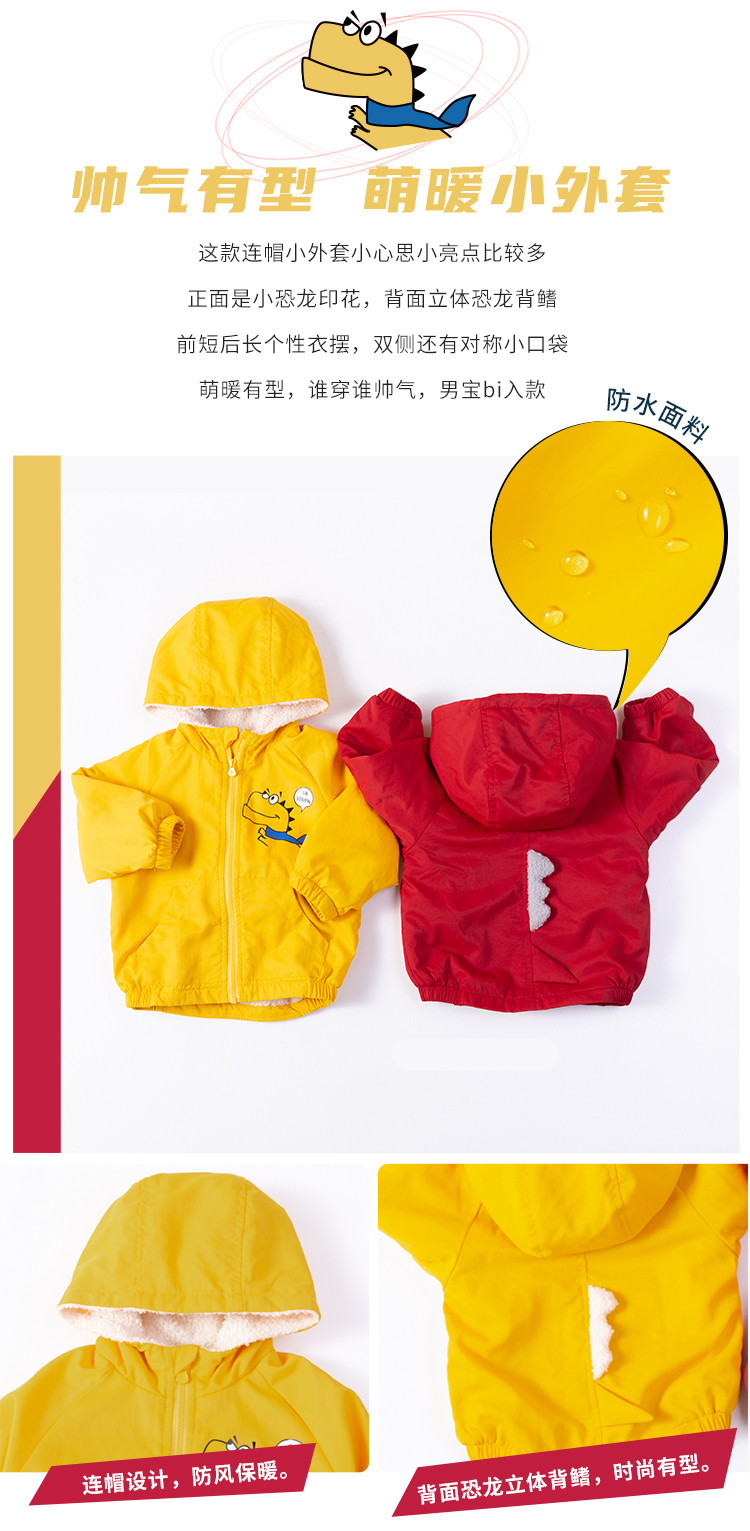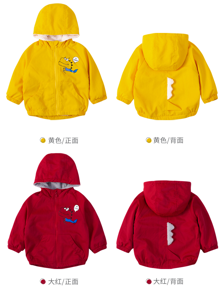 贝贝怡恐龙卡通男女童秋冬加绒加厚保暖连帽外套214S2766
