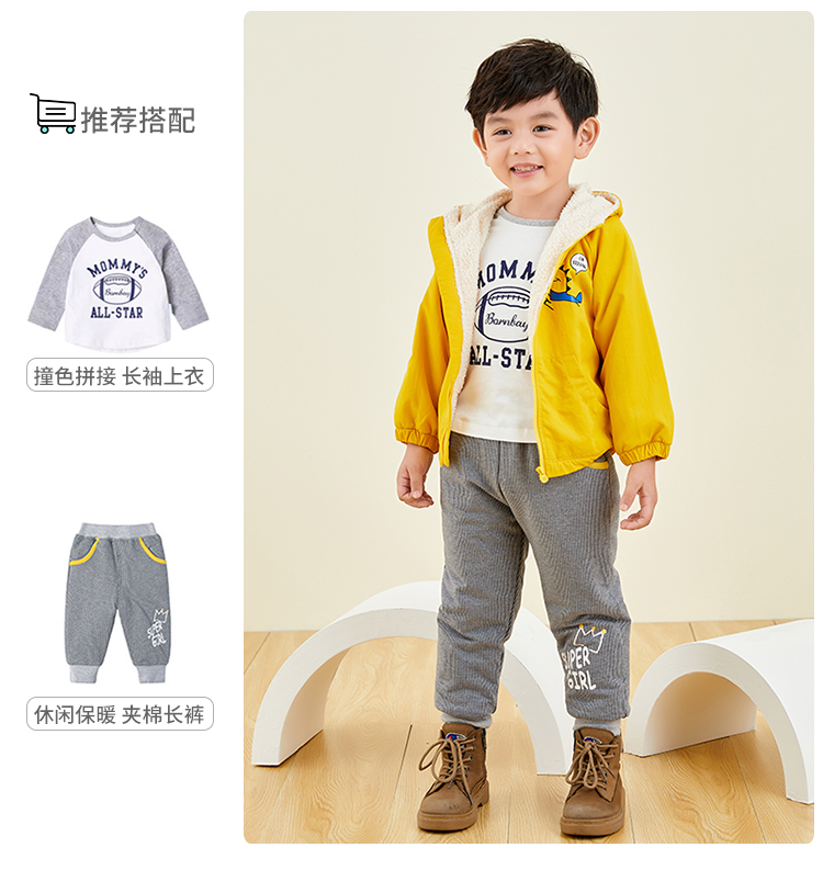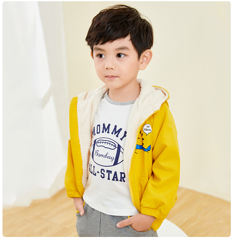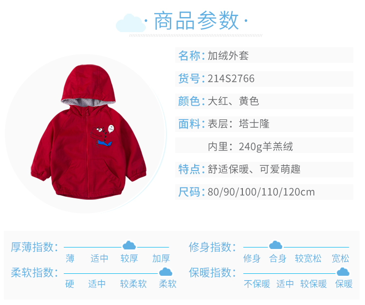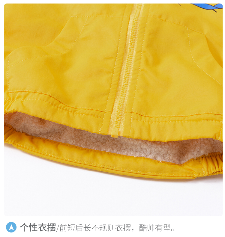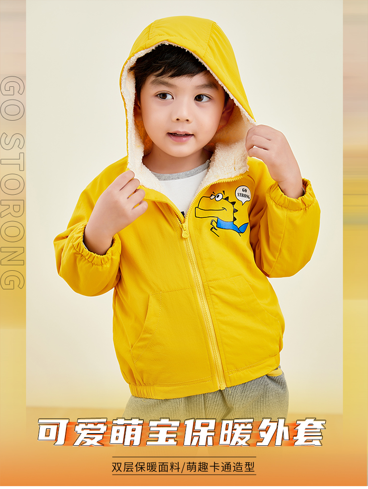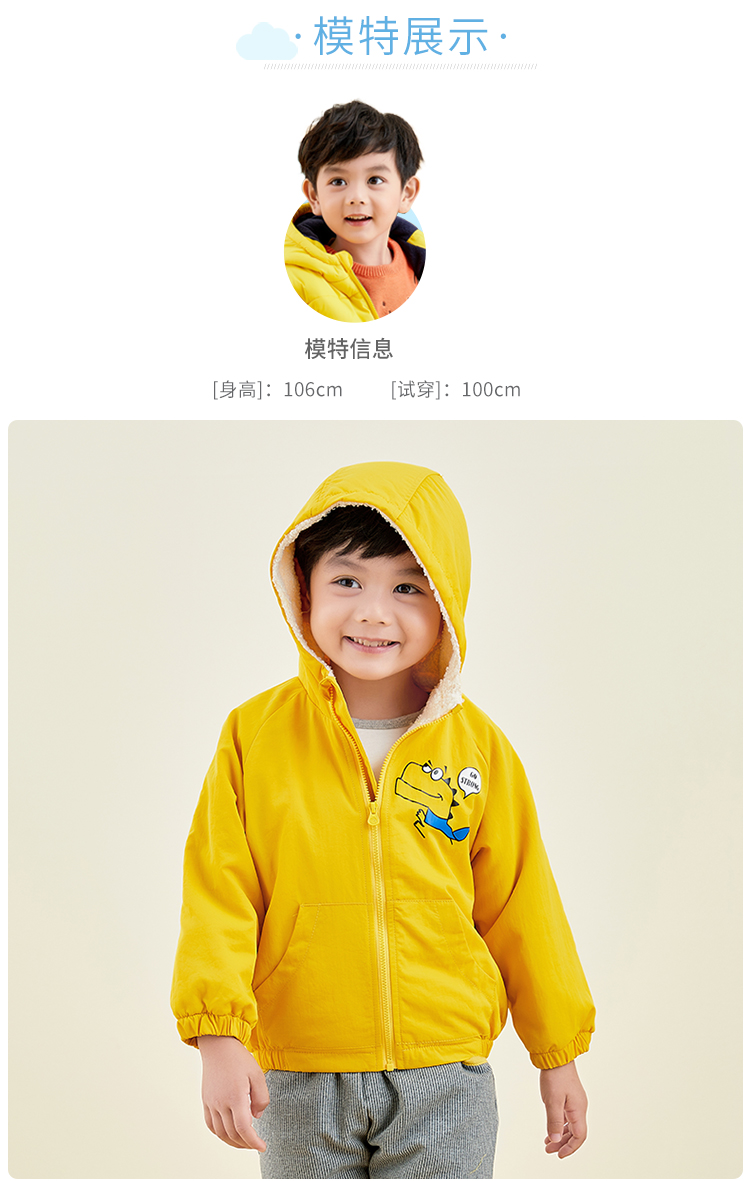 贝贝怡恐龙卡通男女童秋冬加绒加厚保暖连帽外套214S2766