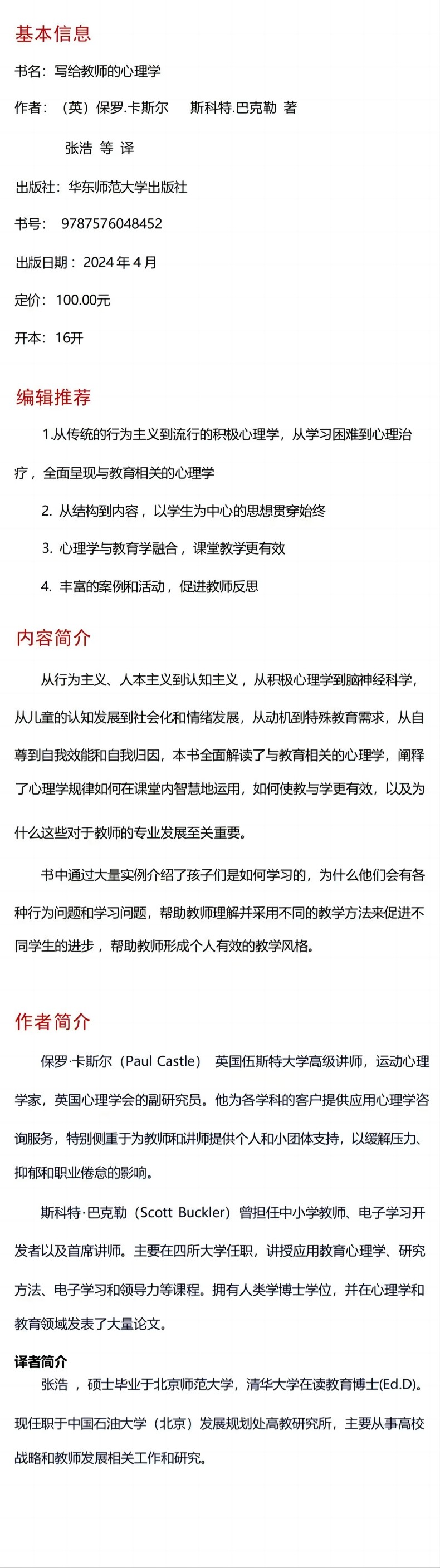 写给教师的心理学 第3版 大夏书系 理解教学复杂性
