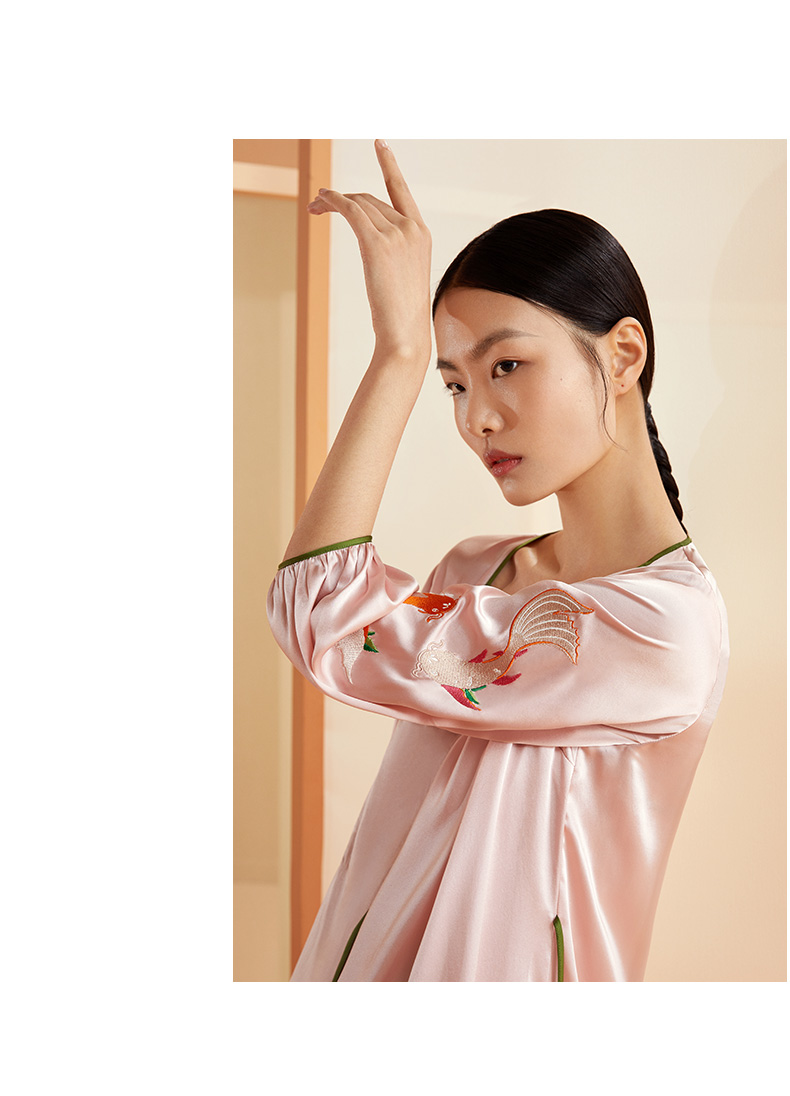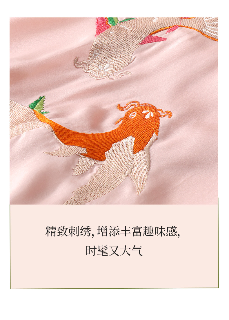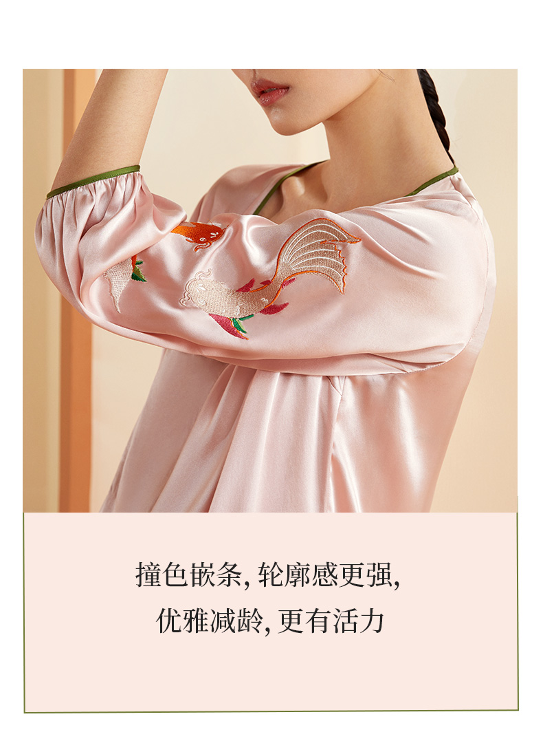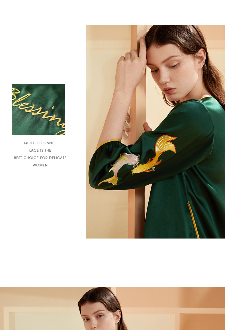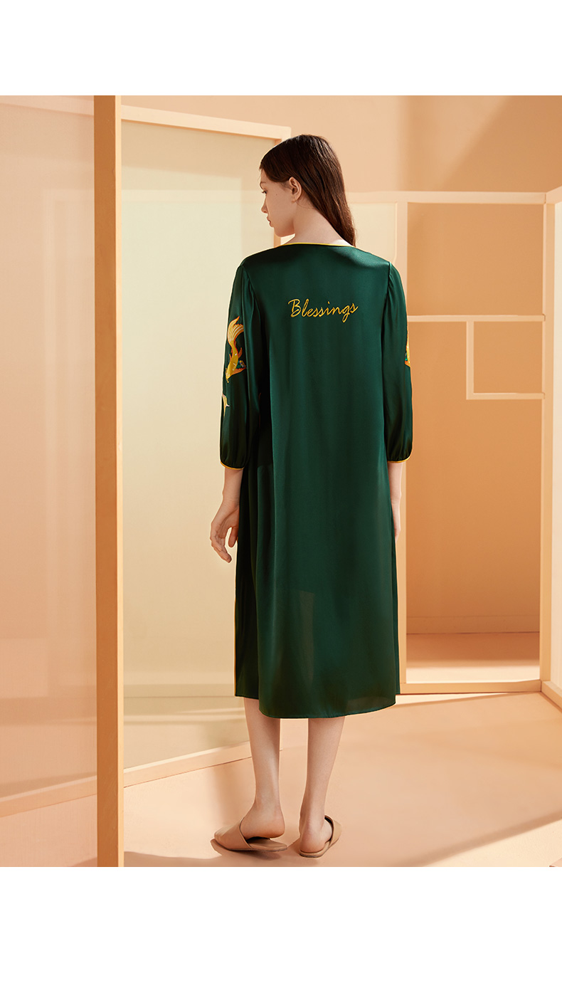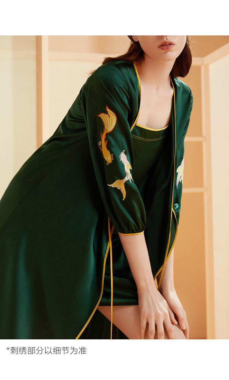 金三塔绣花真丝睡袍100%桑蚕丝性感晨袍家居服睡衣 YSFBC103