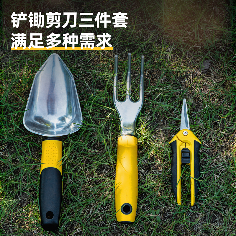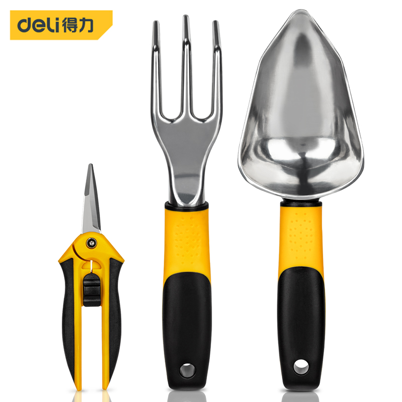 得力DL580803B铲耙套装铝合金三件套(黄)