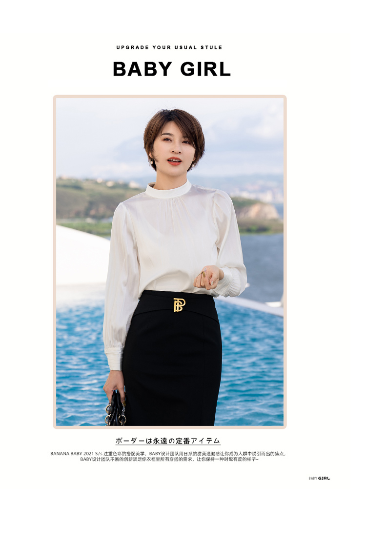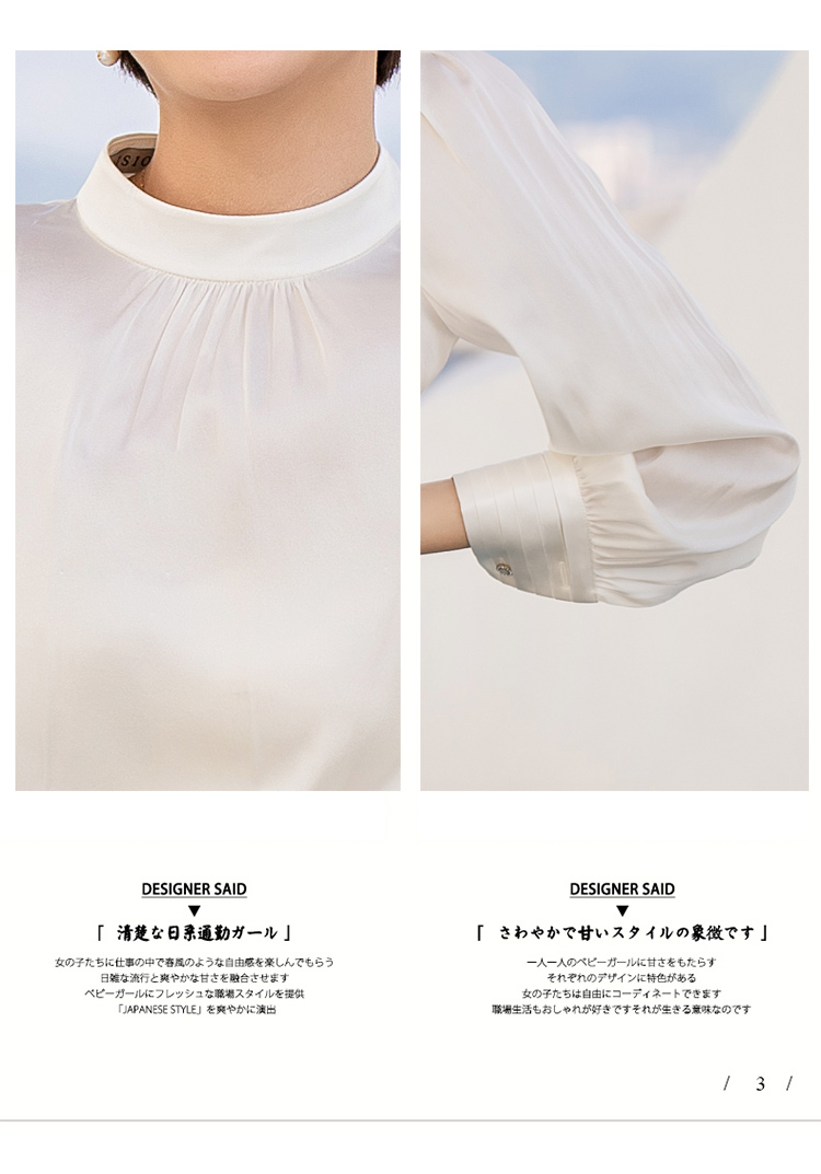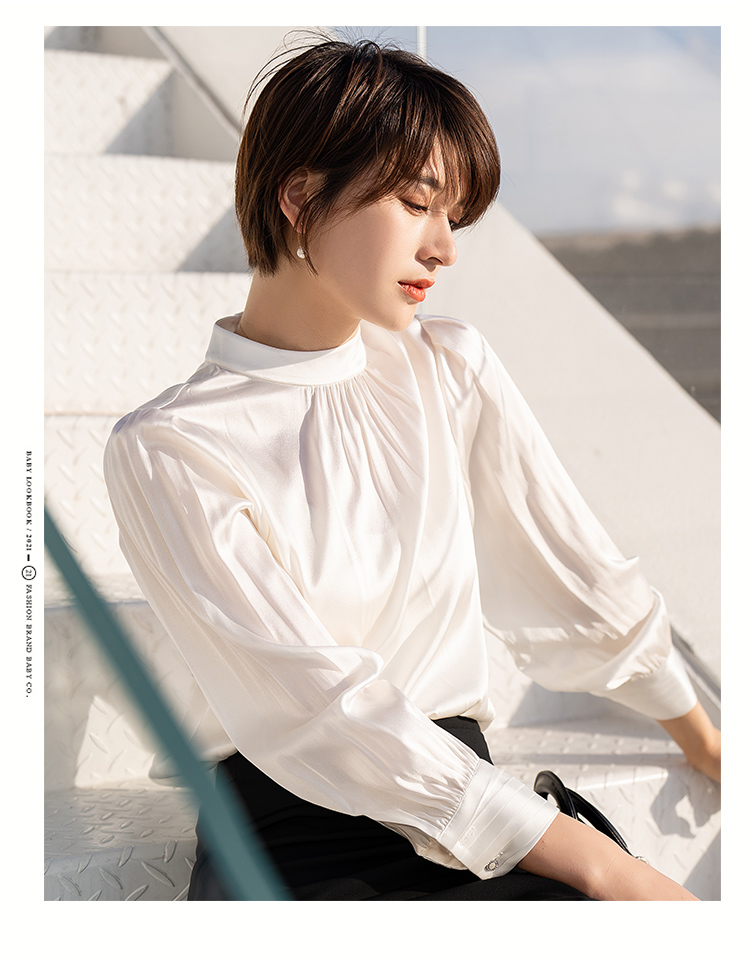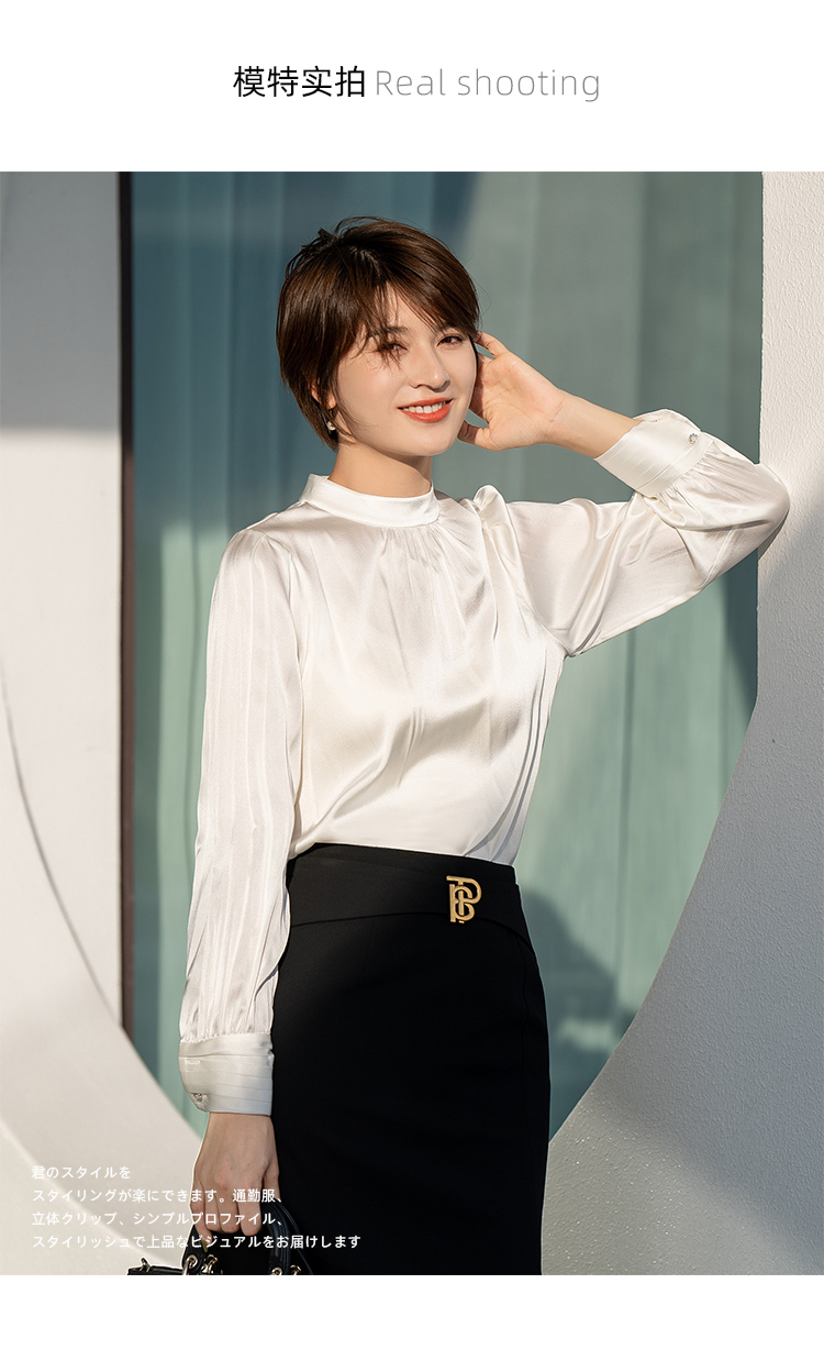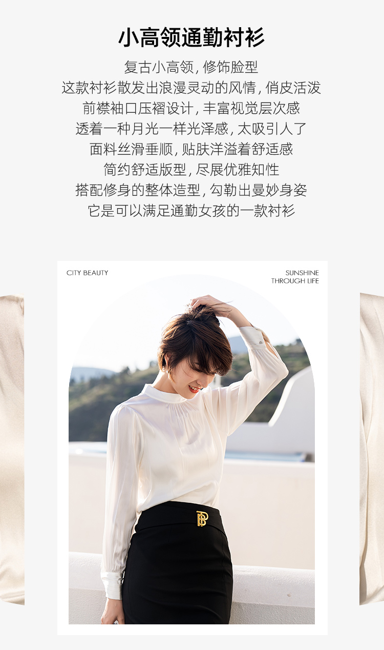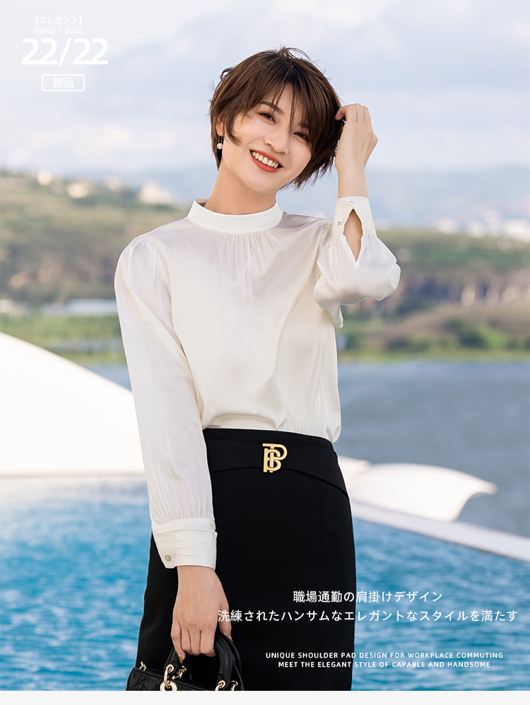 米白色雪纺衬衫女2022秋装新款简约设计感通勤职业圆领上衣