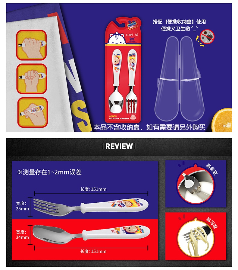 TISOU爱婴小铺宝宝儿童不锈钢辅食叉子勺子学习训练筷子吃饭餐具