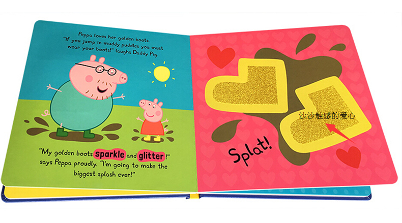 快翻开书,看看佩琪喜欢些什么吧。不只是有图案,还能摸摸小猪佩奇喜欢的东西哦:给泰迪的肚子挠痒痒,摸摸佩琪的金色闪光靴子……