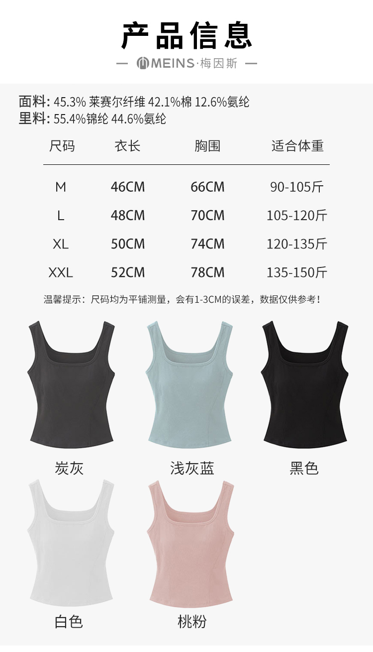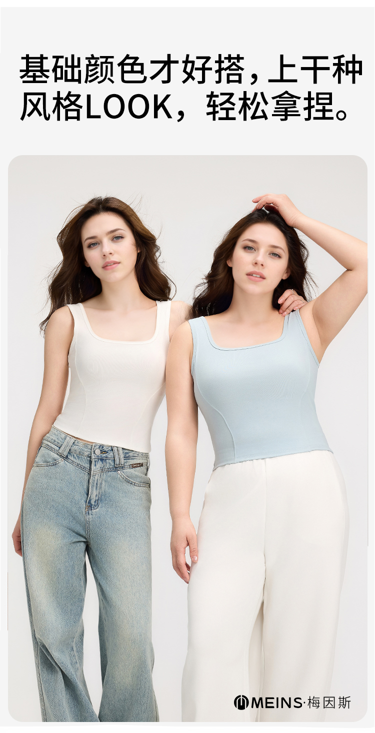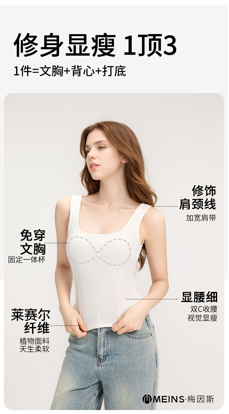 MEINS梅因斯“人鱼线”凉感免bra背心固定胸垫美背打底背心T25NF2181