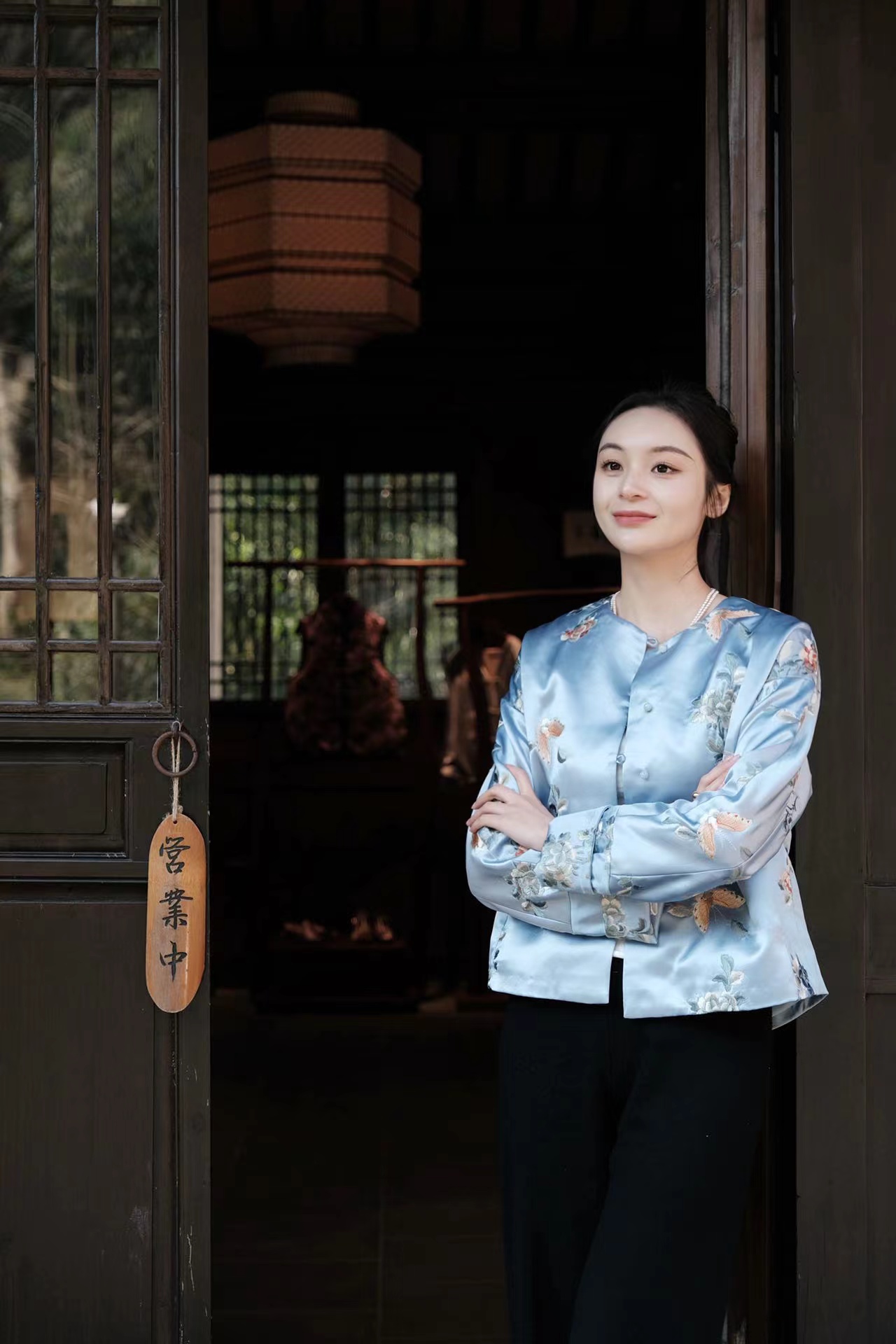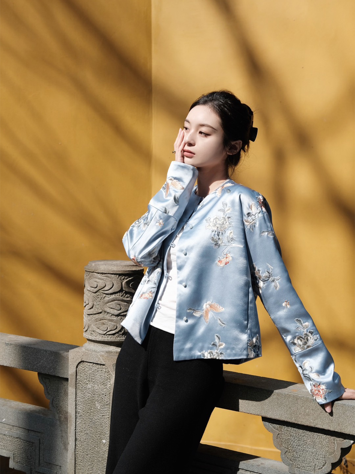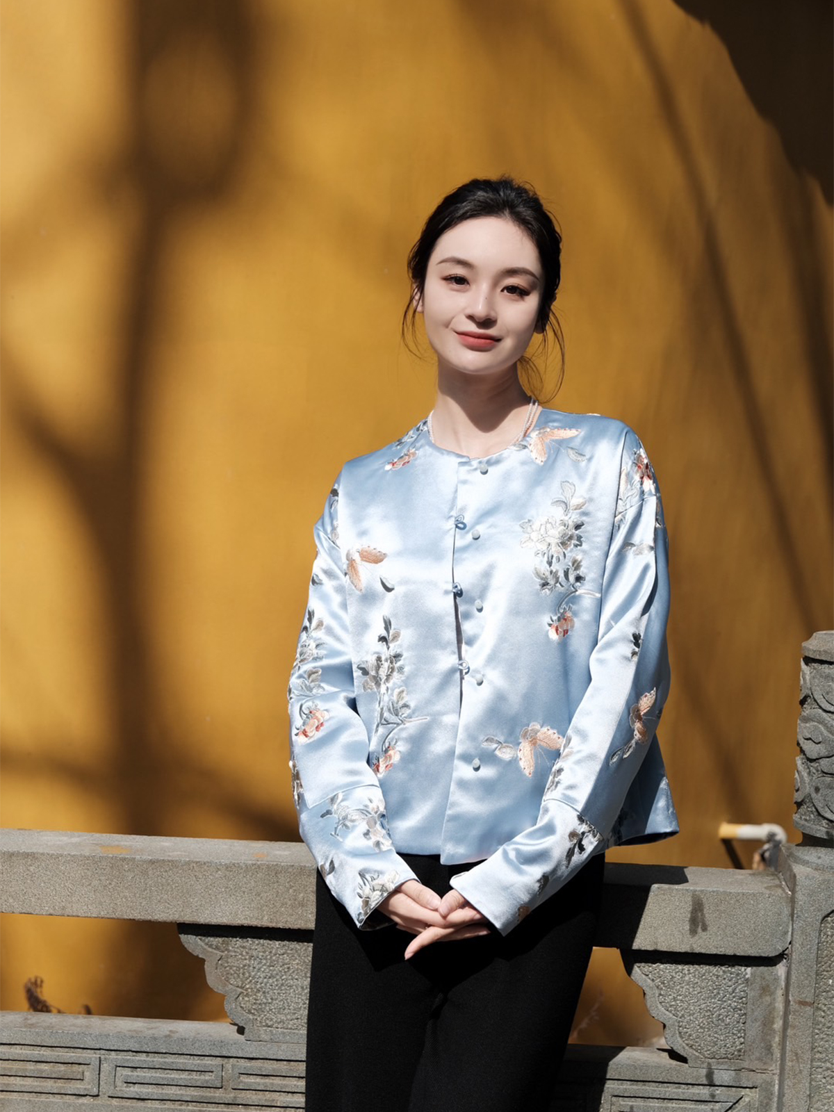 盛唐牡丹 |真丝手推绣外套短款/白色蝶恋花真丝里布