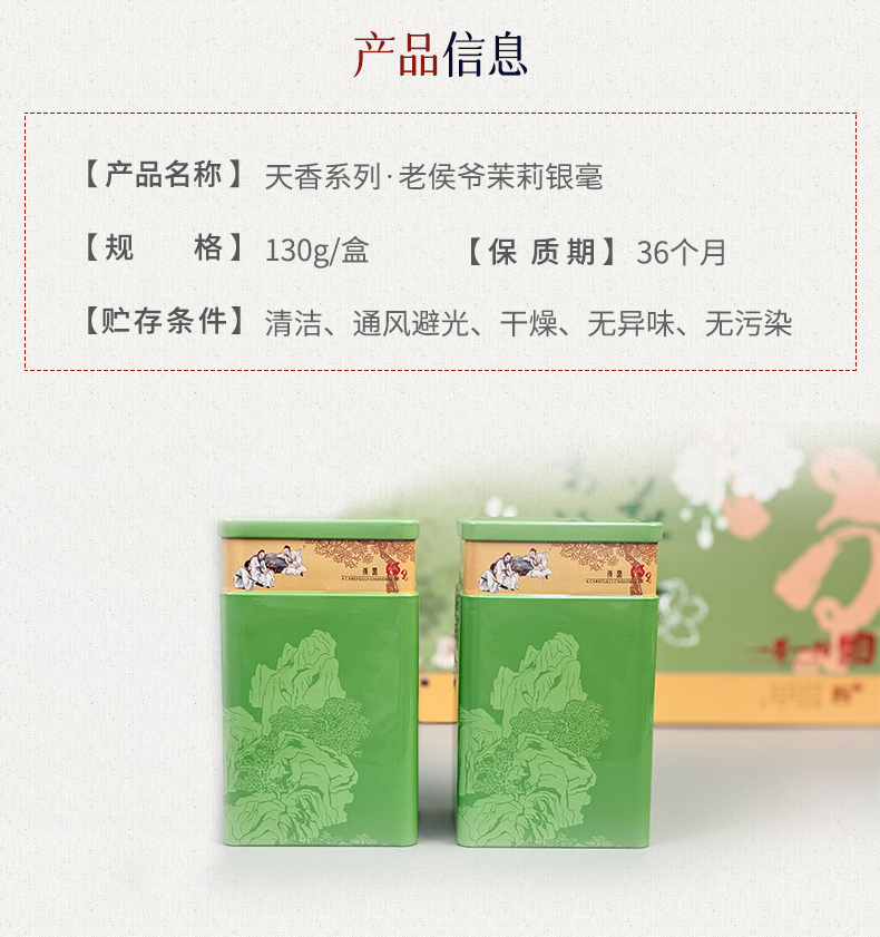 【品名】:天香系列·老侯爷茉莉银毫