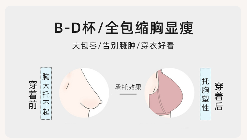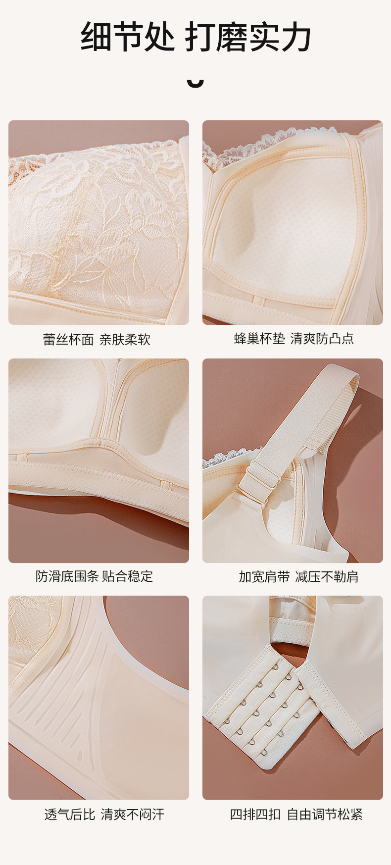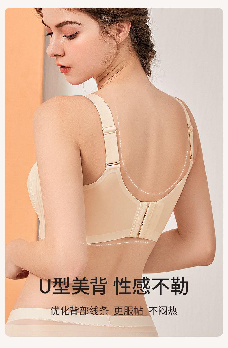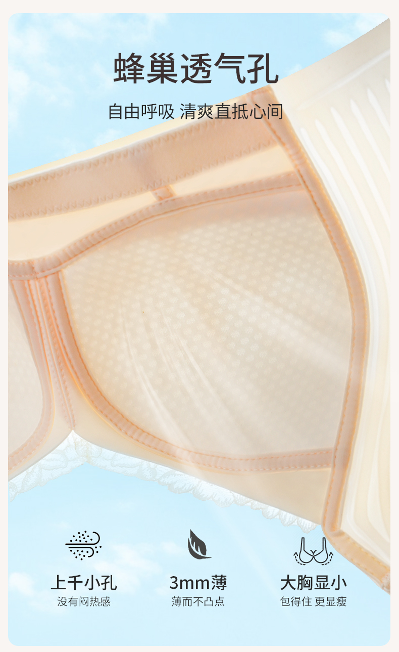 雅黛丽内衣夏天薄款大胸显小美背文胸2023新款无痕透气收副乳胸罩