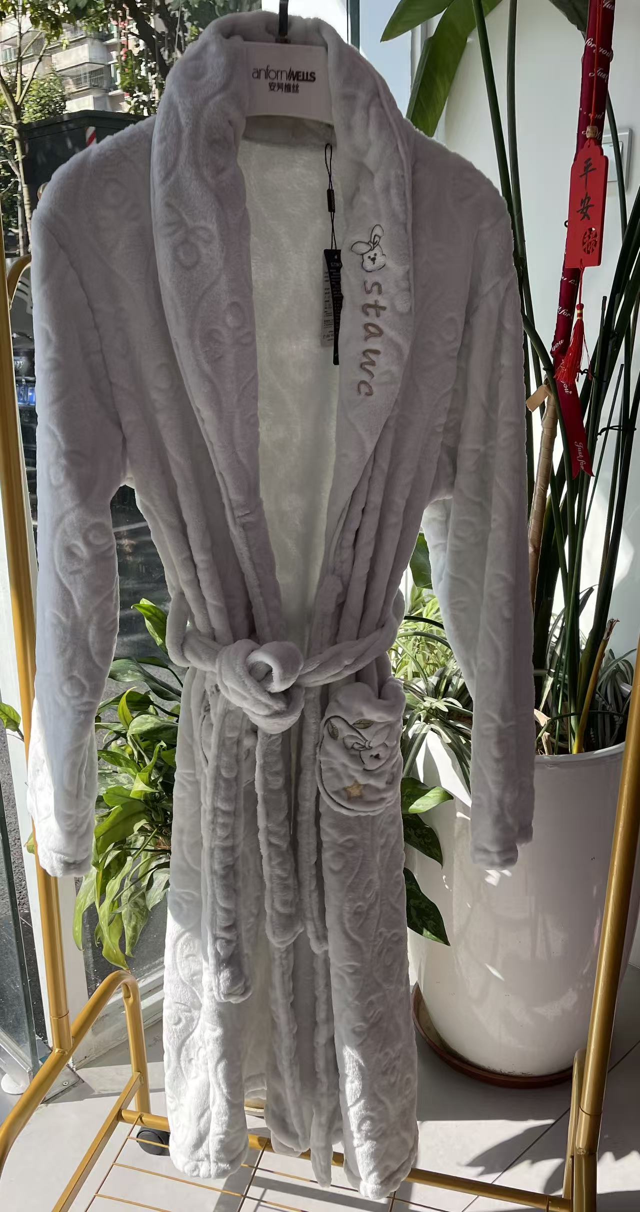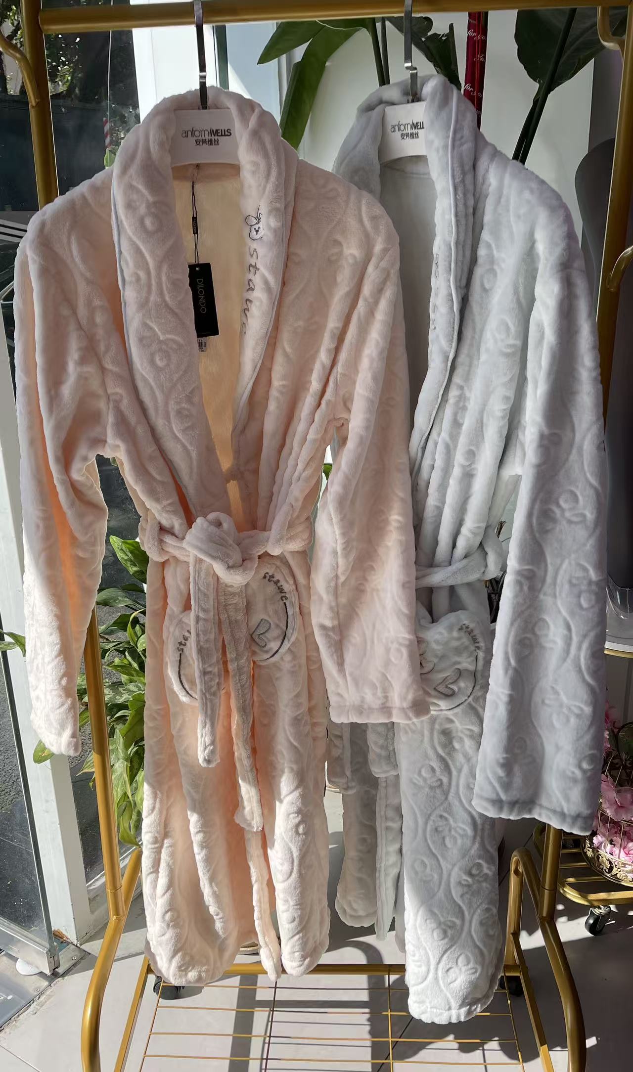 双面法兰绒剪花女士睡袍柔软舒适1415766