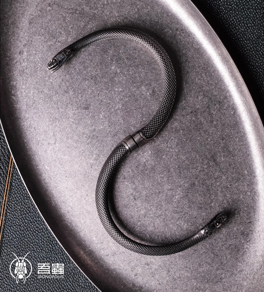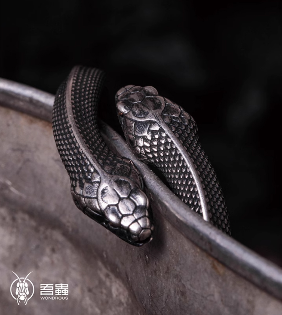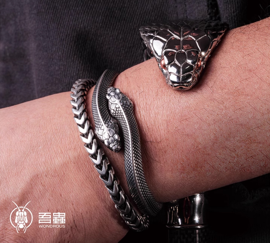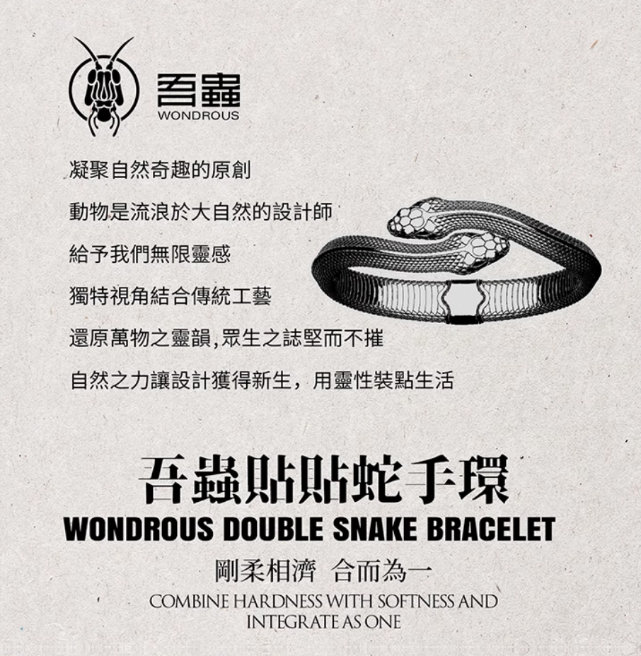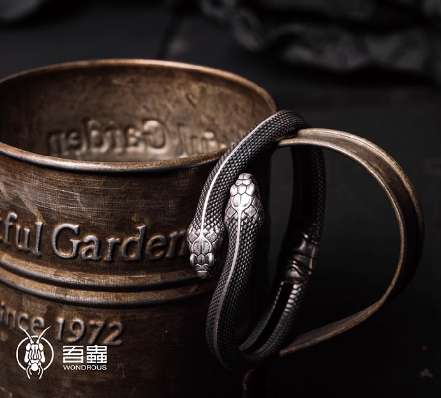 吾蟲-双蛇手镯 925银 贴贴蛇形 手环情侣银饰 个性礼物【官方授权 48小时发货】