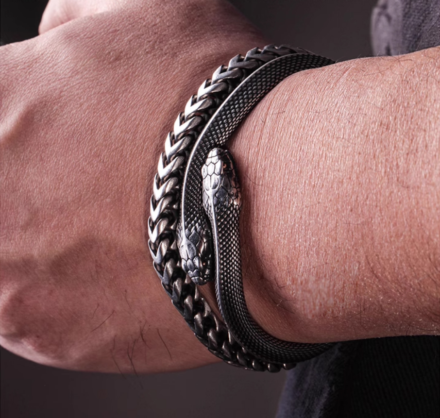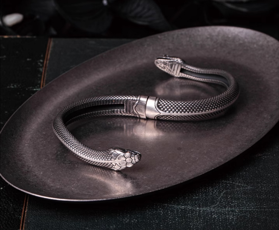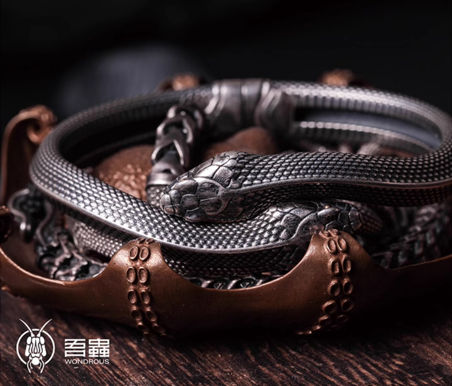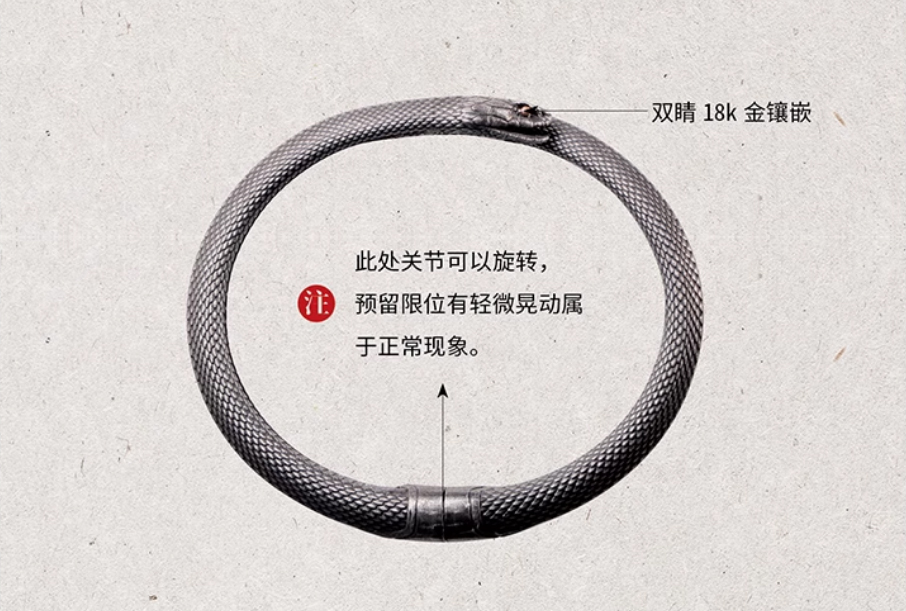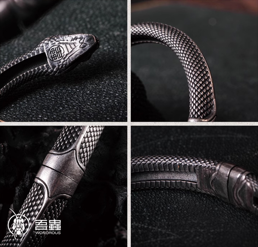 吾蟲-双蛇手镯 925银 贴贴蛇形 手环情侣银饰 个性礼物【官方授权 48小时发货】