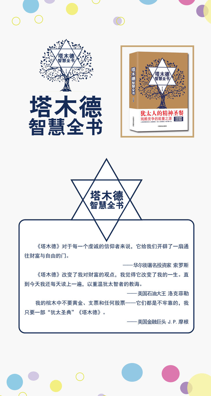 《塔木德》是犹太民族瑰宝,是三千多年犹太人智慧的结晶。它涵盖的信息注重实用性,无论是为人、处世还是交友、经商,在《塔木德》中都能够找到行为准则,都能够为我们指引方向。