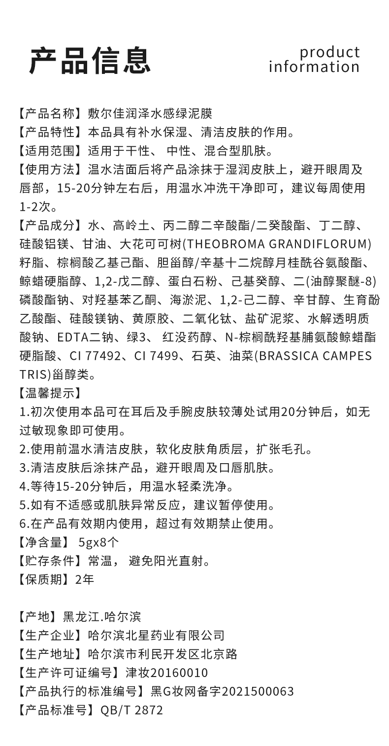 【保税区包邮直发】中国 敷尔佳 绿泥膜清洁涂抹面膜 8颗 新老包装随机发,介意慎拍