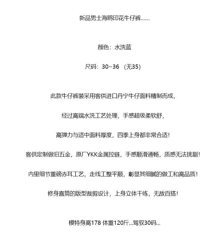 【ss1】新品男士海鸥印花牛仔长裤!!