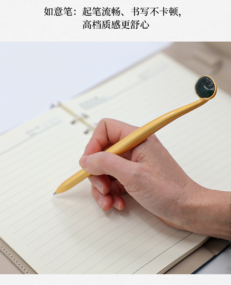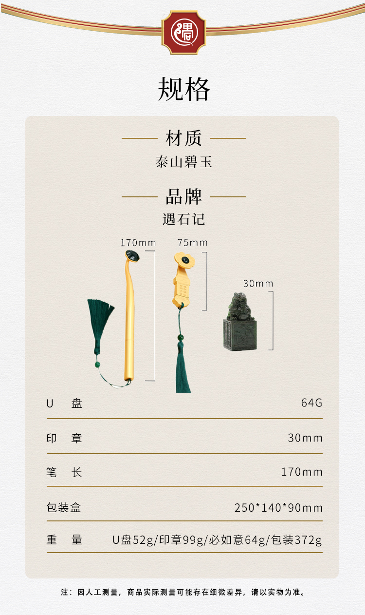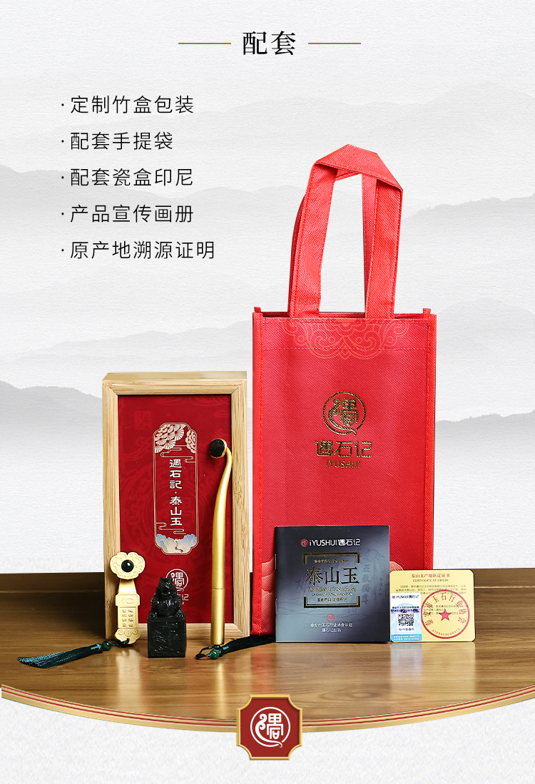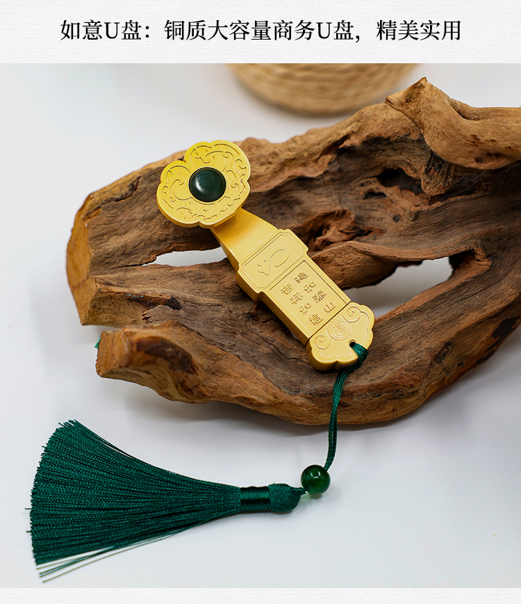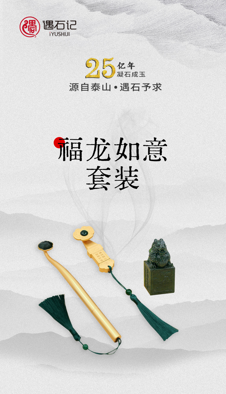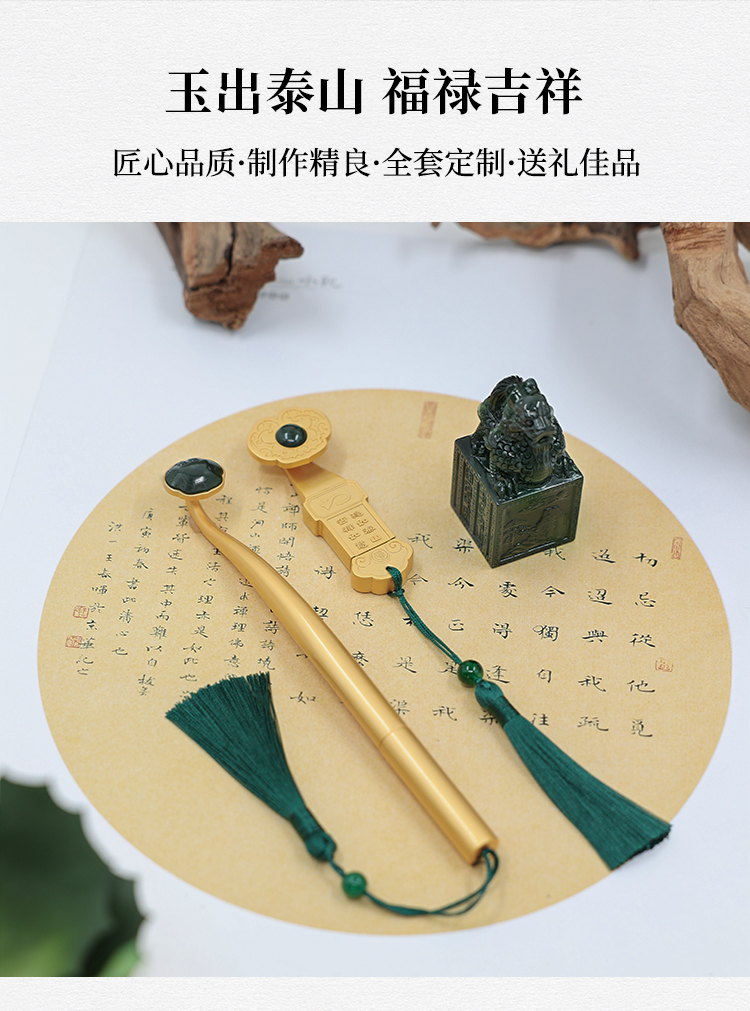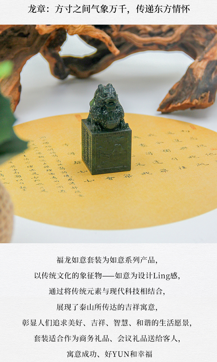 遇石记【福龙如意】泰山玉礼盒套装镶嵌泰山碧玉如意U盘签字笔祥龙印章