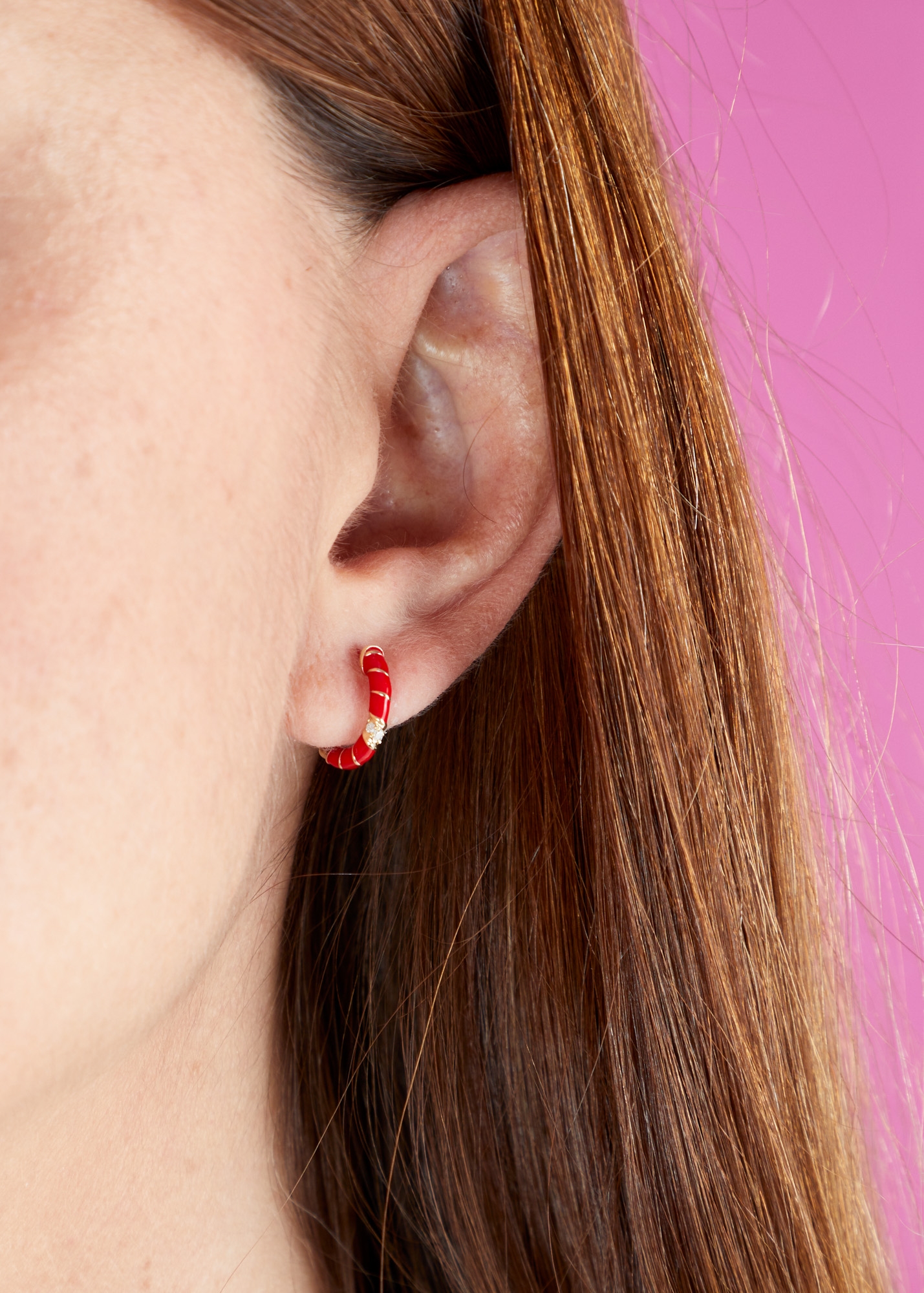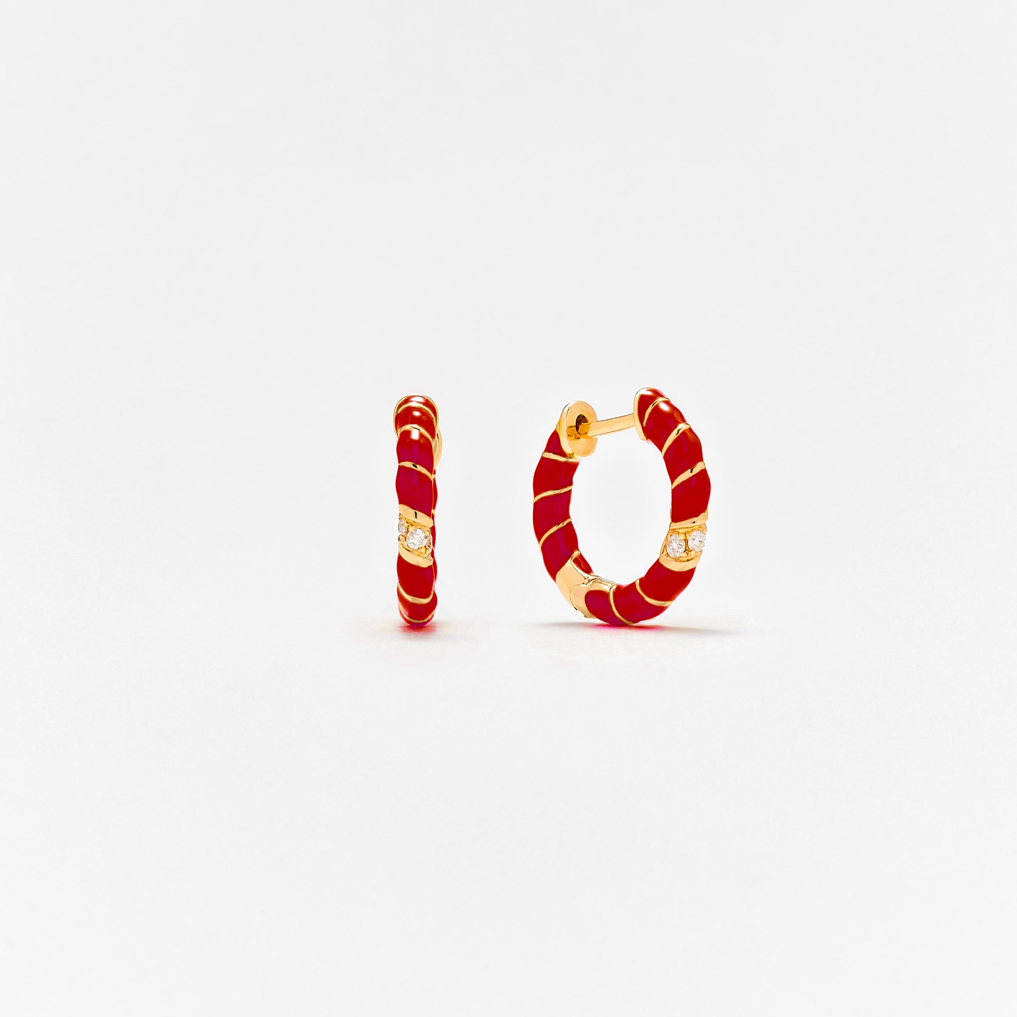 订购10周到|Yvonne Leon-Les Torsades-9K黄金 珐琅 钻石 麻花 耳环(经典红色)[法国设计师]