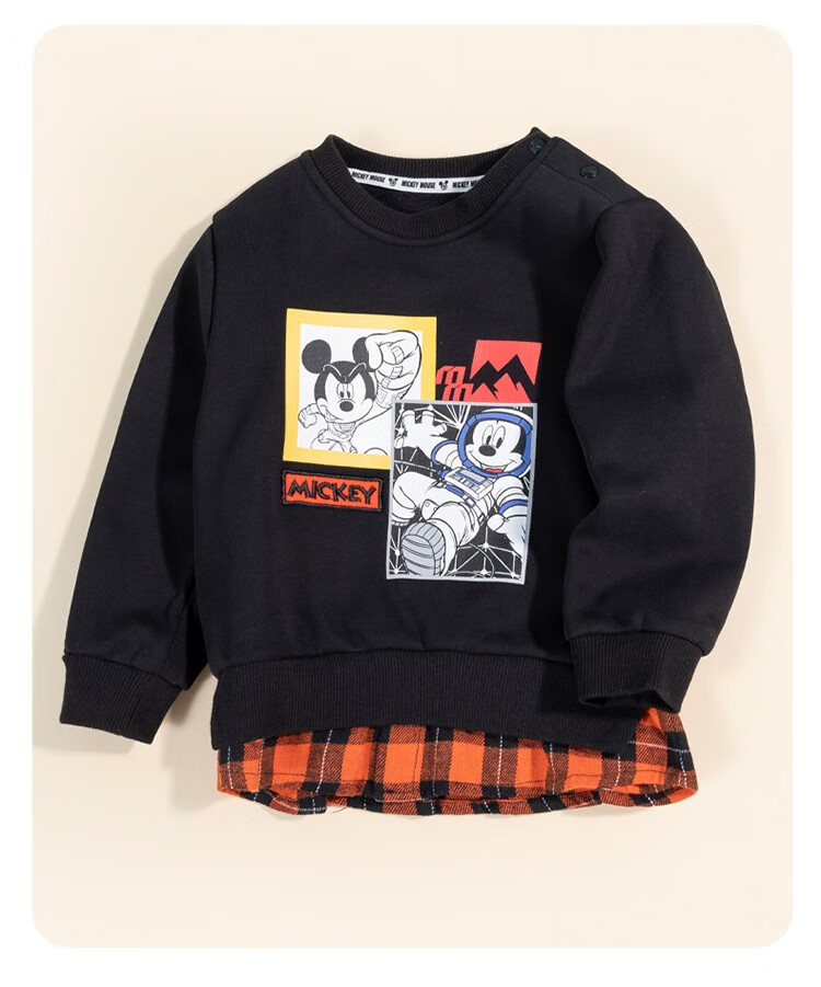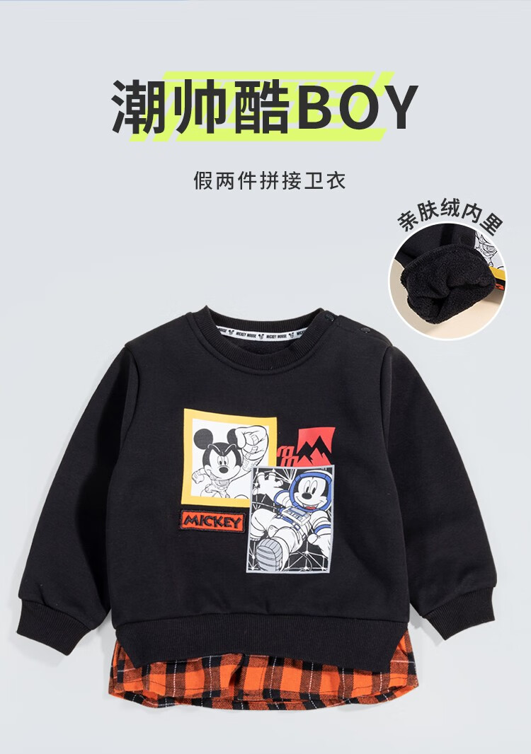 【商场同款】迪士尼童装秋冬新款儿童加绒保暖卫衣假两件拼接上衣