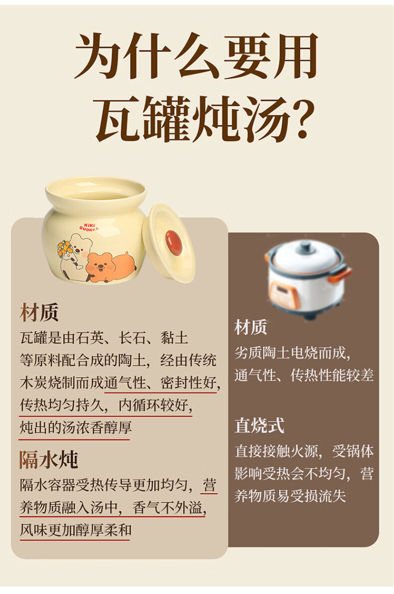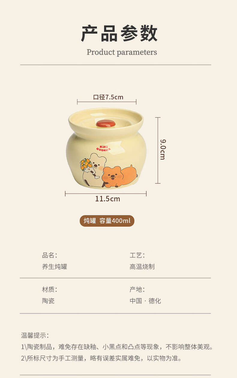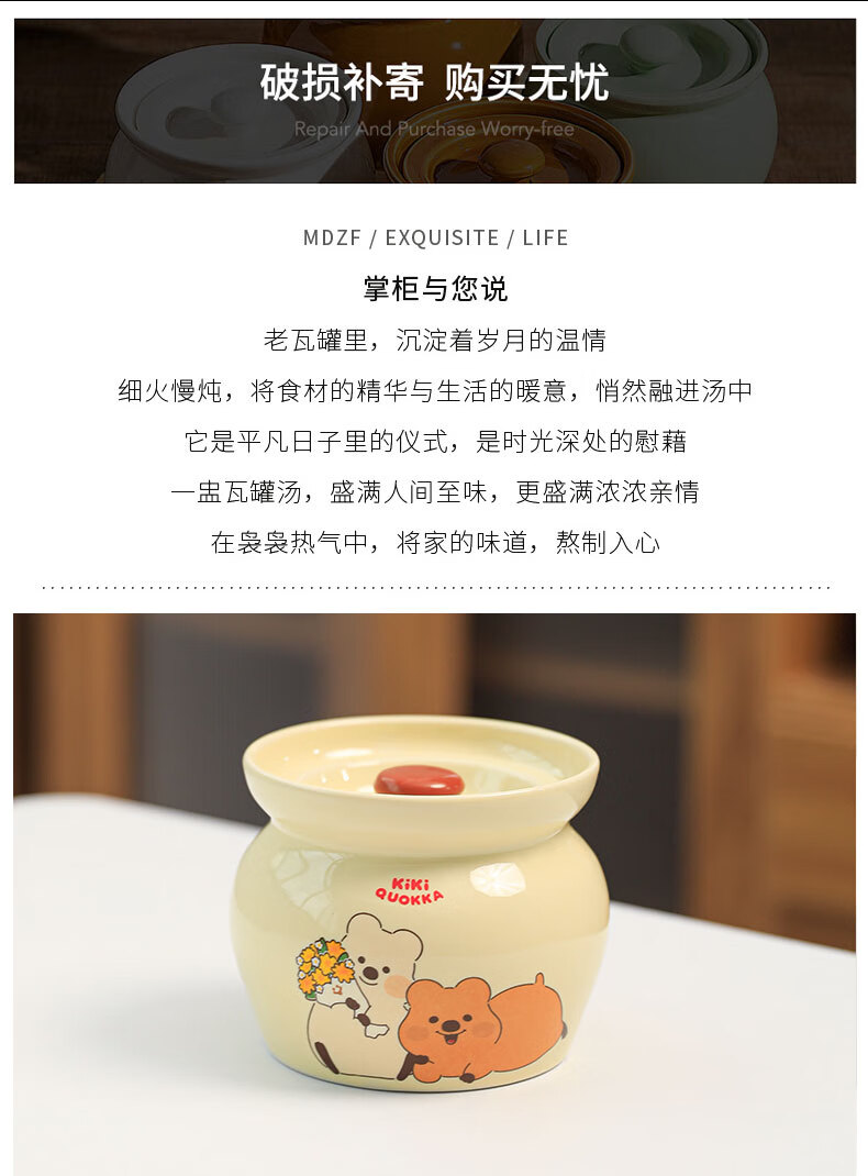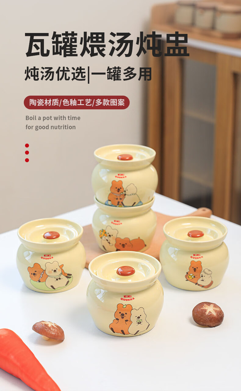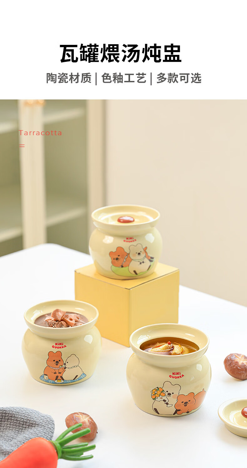 【kiki养生炖罐】陶瓷炖盅家用隔水炖汤盅带盖燕窝盅蒸蛋盅煨汤小号瓦罐