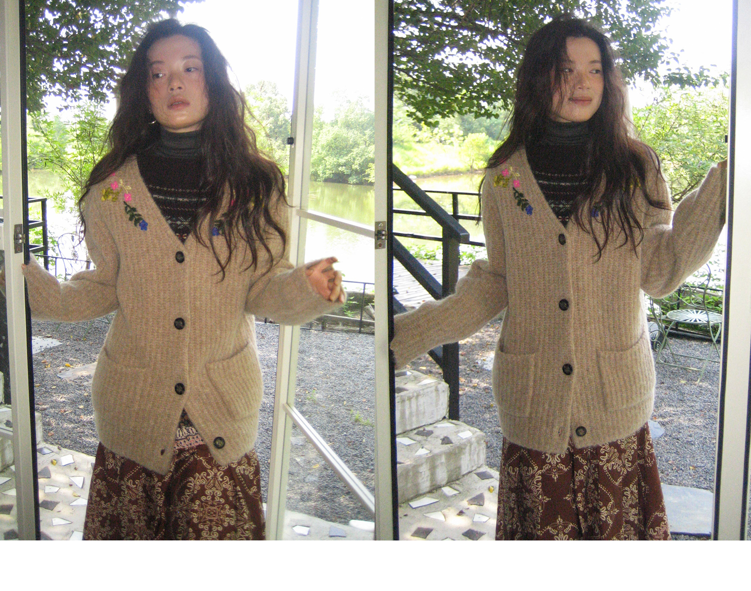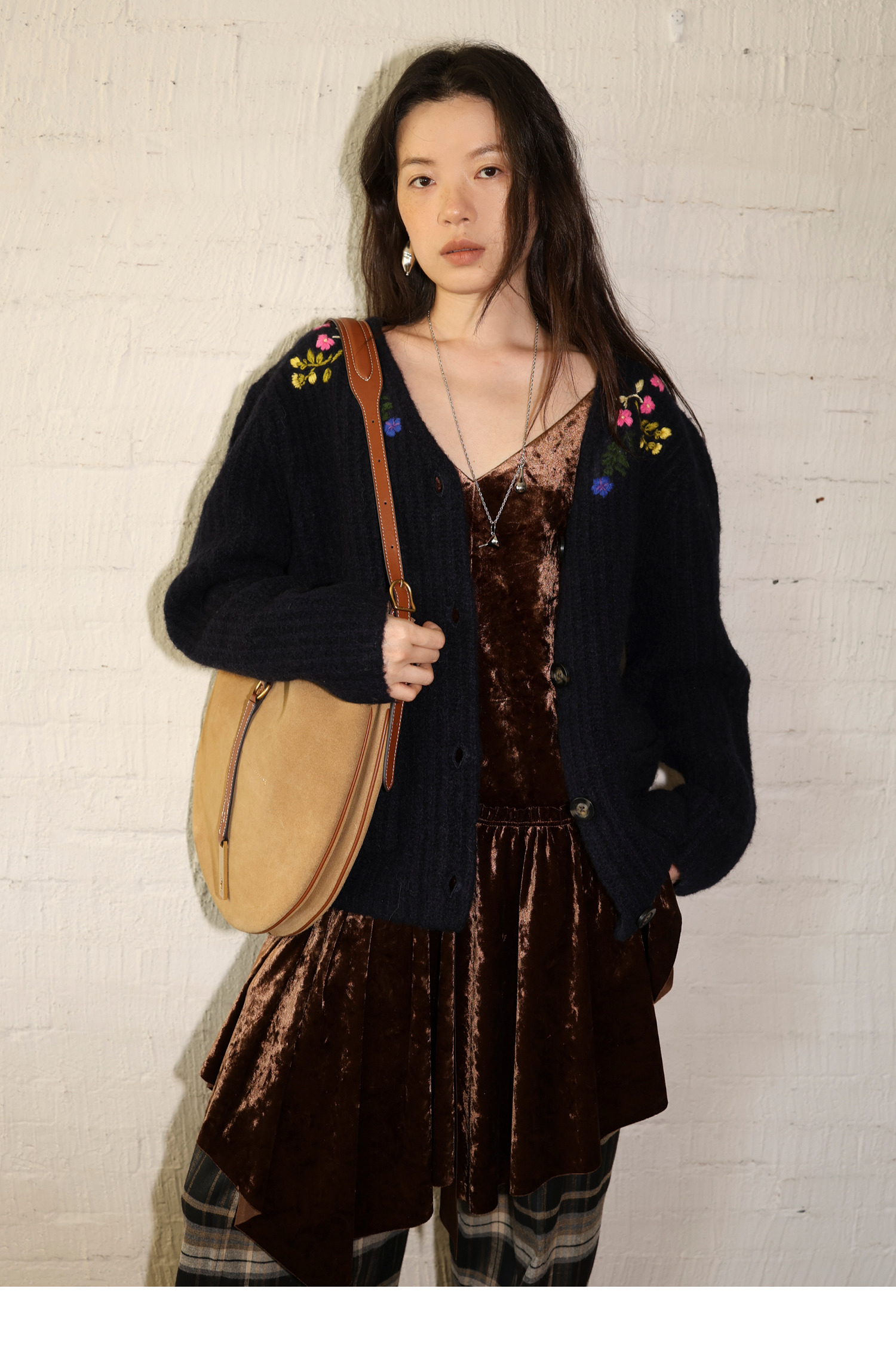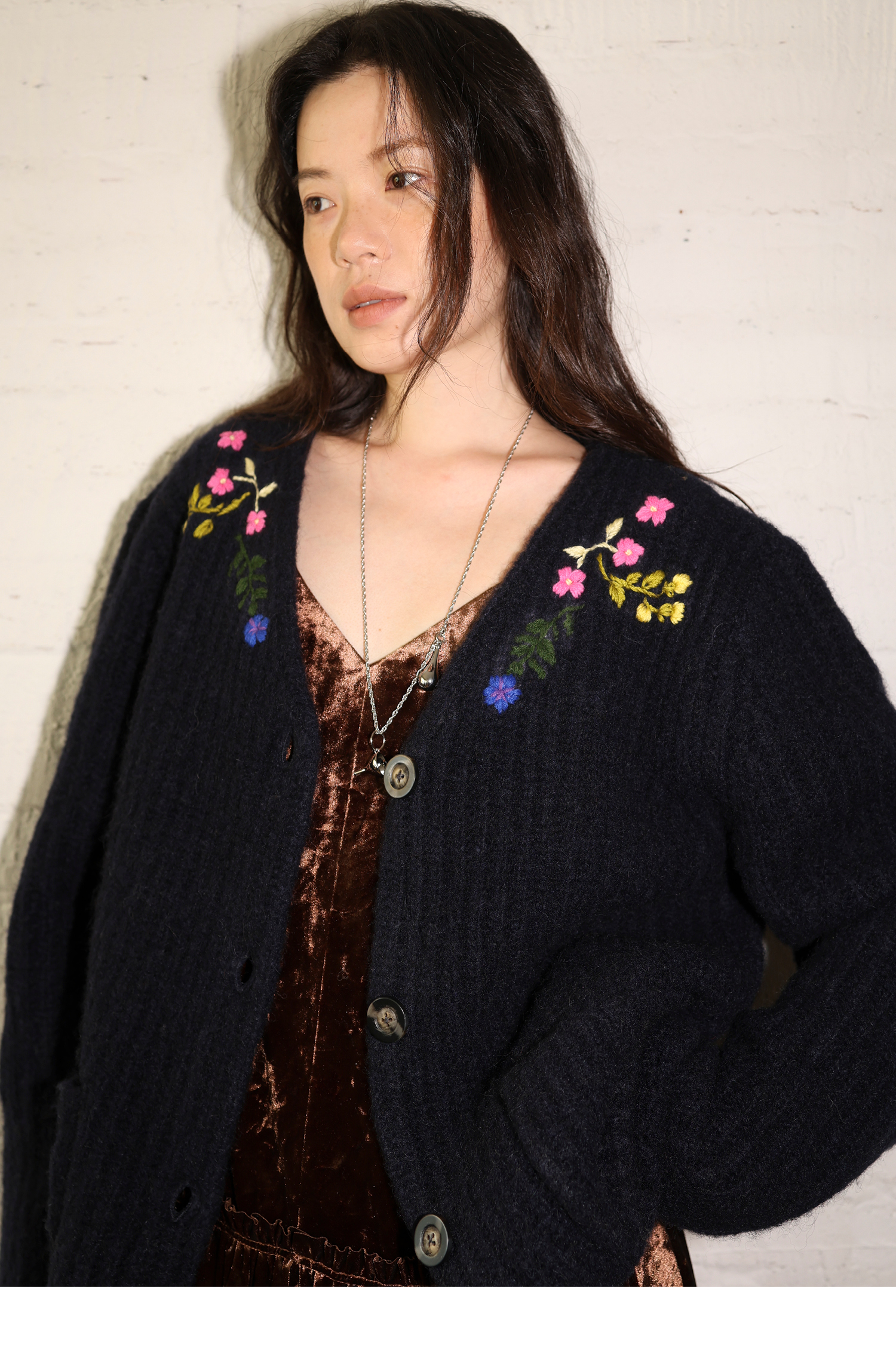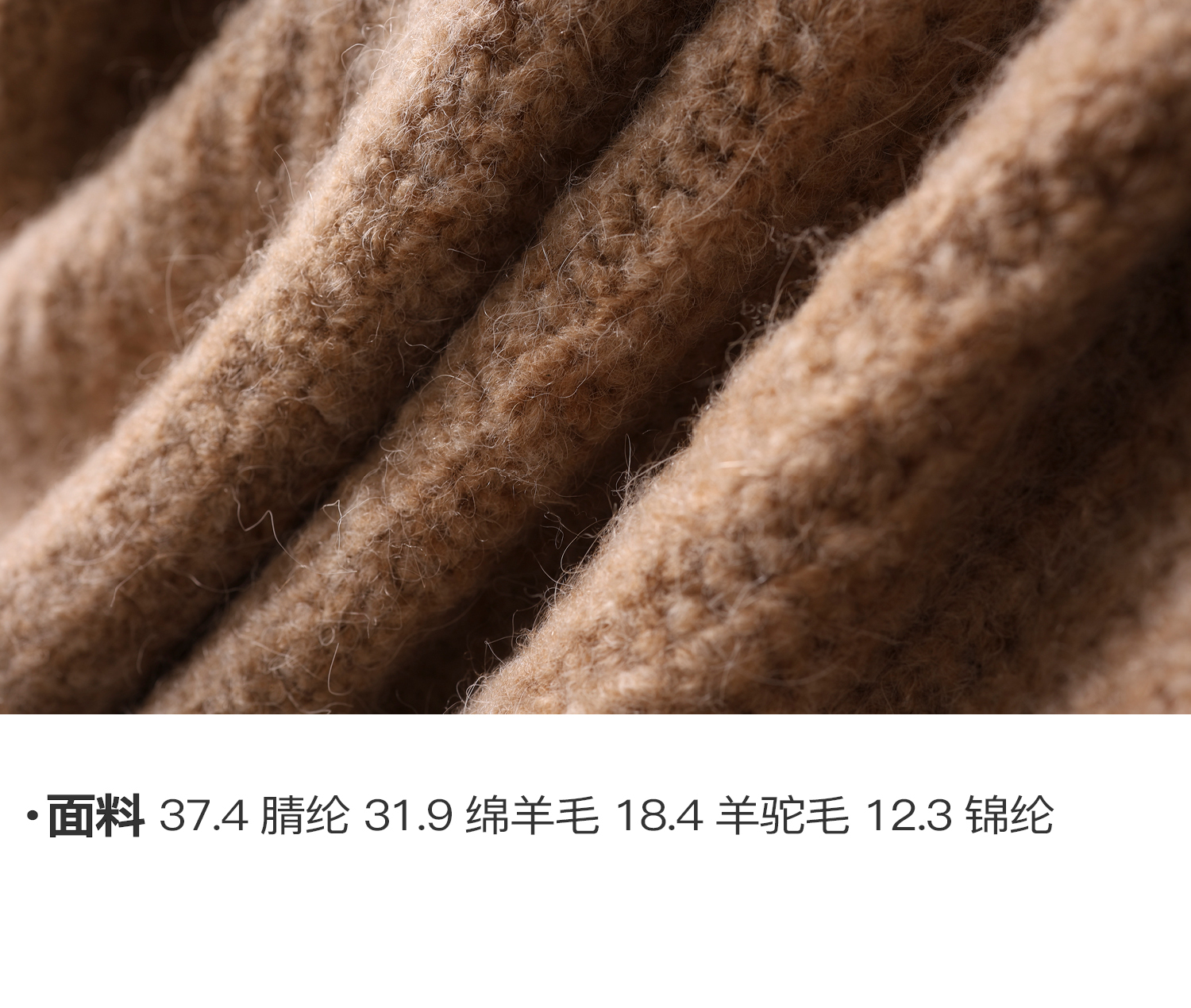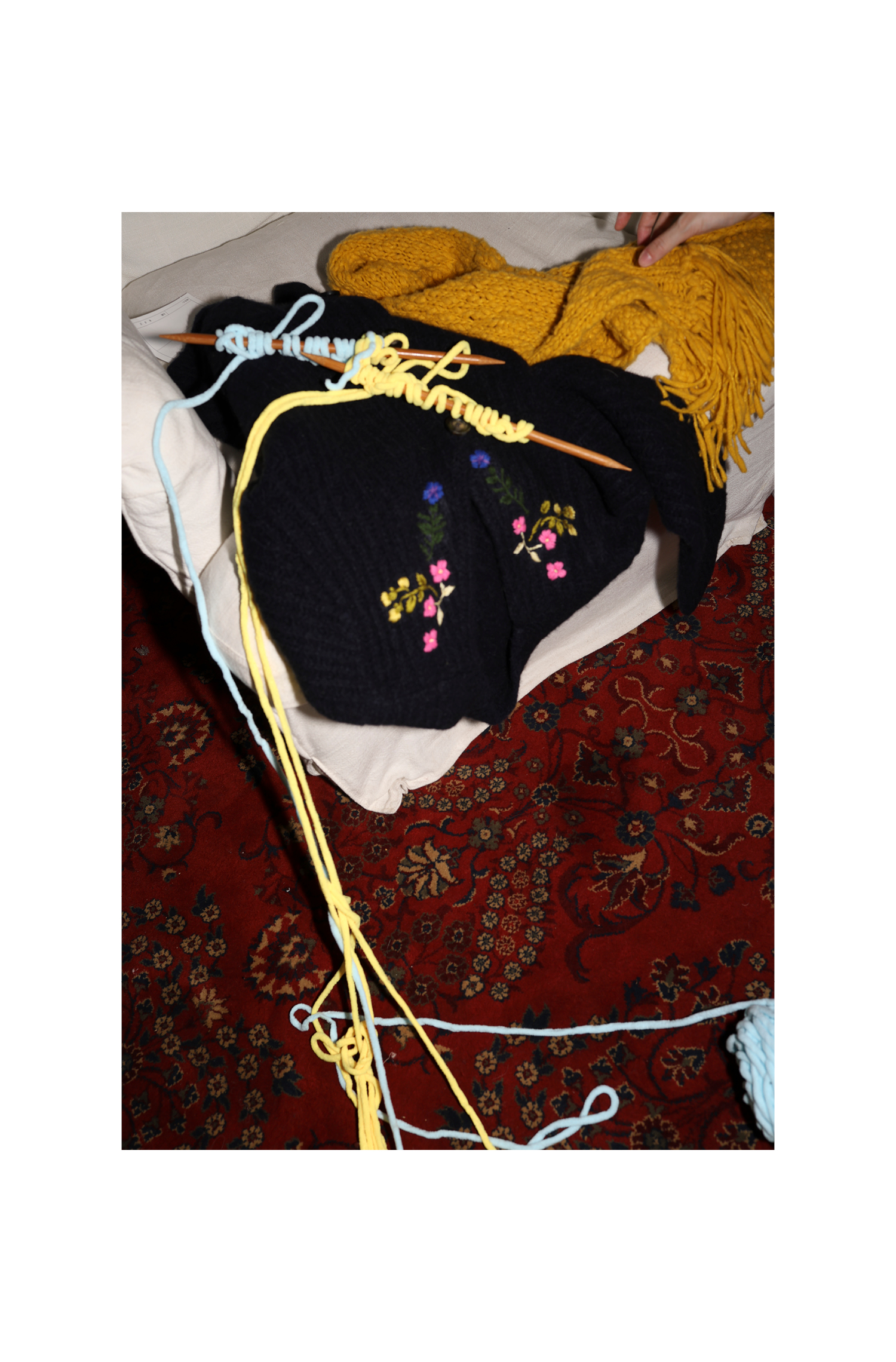 素舶 羊驼毛柔软亲肤撞色手工刺绣花朵粗针宽松针织开衫毛衣
