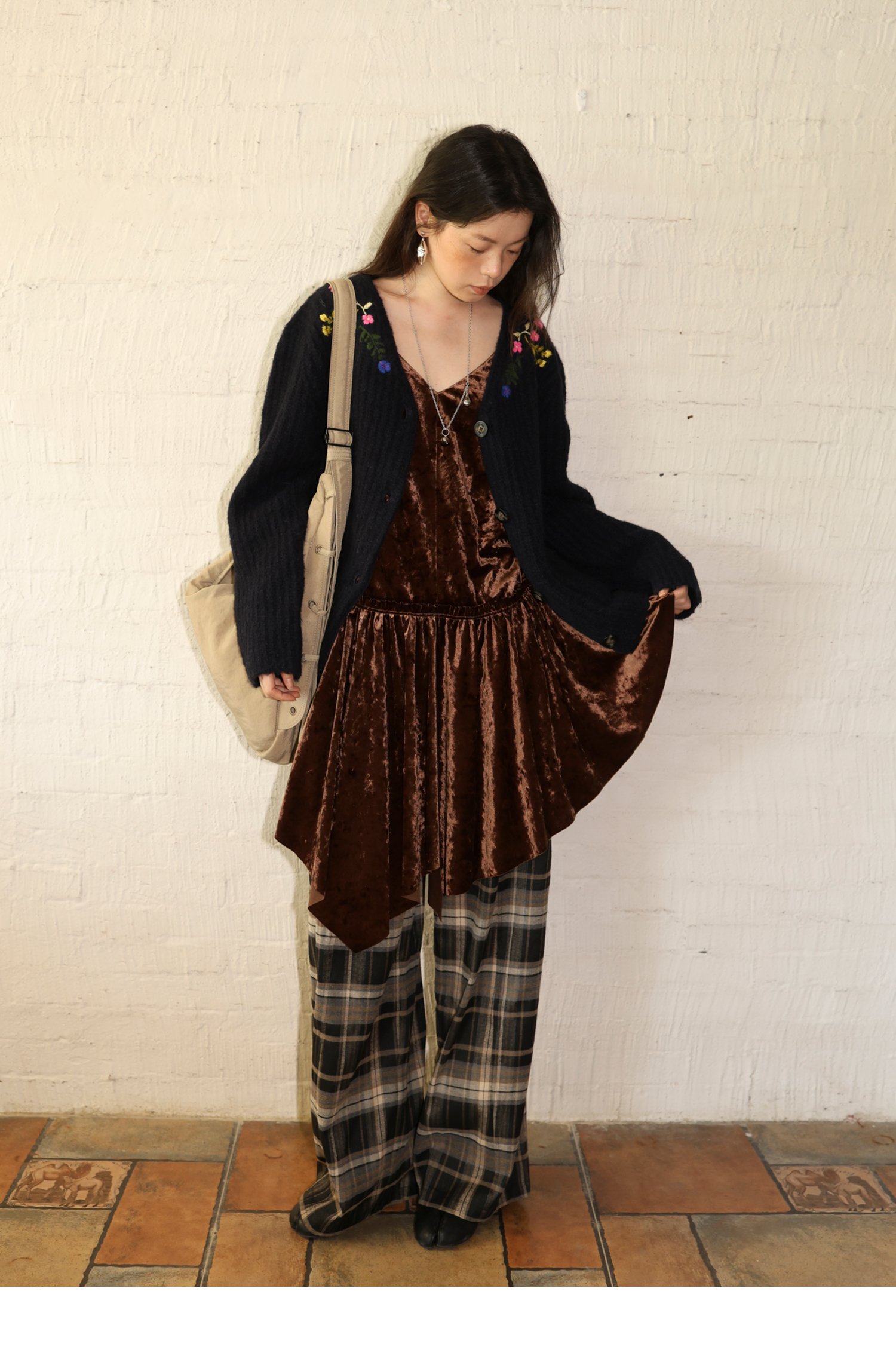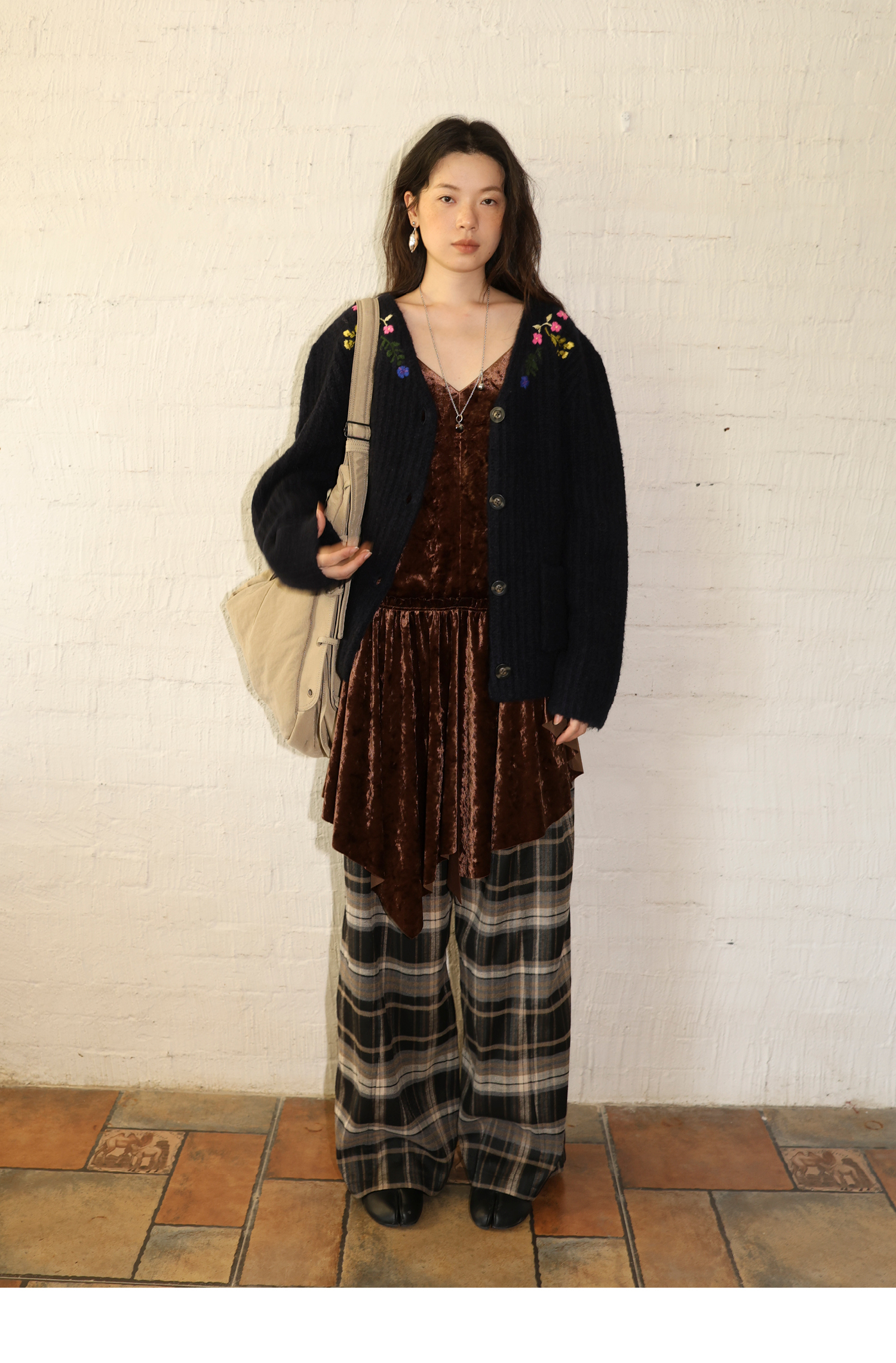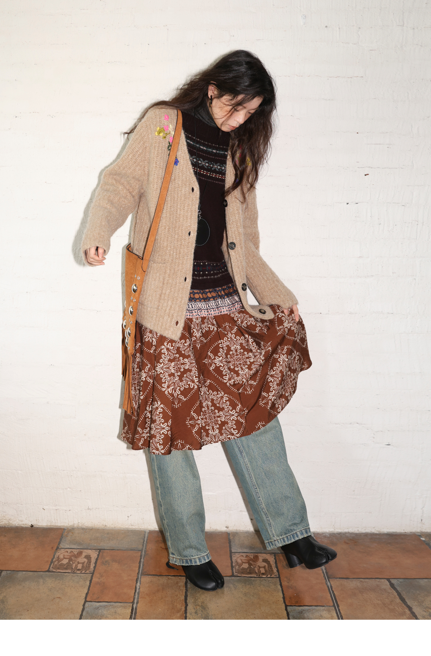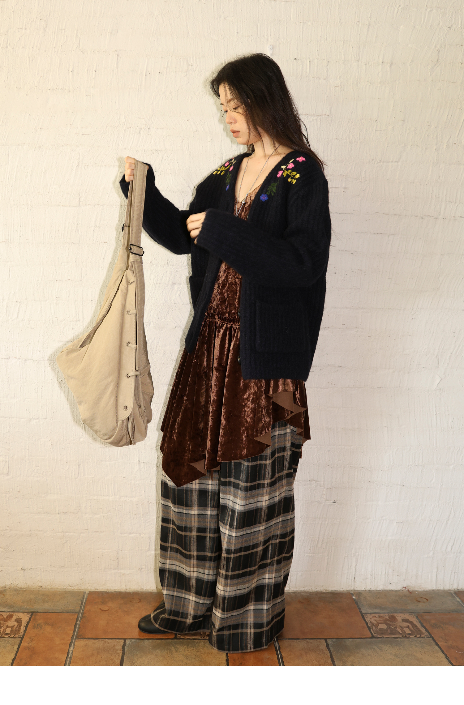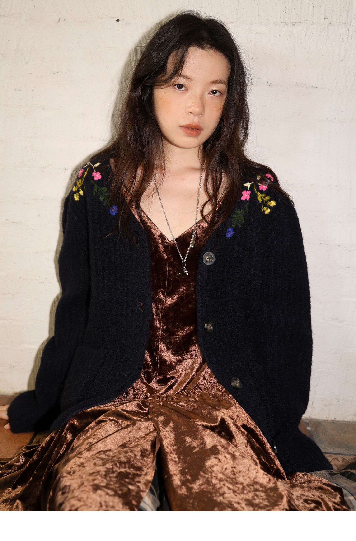 素舶 羊驼毛柔软亲肤撞色手工刺绣花朵粗针宽松针织开衫毛衣
