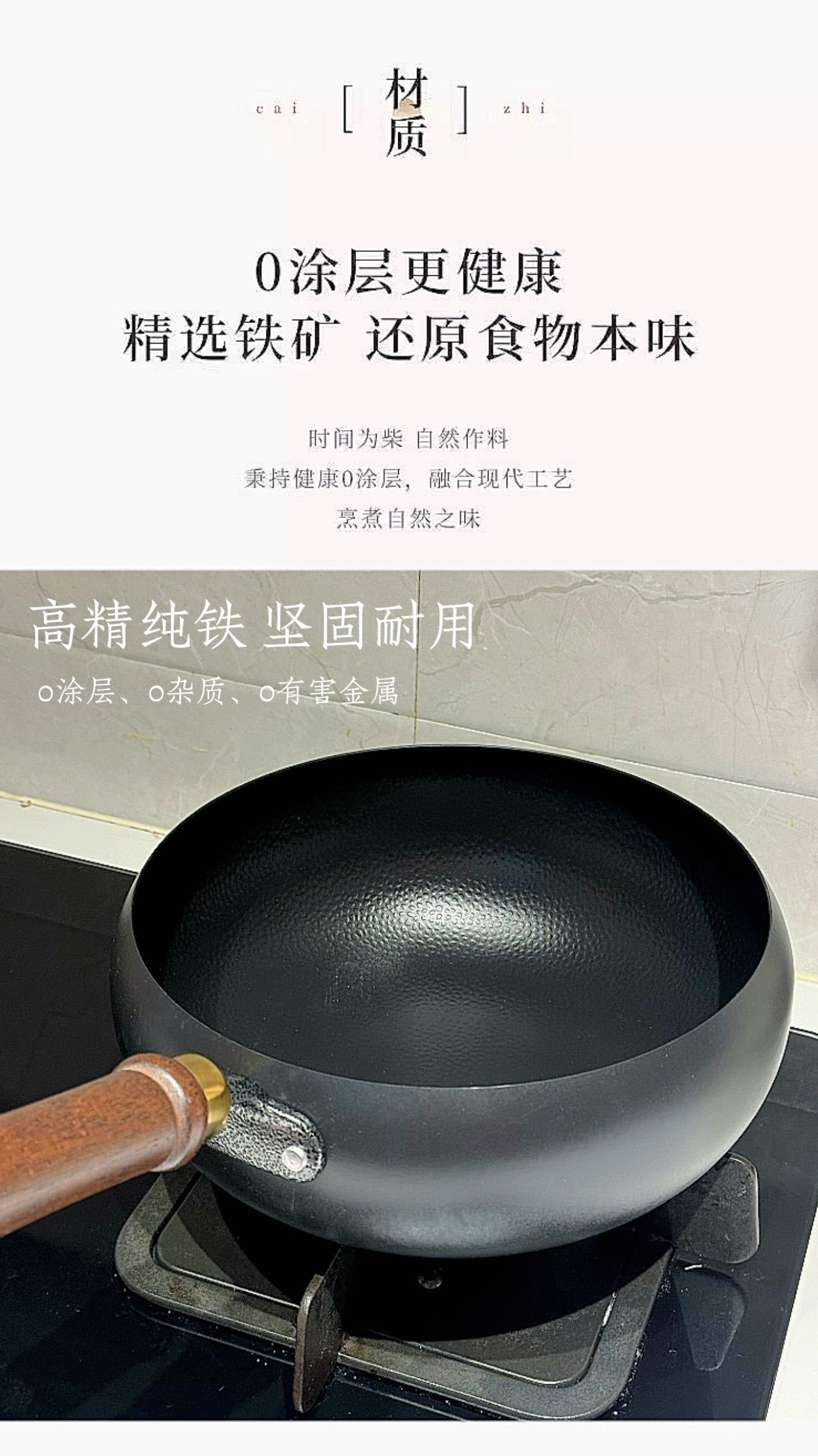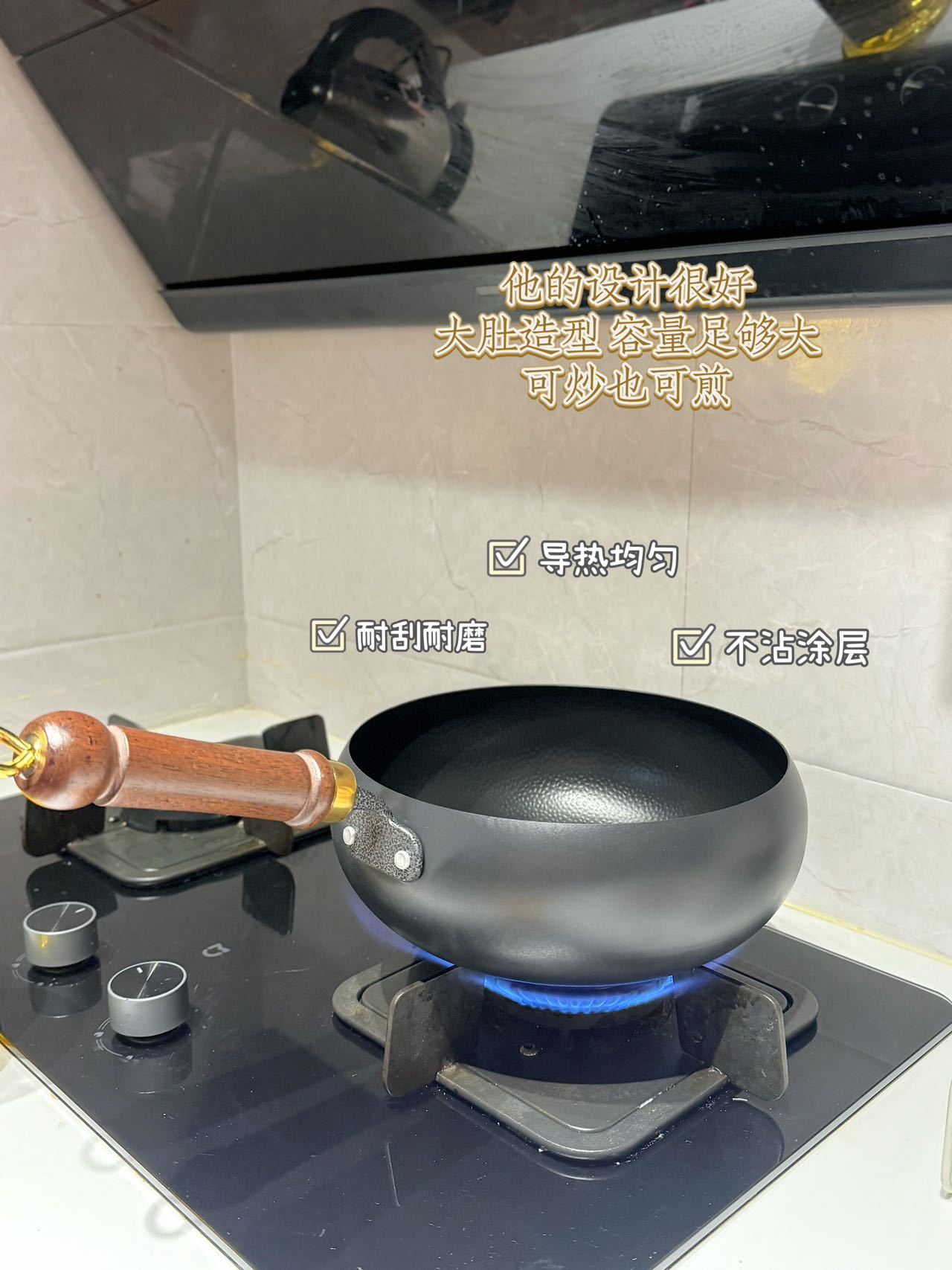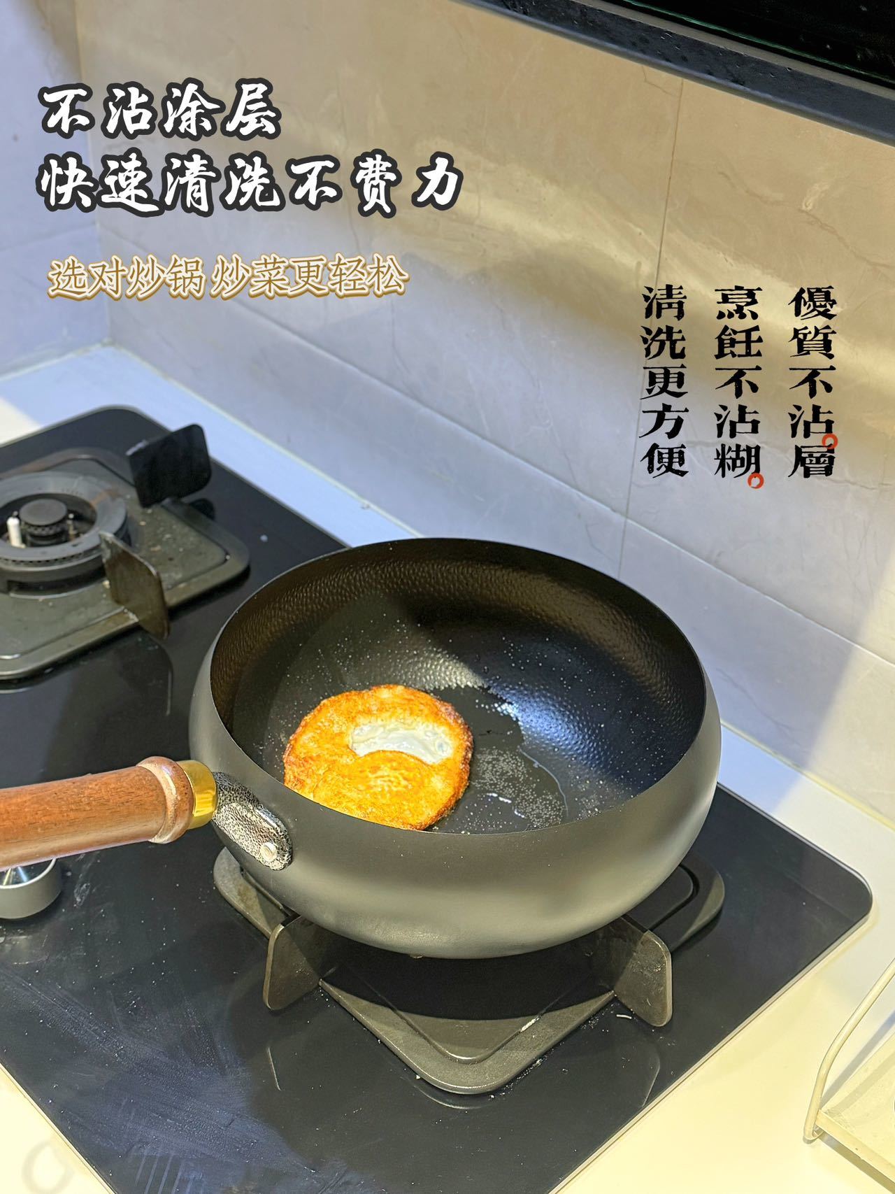 铁锅由高纯度铁经过12小时深度氮化,不易生锈