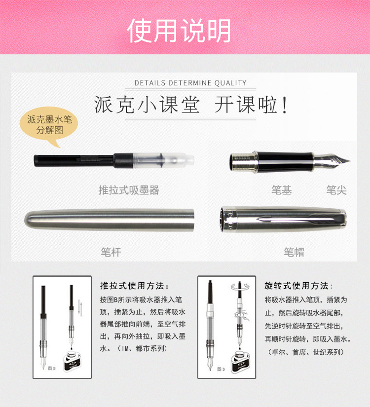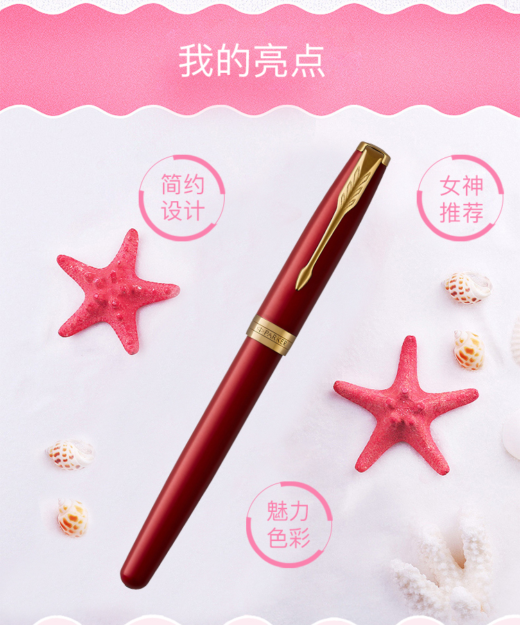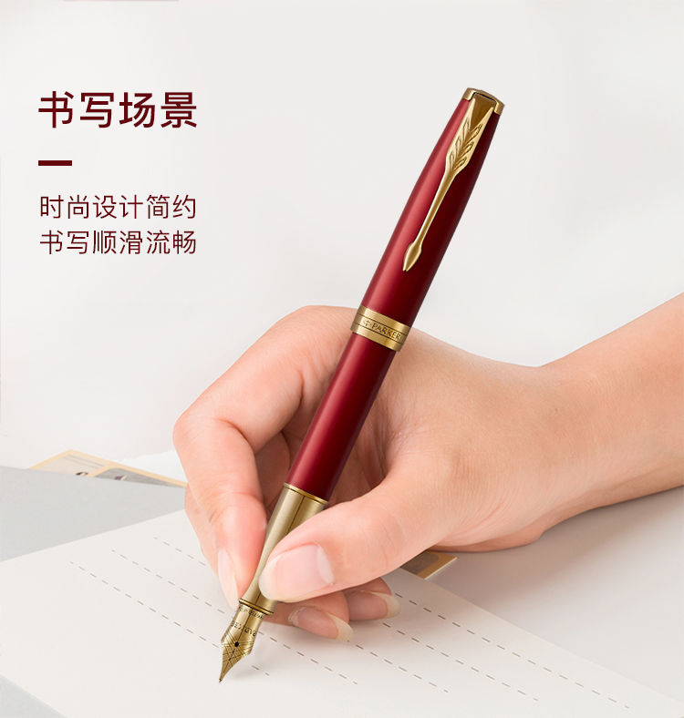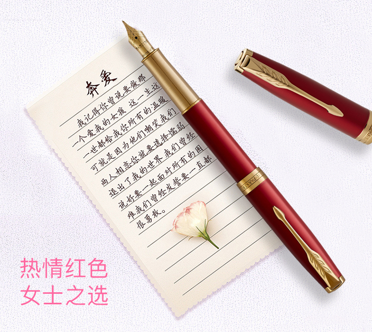 【4F】派克(PARKER)高端钢笔 签字笔 商务办公送礼 男女生日礼物 学生练字 卓尔系列宝石红金夹墨水笔