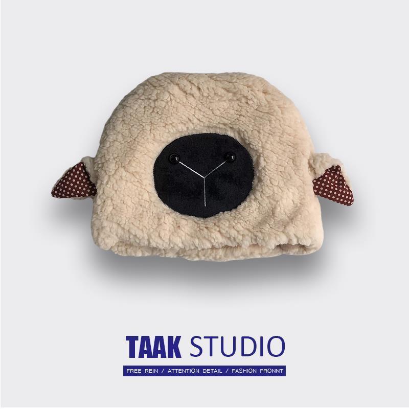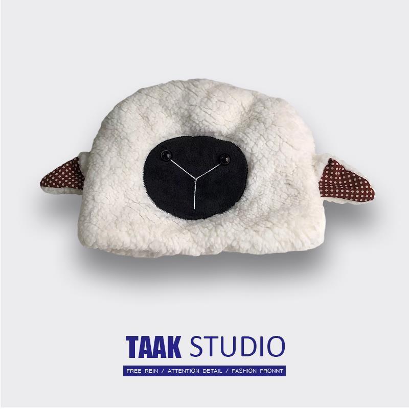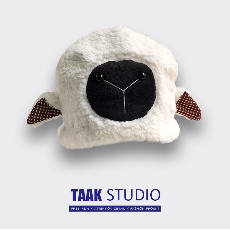 网红甜美小羊包帽 可爱套头帽子女秋冬日系羊羔毛保暖护耳帽学生