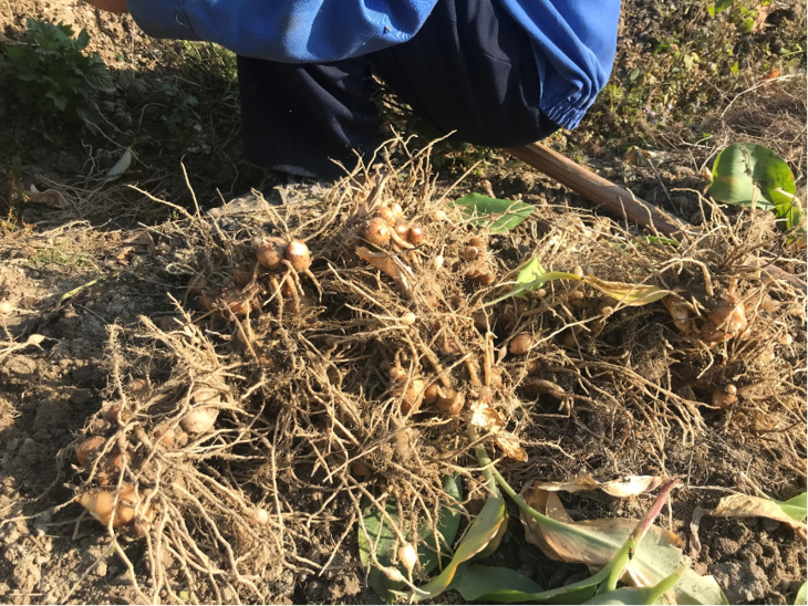 土地情况:沙姜集中在“火烧罗”和“下墩”两个地方种植。其中,下墩的土地已丢荒多年,且较阴凉,土壤肥力较好,很适合沙姜生长。火烧罗相对光照足,沙质土壤,土壤比较瘦。往年主要种植花生、番薯等,主要用于自给自足。