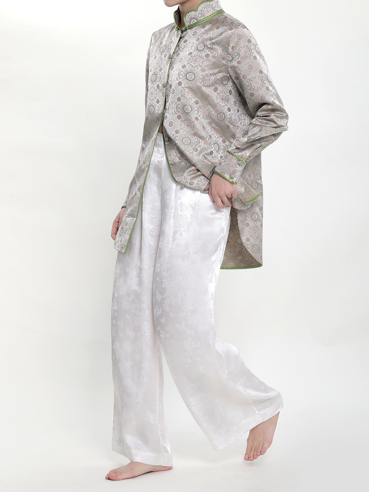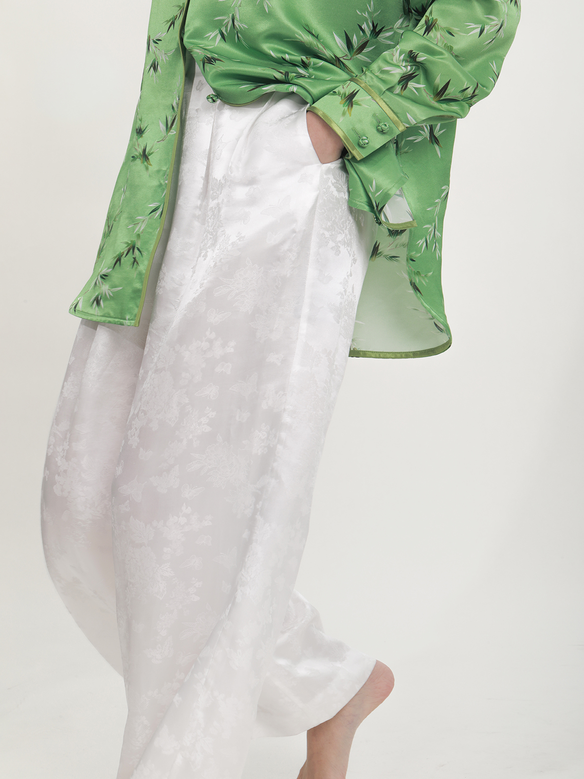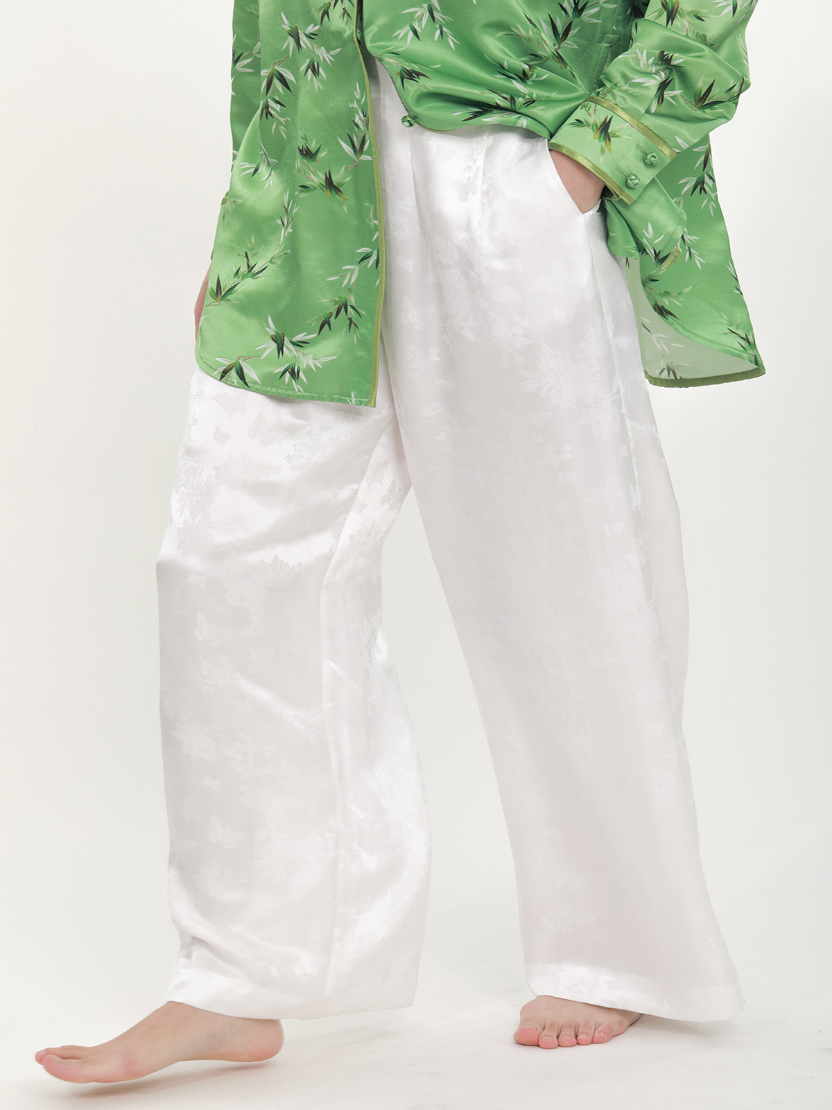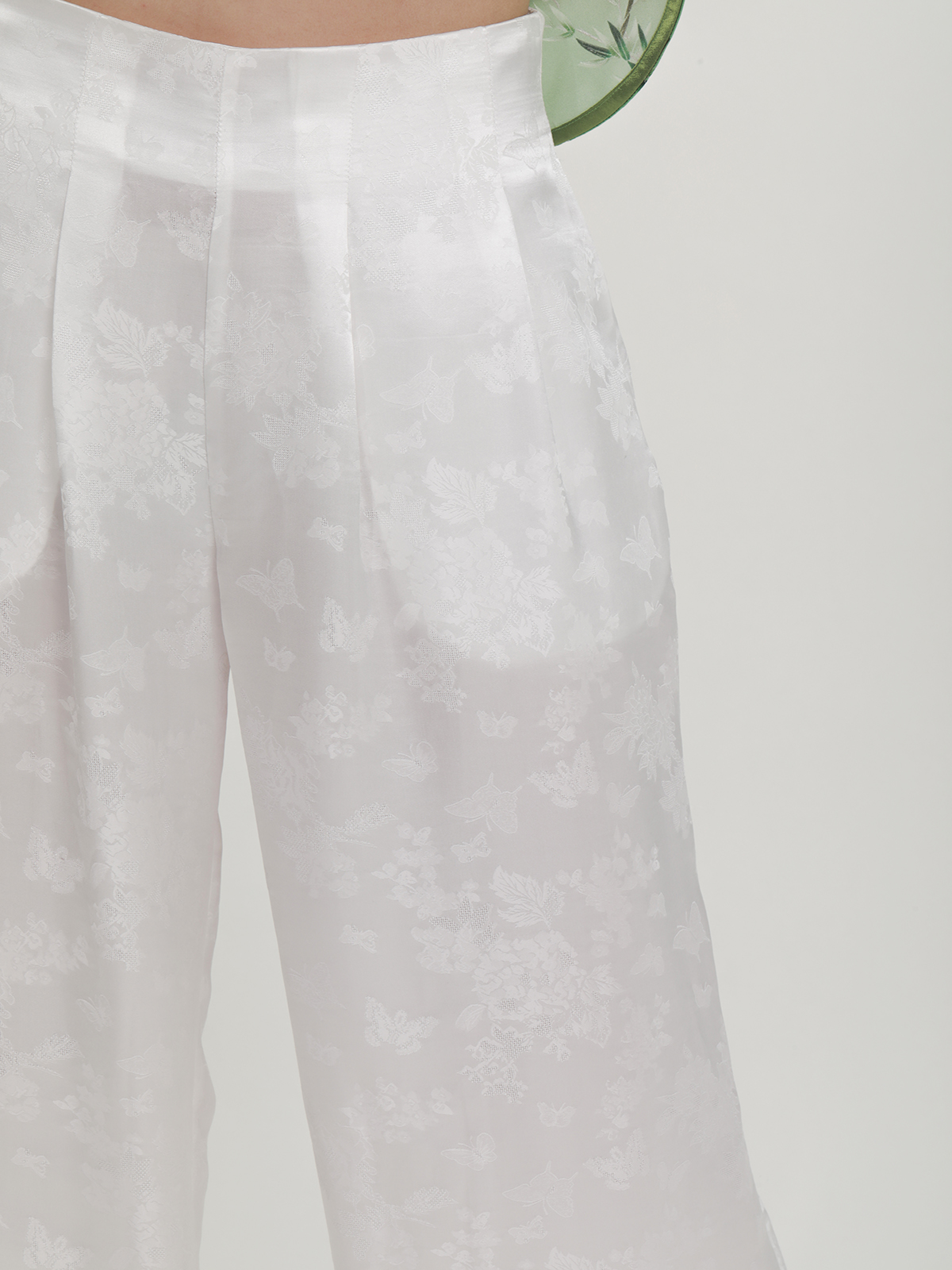 盛唐牡丹 |真丝提花阔腿裤珍珠白平腰版 (蝶恋花纹样)