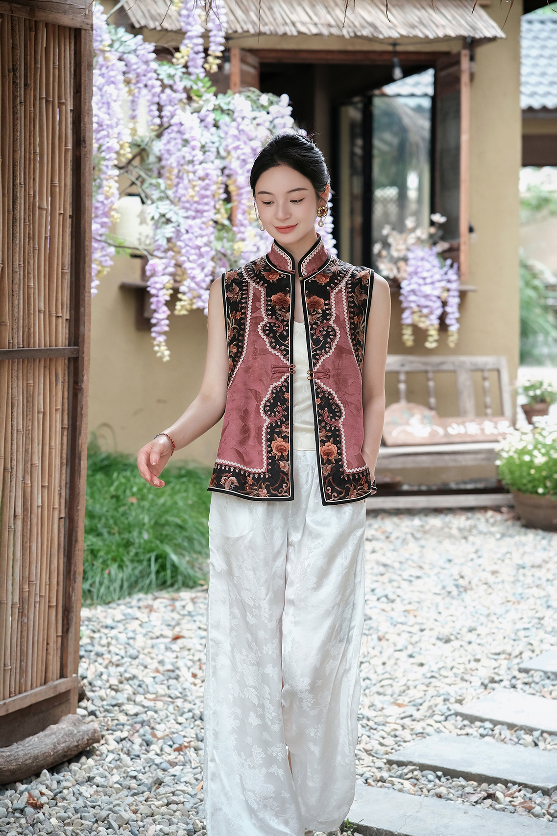 盛唐牡丹 |真丝绡如意湖亭对襟马甲