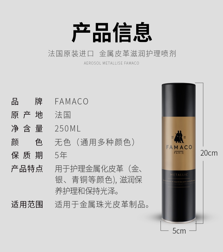 法国进口Famaco金属皮革珠光皮滋润护理喷剂0007