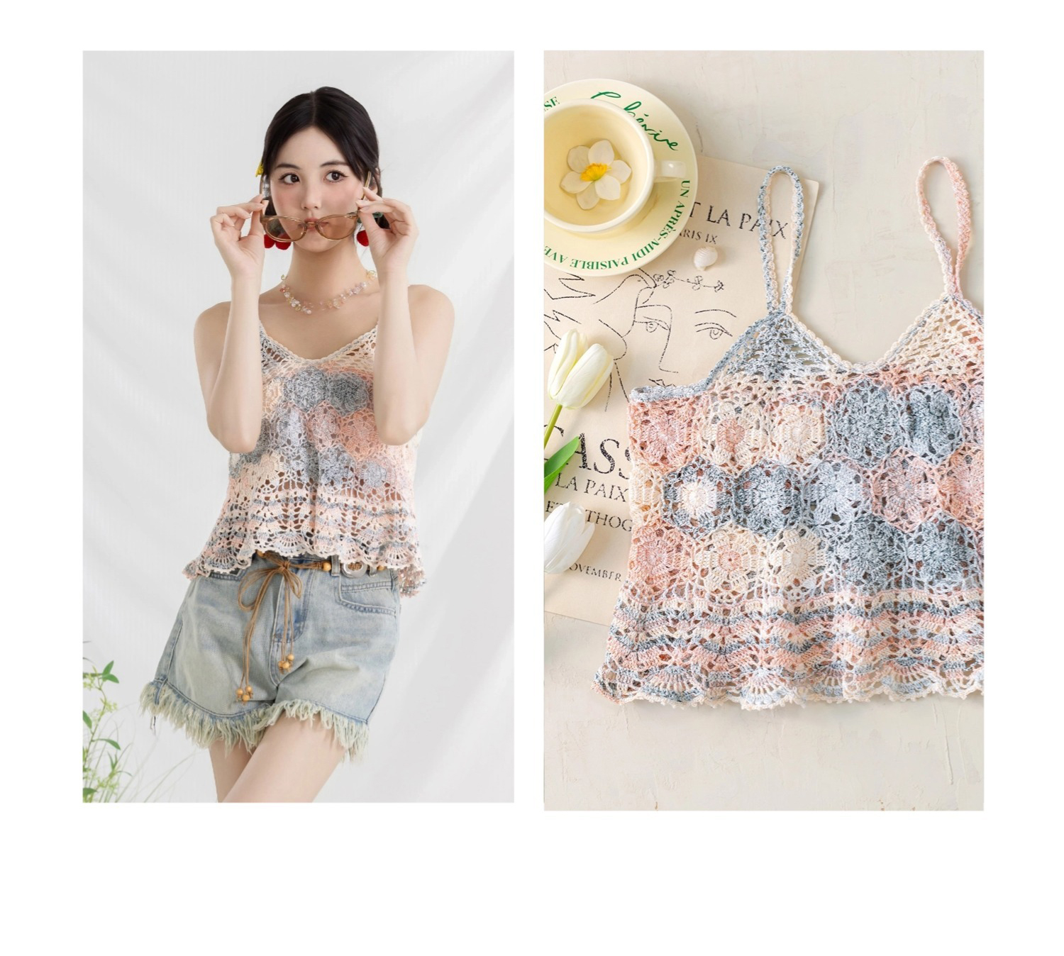 苏苏姐家花叶吊带-段染版手工DIY编织钩针毛线团吊带自制材料包