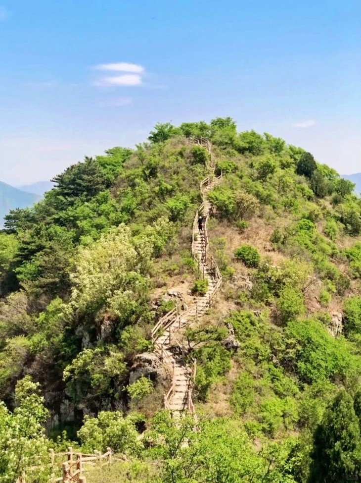 该条线路比较简单,老少皆宜,特别适合新人体验。前一小段是干净平坦的石板路,然后经过不高的登山石阶,半小时便能到达山脊,行走在山脊线上,脚下就是金海湖,视野开阔,景色壮观绝美。